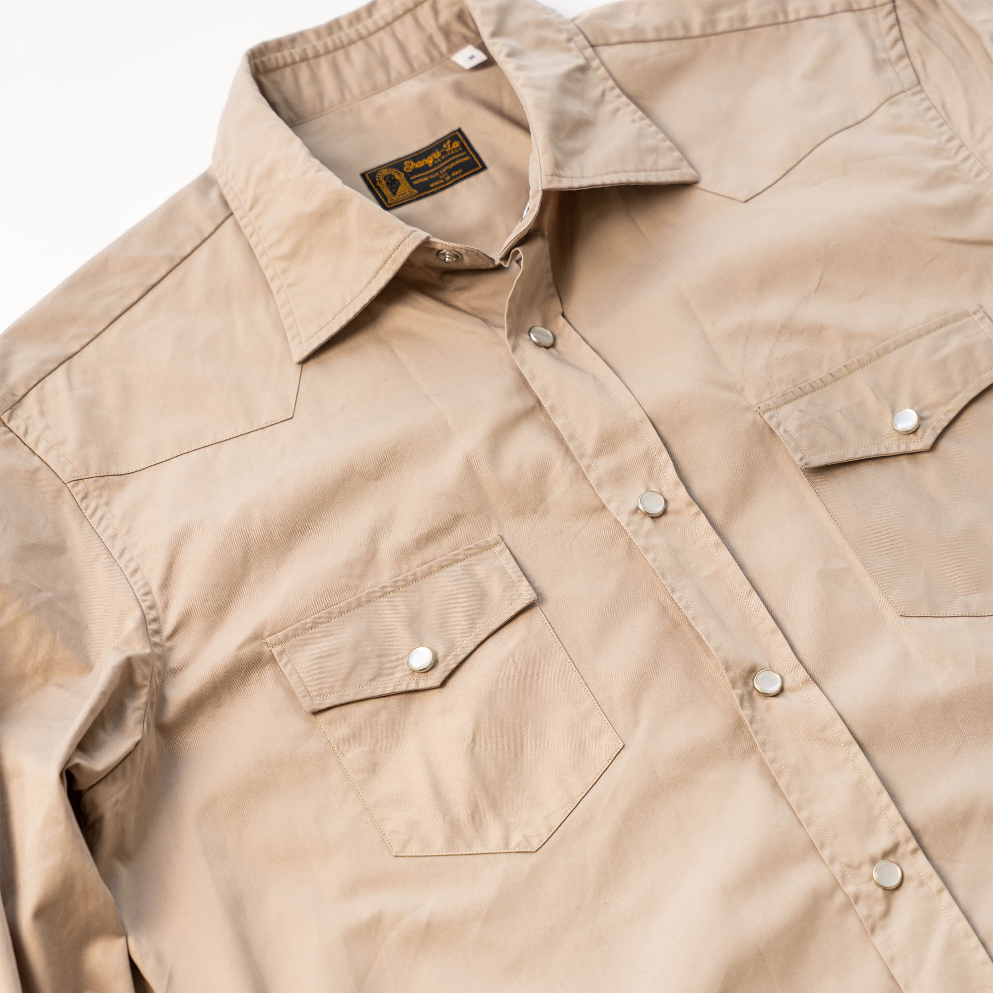 “Gonzo” Beige Cotton Gabardine Western Shirt