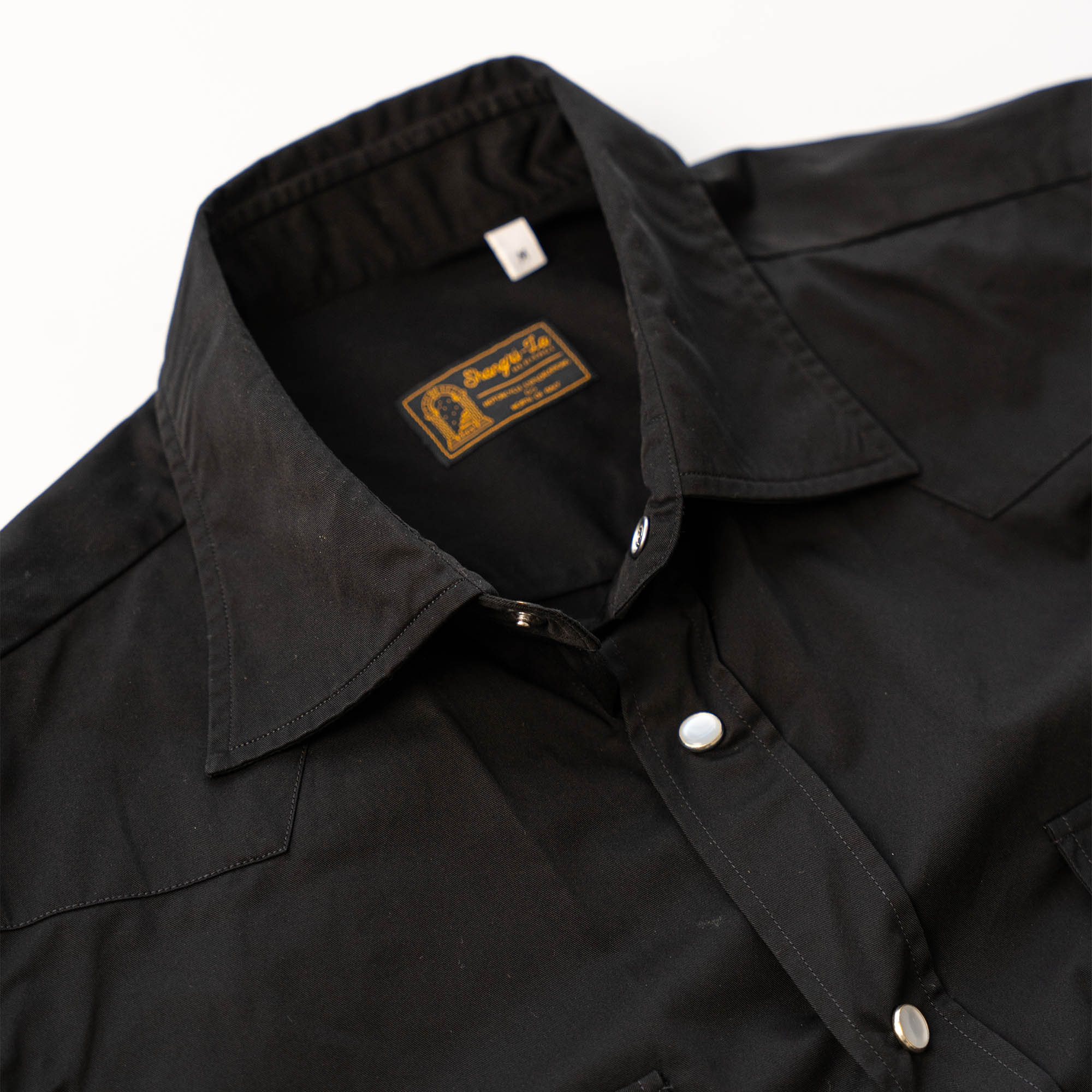 “Gonzo” Black Cotton Gabardine Western Shirt
