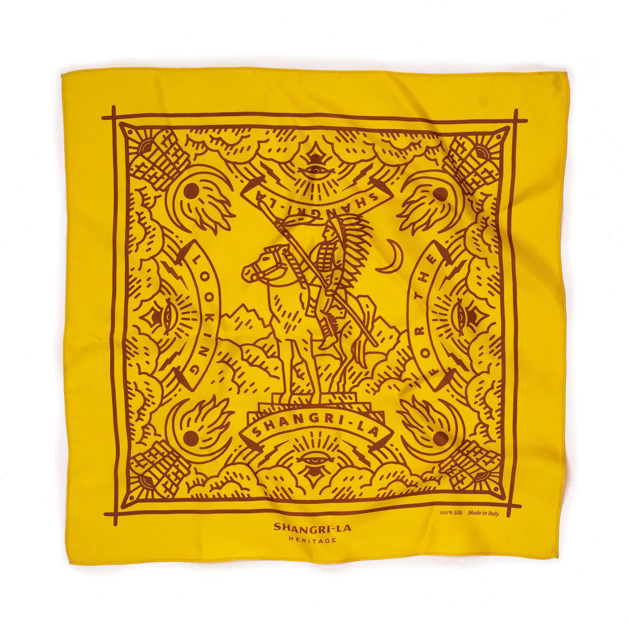 Crafted in Italy in the Lake Como district, one of the finest Silk districts in the world, the “Looking for the Shangri-La” Silk Foulard has been created to guide the explorers during their trips hunting for unforgettable places and moments, in a nutshell, looking for the Shangri-La.