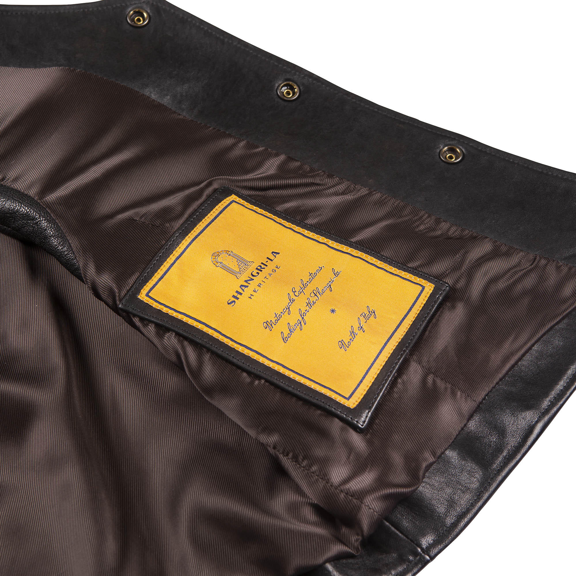 • 2 inside Pockets with antique brass snap buttons with engraved markings