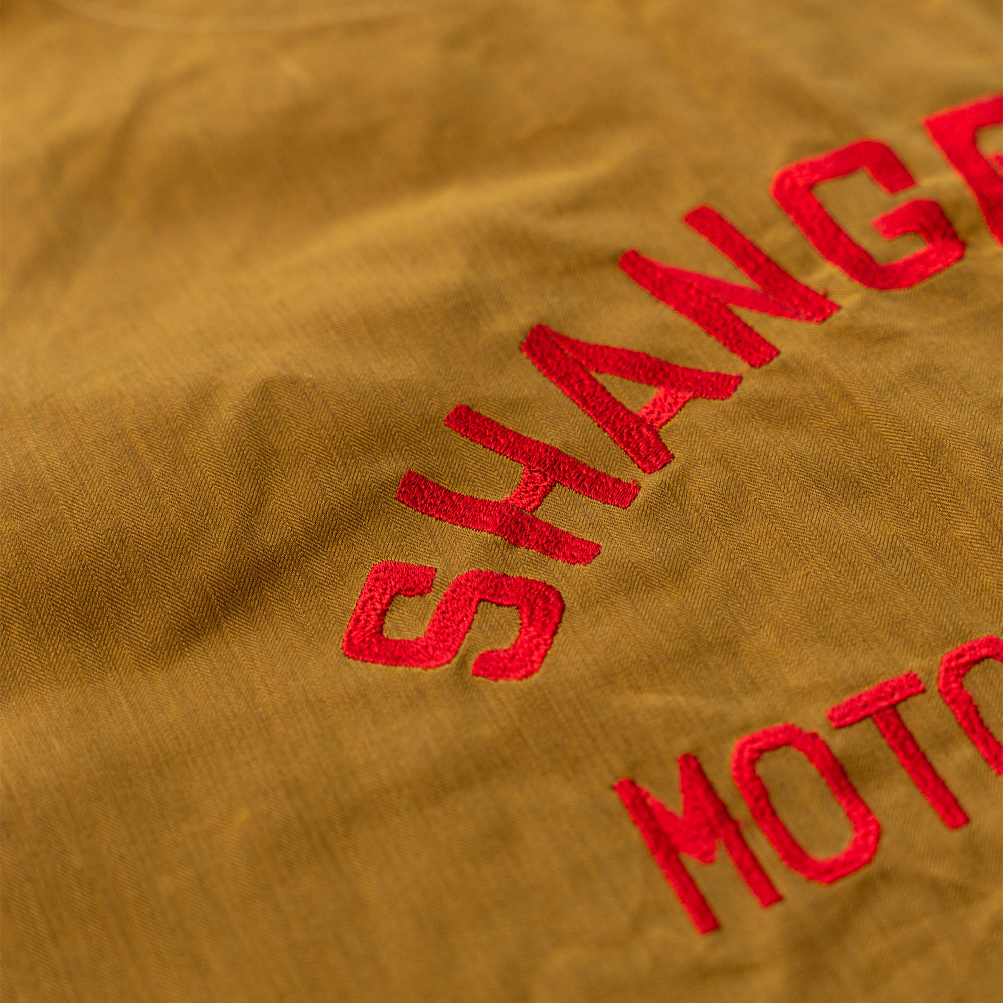 The back embroidery evokes a feeling of belonging to the Shangri-La Motors Club.