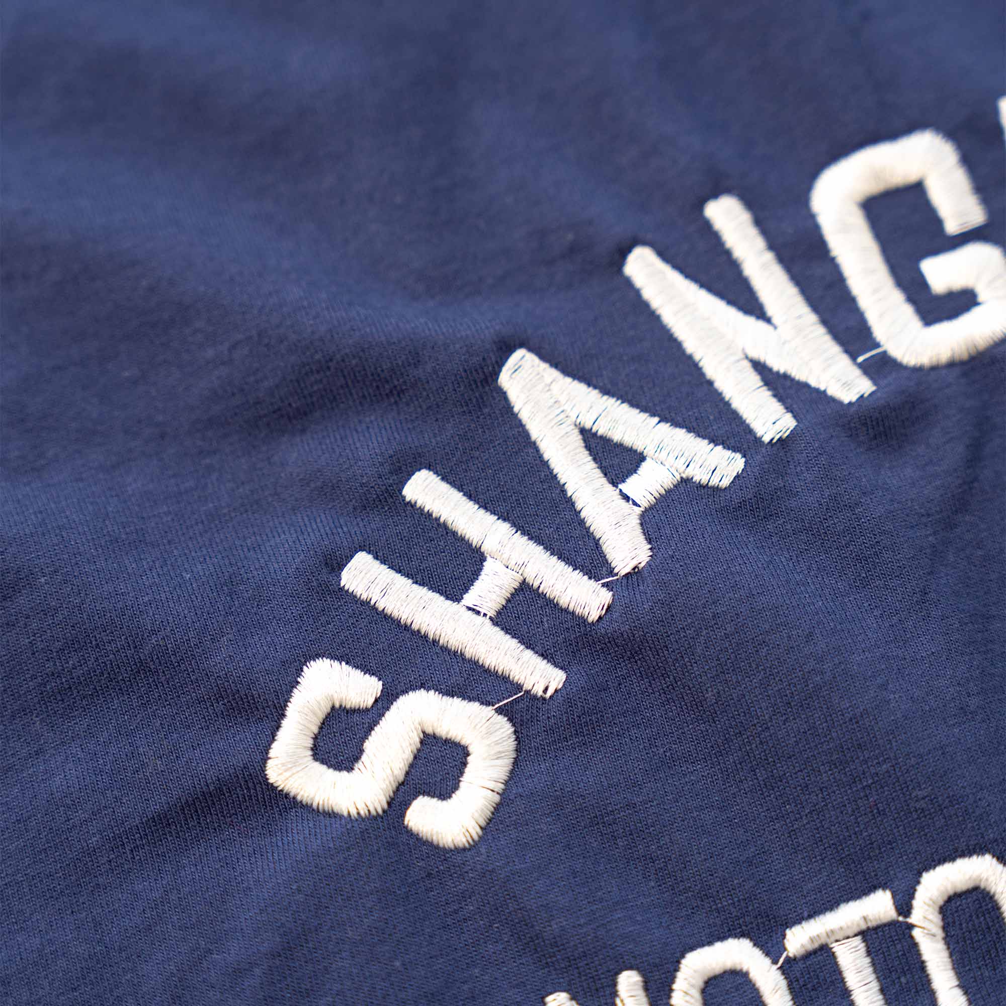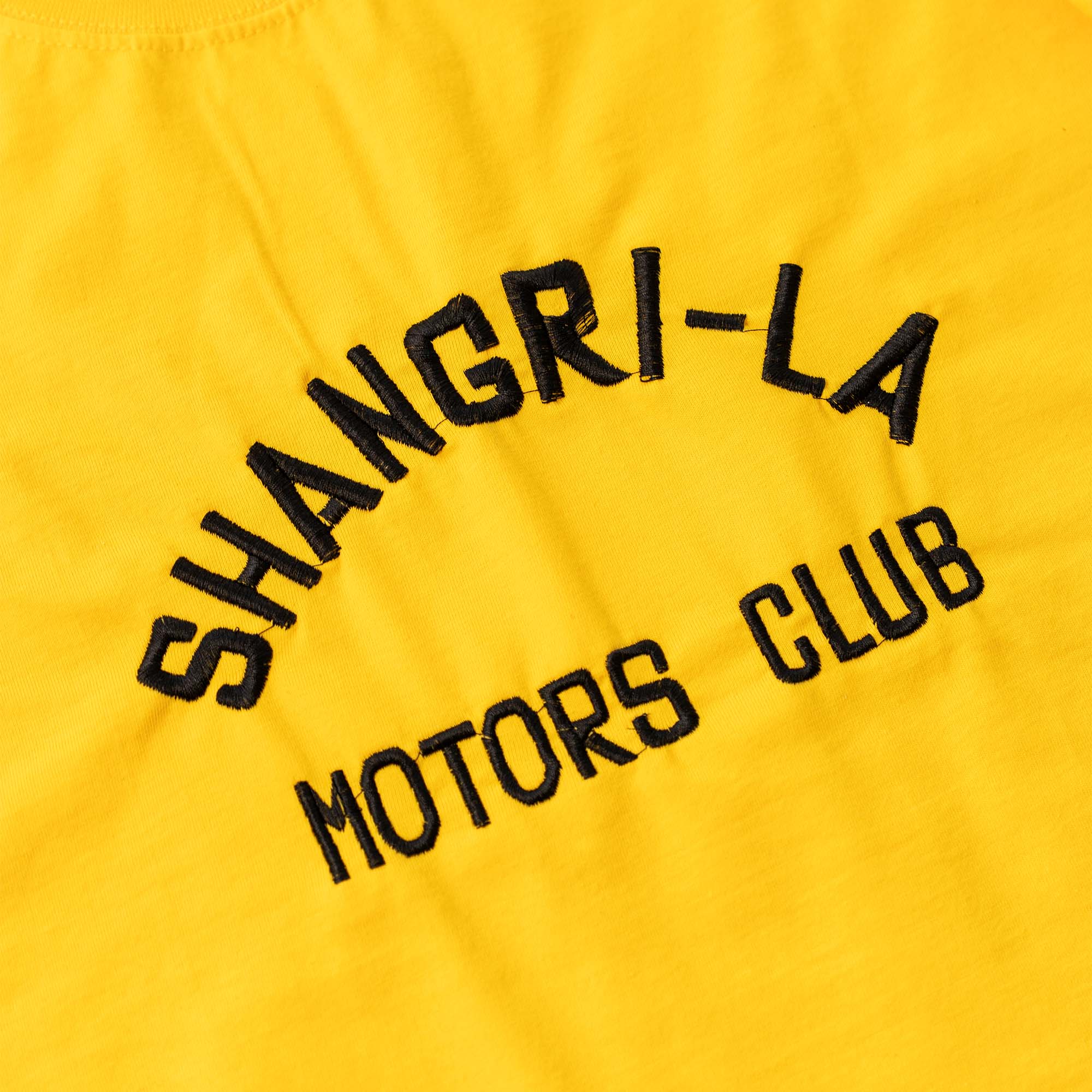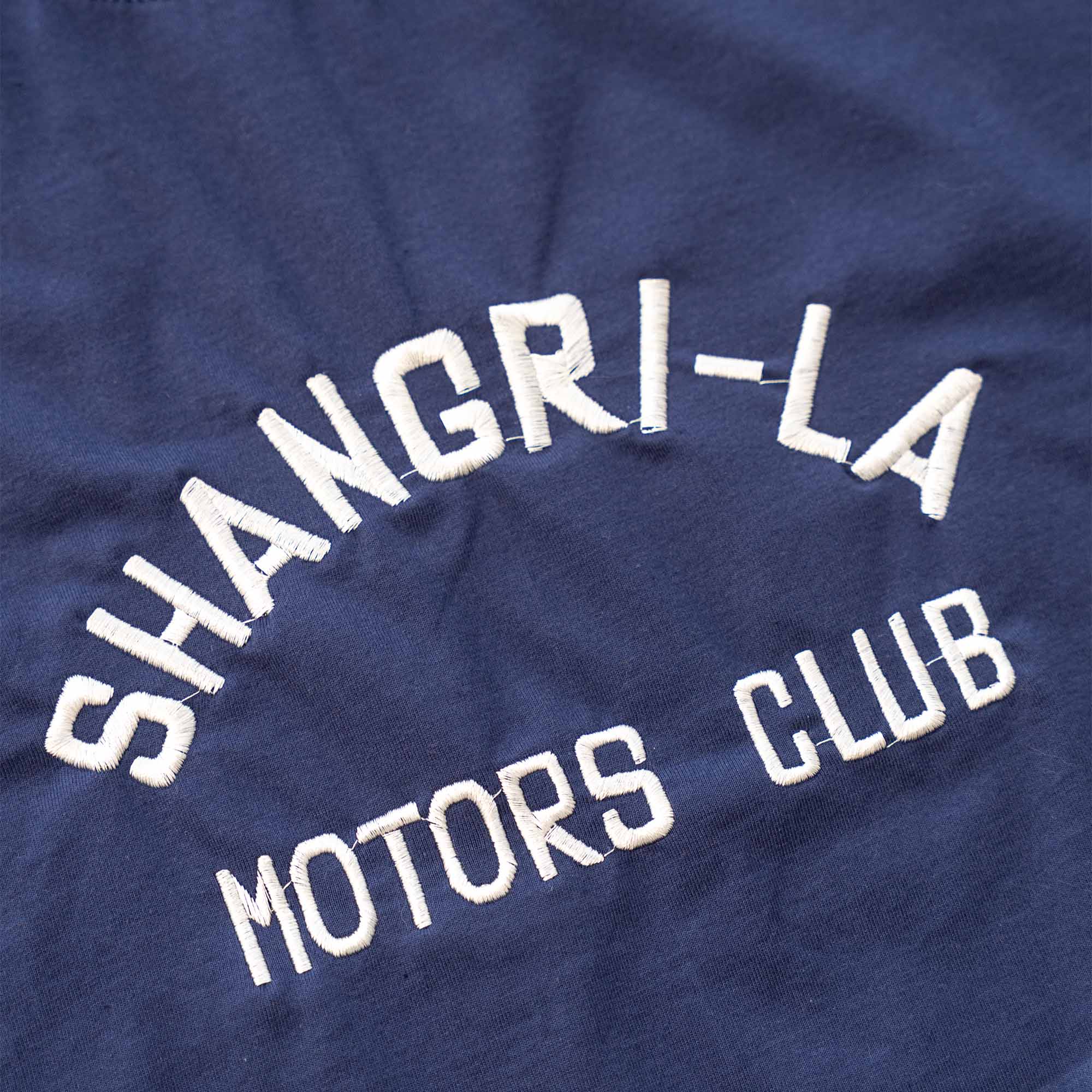 The front embroidery evokes a feeling of belonging to the Shangri-La Motors Club.
