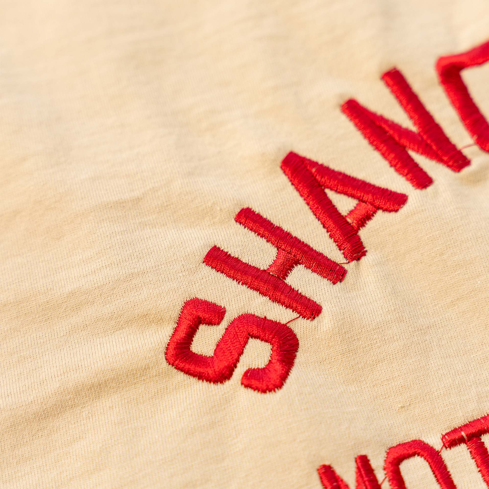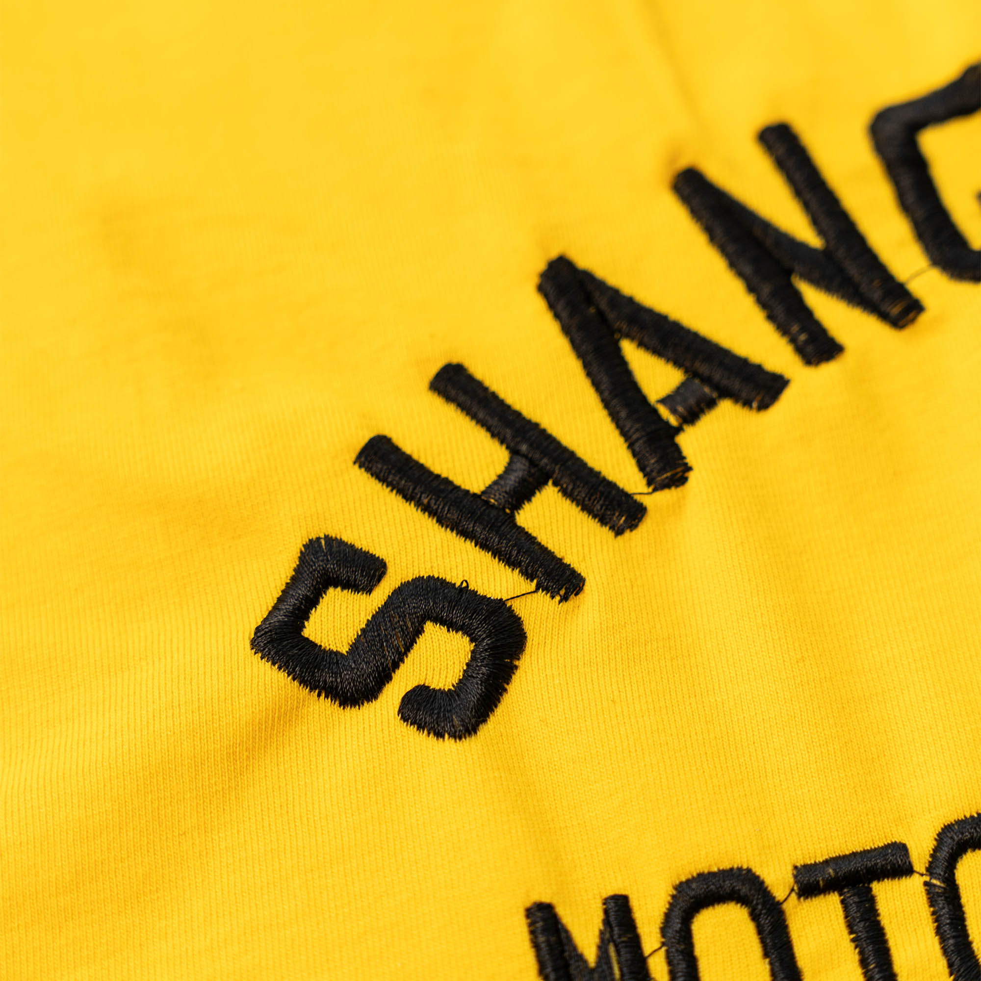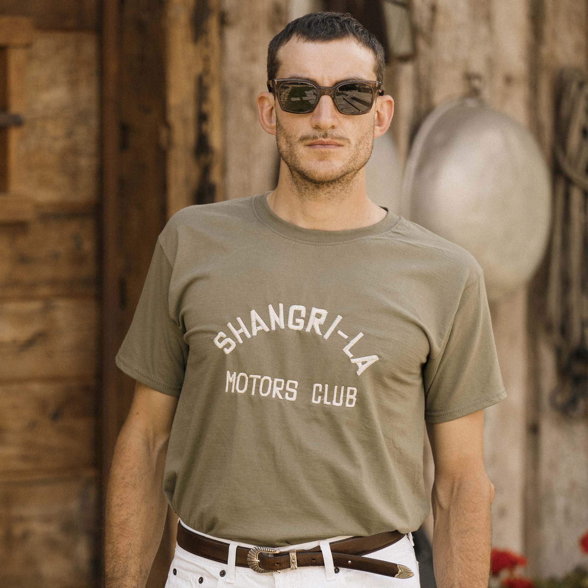 The front embroidery evokes a feeling of belonging to the Shangri-La Motors Club.