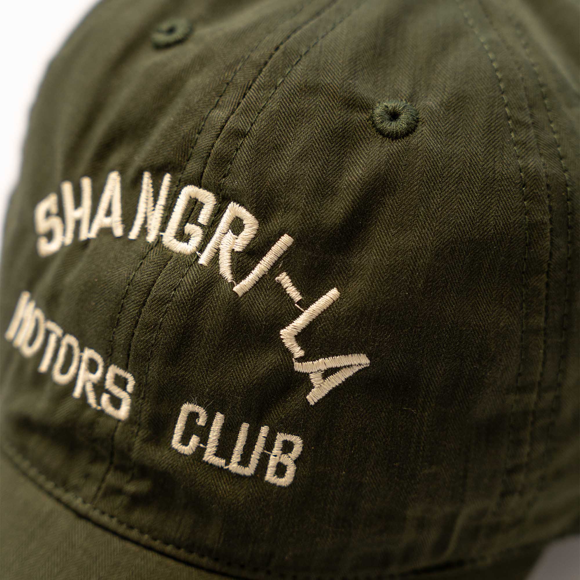 The front embroidery evokes a feeling of belonging to the Shangri-La Motors Club.