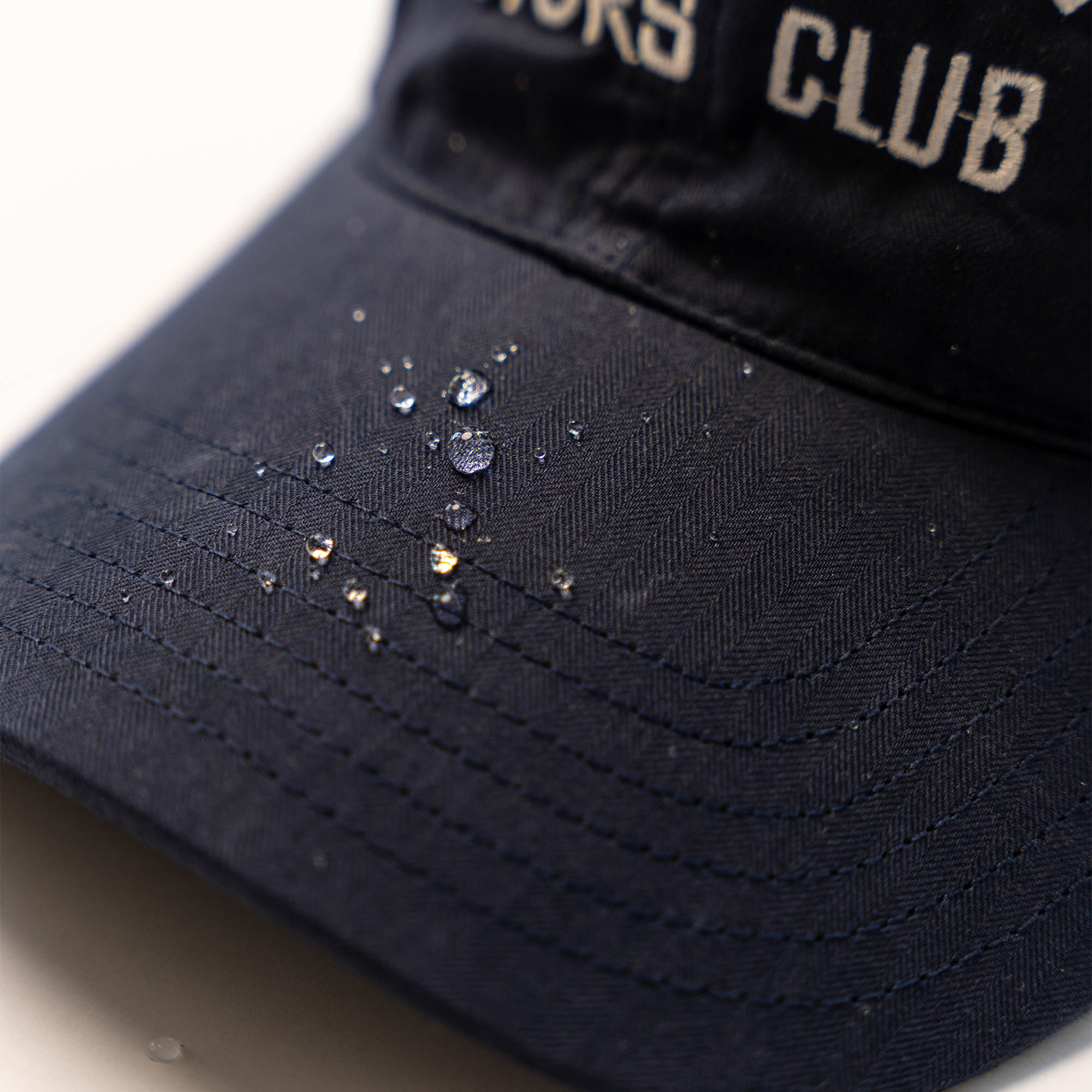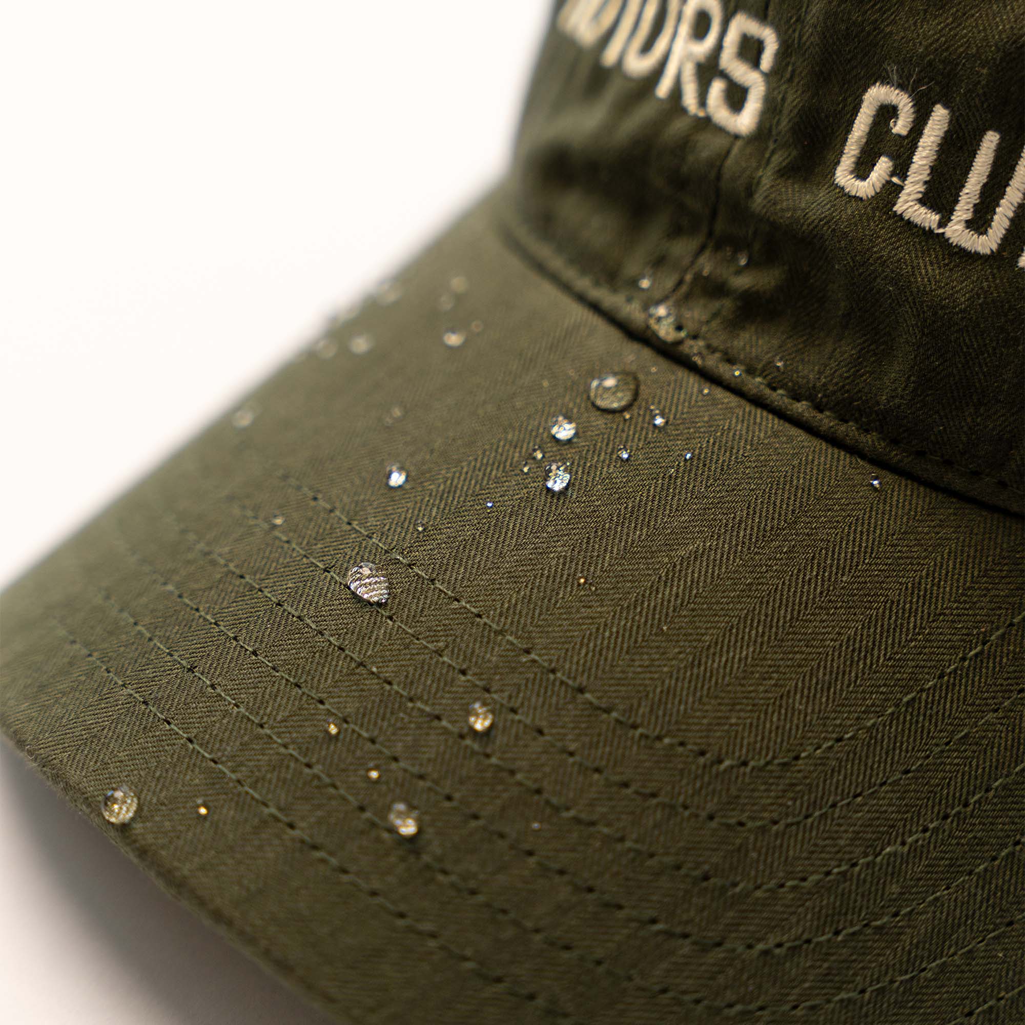 Inspired by the classic Baseball Cap (1849, NY) and revisited with a unique Italian touch, the “Motors Club” Waxed Herringbone Ball Cap represents an authentic Cap made of 100% Organic Cotton Waxed Military Herringbone 5 Oz by Halley Stevensons, one of the oldest waxed cotton mills in the world (since 1864 in Dundee, Scotland).