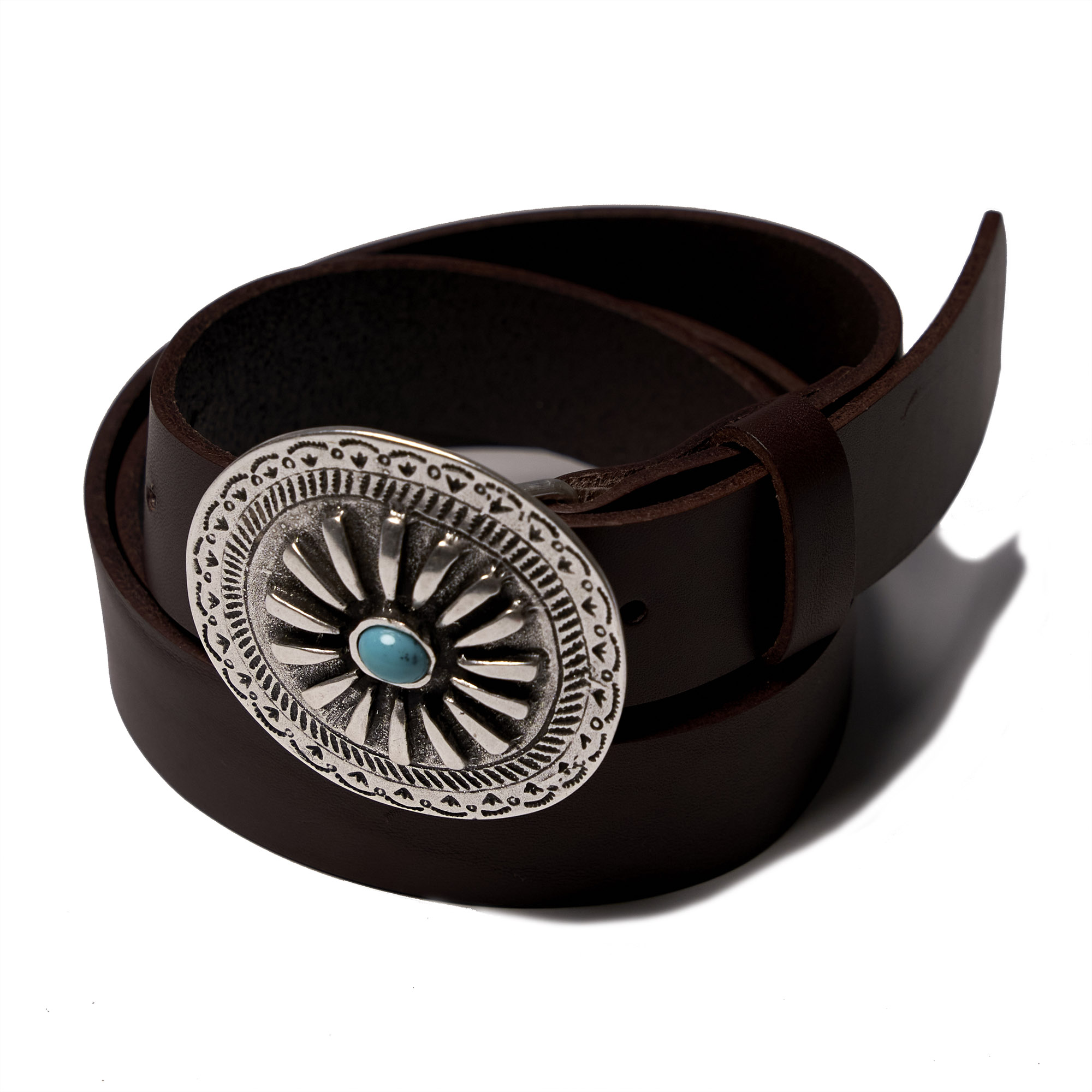 The concho belt is a traditional accessory rooted in Native American and Southwestern culture, particularly among the Navajo, Zuni, and Hopi tribes. The word “concho” comes from the Spanish “concha,” meaning “shell,” referencing the early use of oval or shell-shaped silver discs as decorative elements.