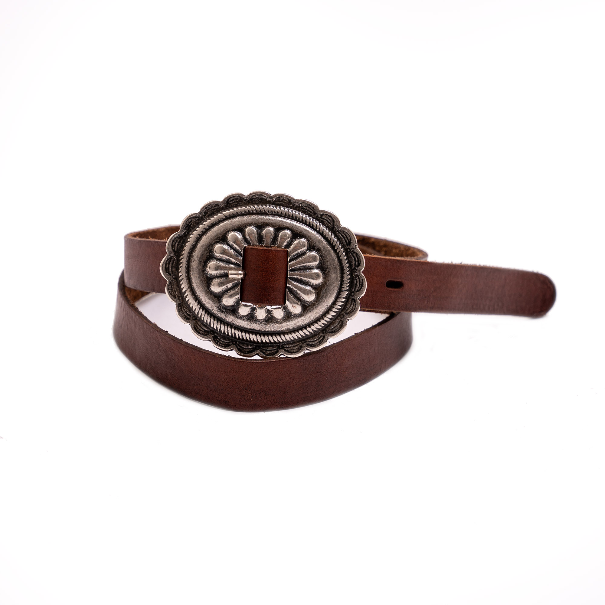 Inspired by the traditional Concho belts and revisited with a unique Italian touch, the “Rising Sun” Women’s Concho Belt represents an authentic belt made of Full Grain Cowhide Veg Tanned from Tuscany (Italy).