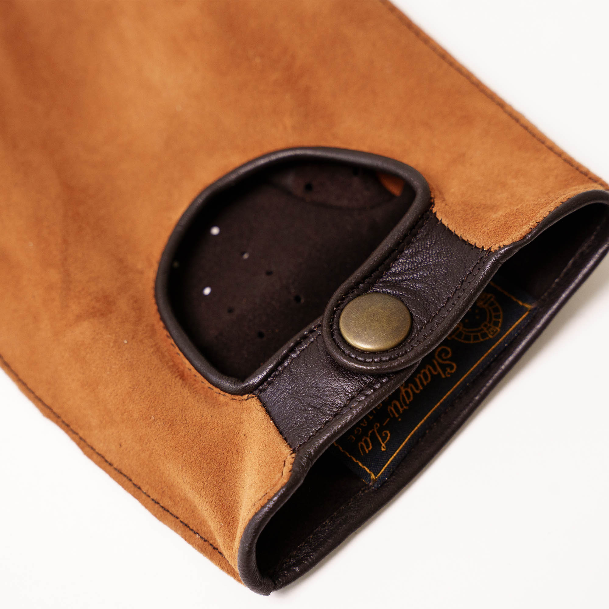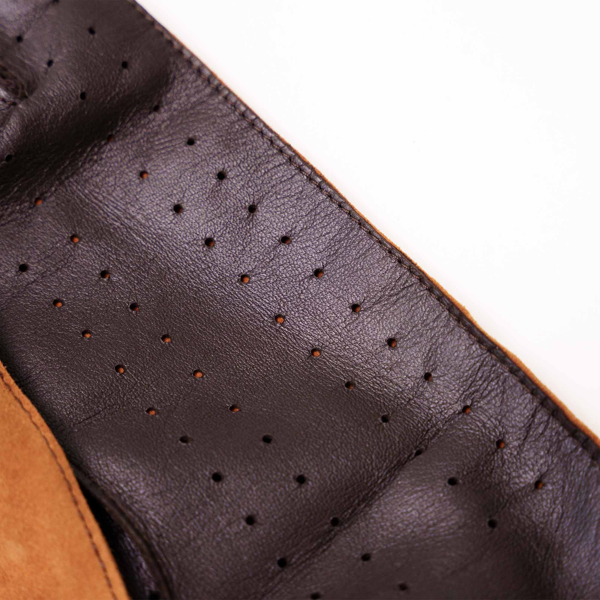 Inspired by the traditional Driving Gloves, the “Romeo” Racing Gloves are made of Full Grain Veg Tanned Lambskin from Italy, combined with Calfskin Suede panels on the back for abrasion resistance.