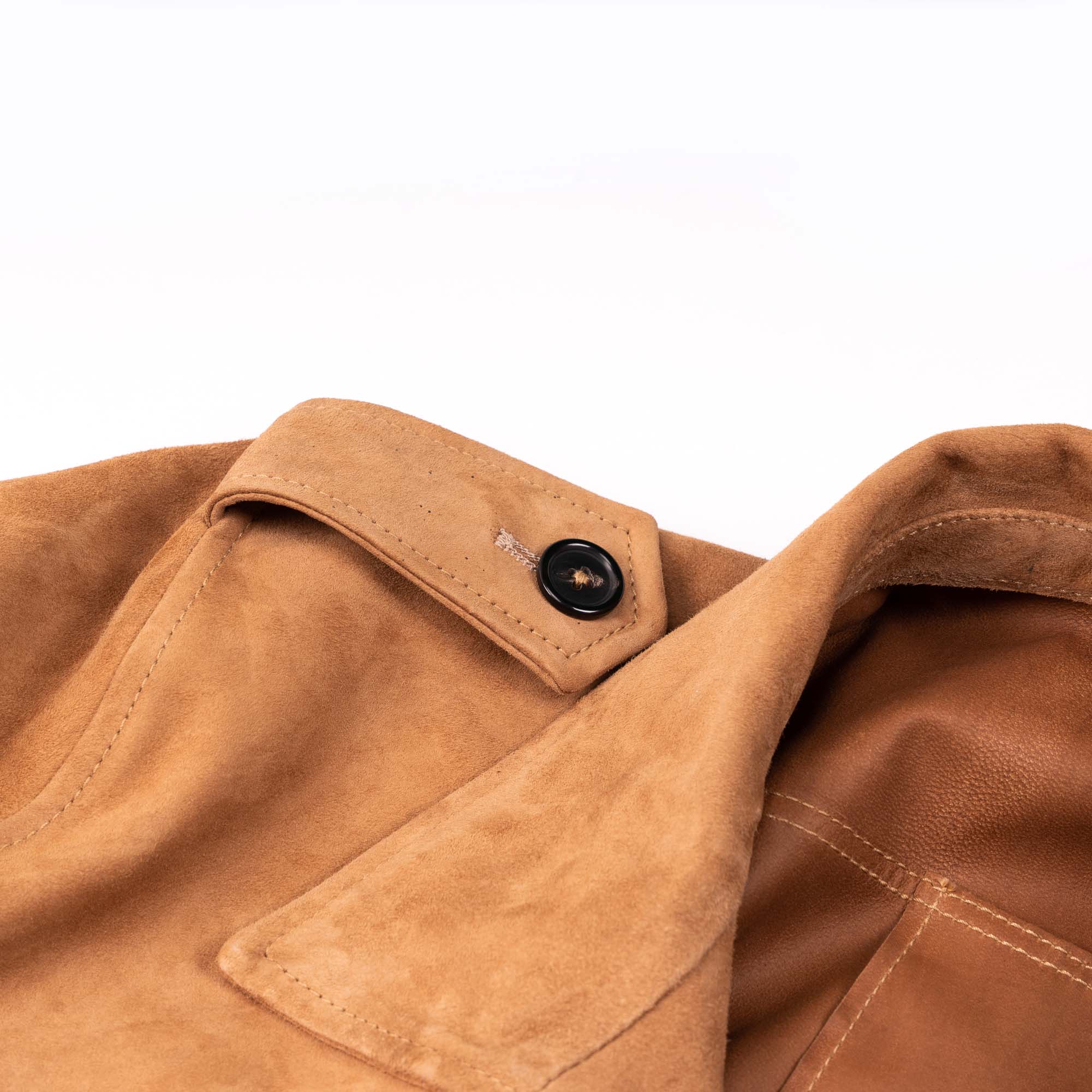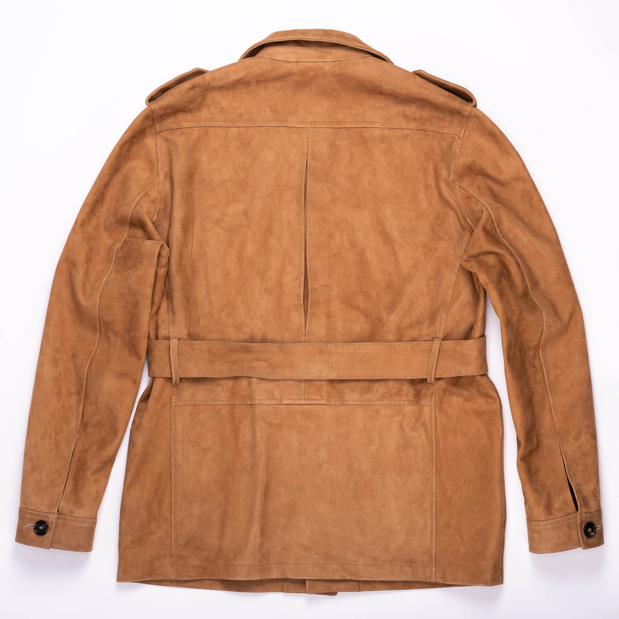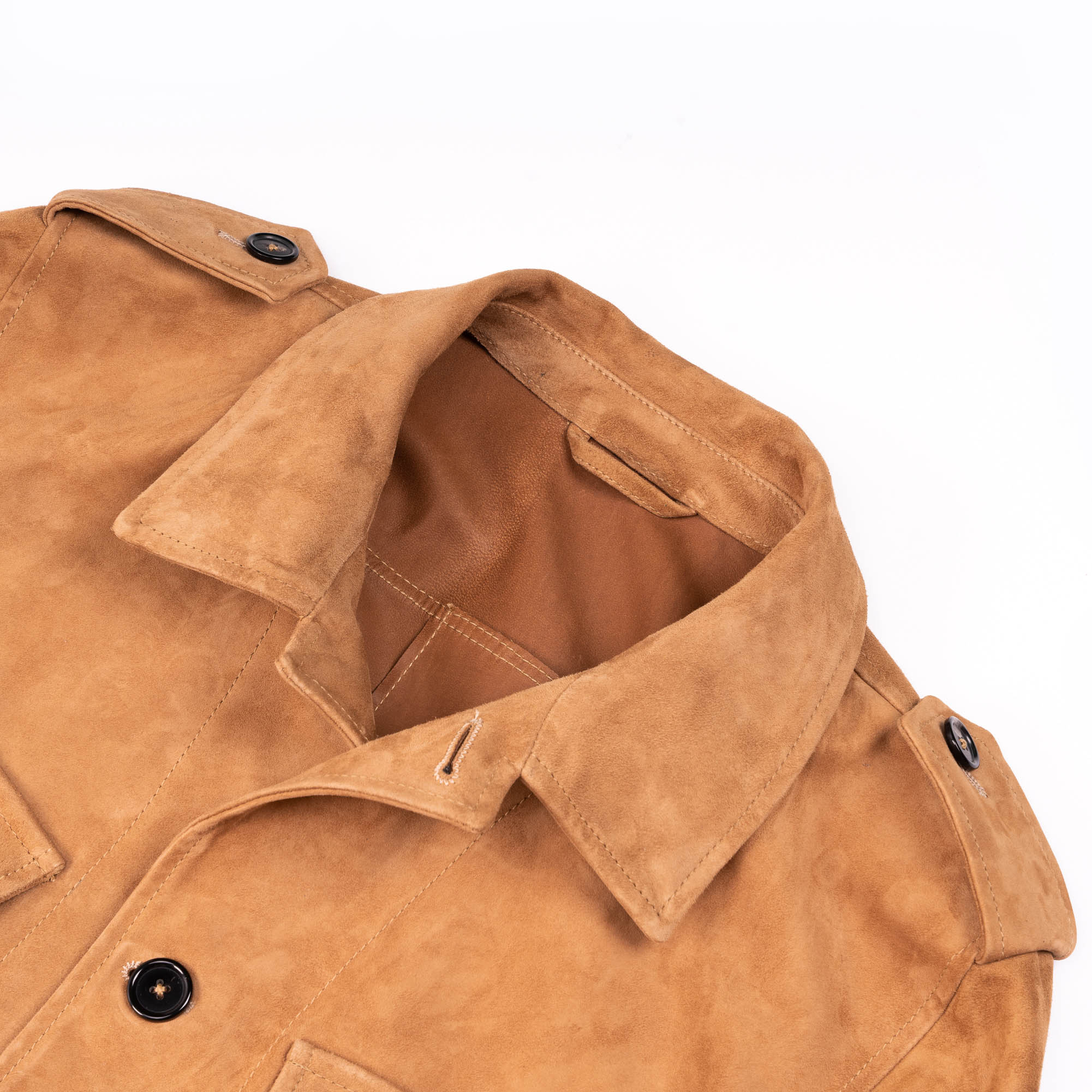 Inspired by mid 30s Safari jackets and revisited with a unique Italian touch, the “Safari” Camel Suede Jacket represents an authentic garment made of the finest Full Grain Goatskin Suede from Tuscany (Italy).