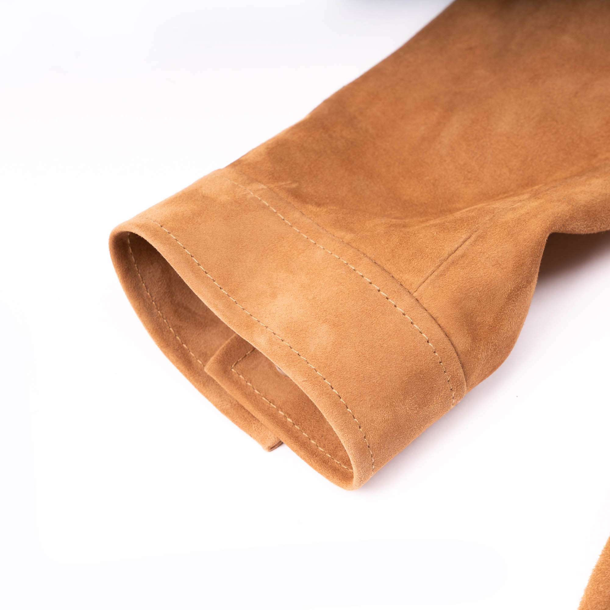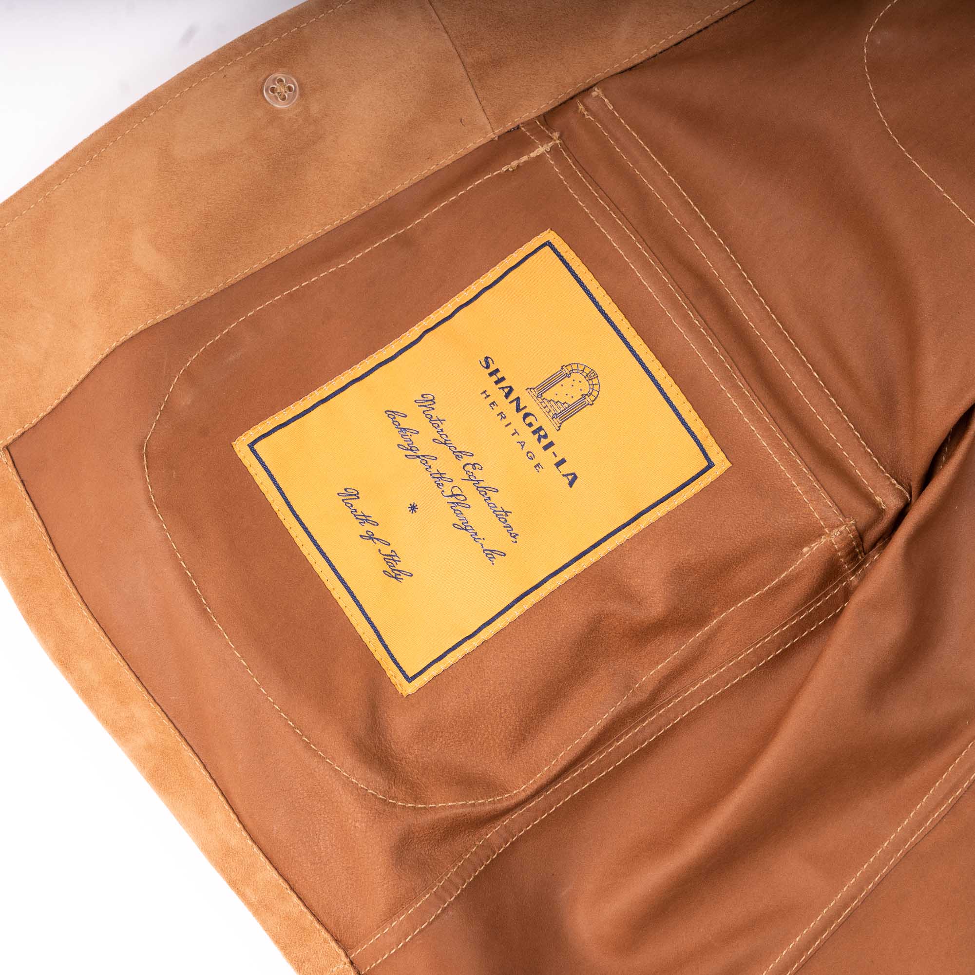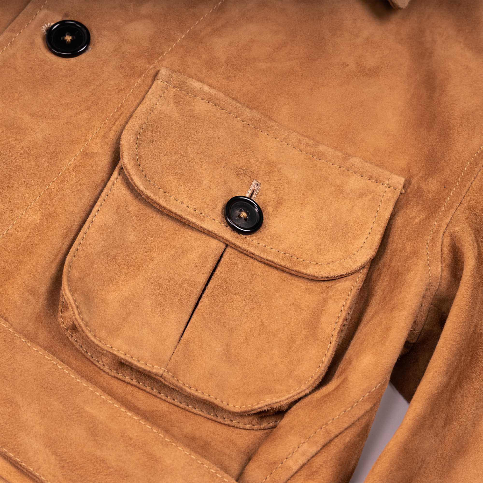 Inspired by mid 30s Safari jackets and revisited with a unique Italian touch, the “Safari” Camel Suede Jacket represents an authentic garment made of the finest Full Grain Goatskin Suede from Tuscany (Italy).