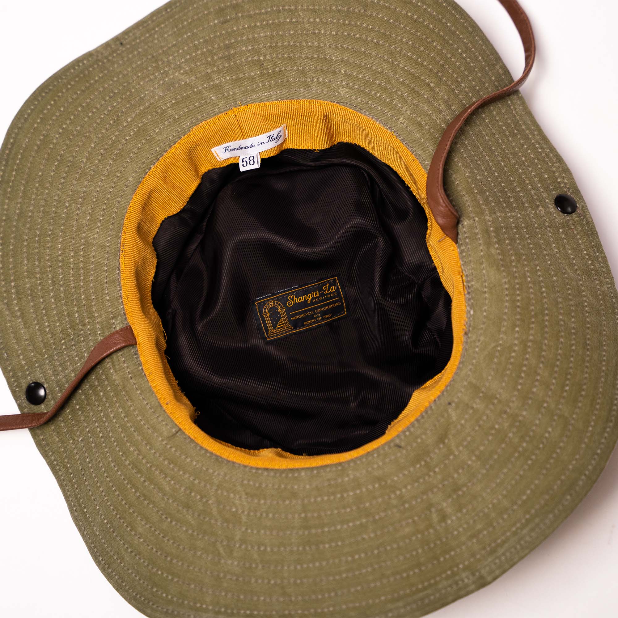 Inspired by the traditional Safari Hats and revisited with a unique Italian touch, the “Safari” Waxed Canvas Hat is made of 100% Cotton Waxed Canvas Desert Tumbled 14,7 Oz by Halley Stevensons, one of the oldest waxed cotton mill in the world (since 1864 in Dundee, Scotland).