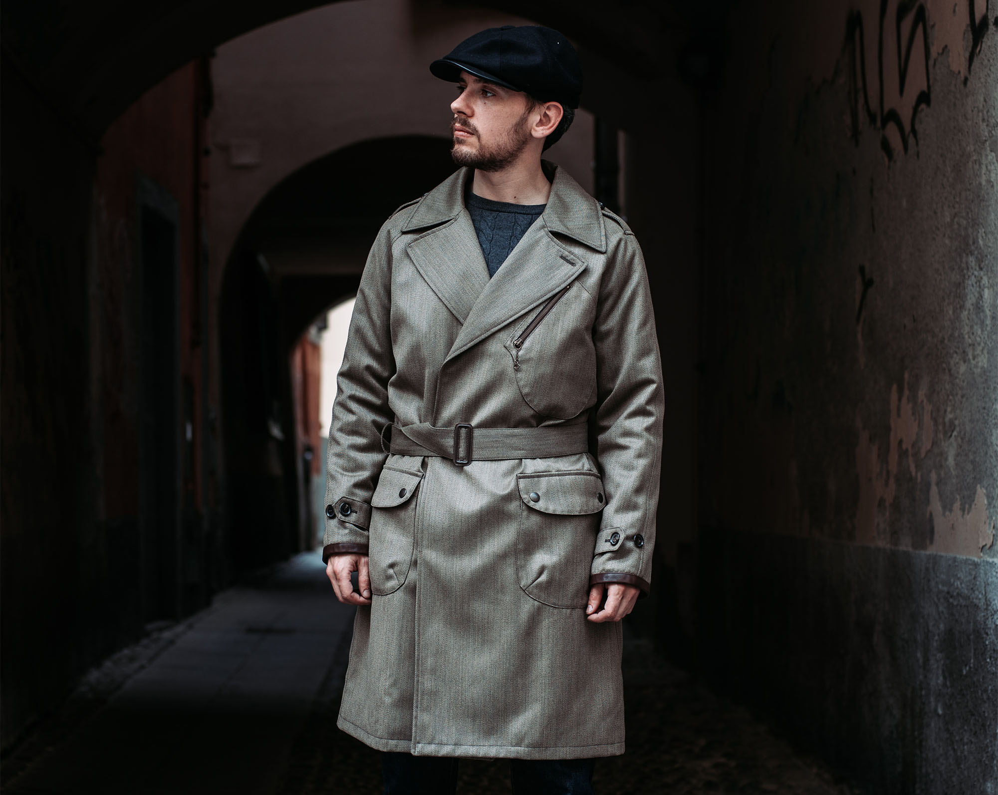 Inspired by late 10s Dispatch Rider coats from the First World War and revisited with a unique Italian touch, the “Stelvio” Dispatch Rider Coat represents an authentic garment made of 100% Covert Wool 15 Oz by Vitale Barberis Canonico, the oldest woolen mill in the world (Biella, Italy).
