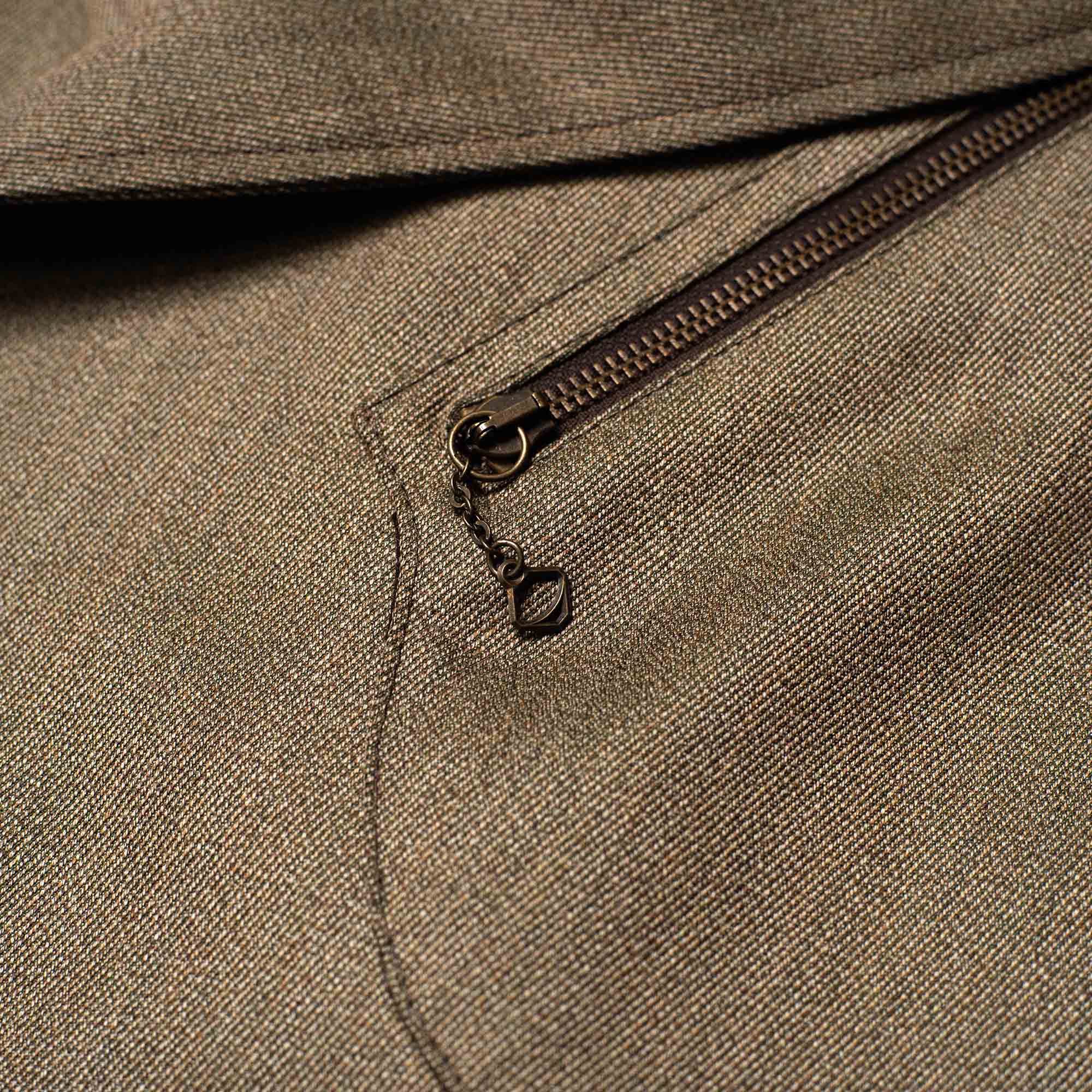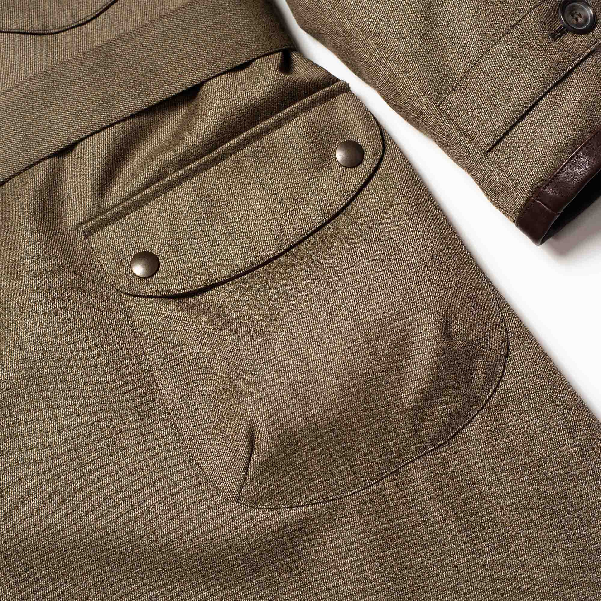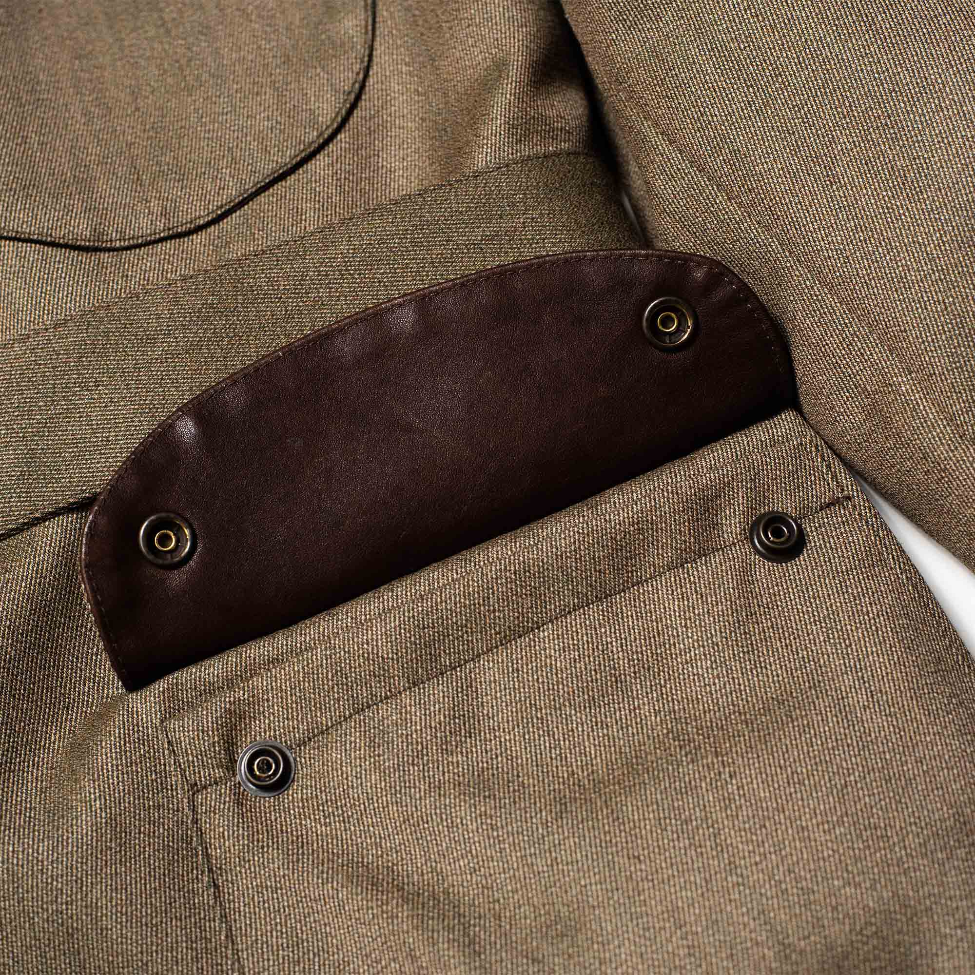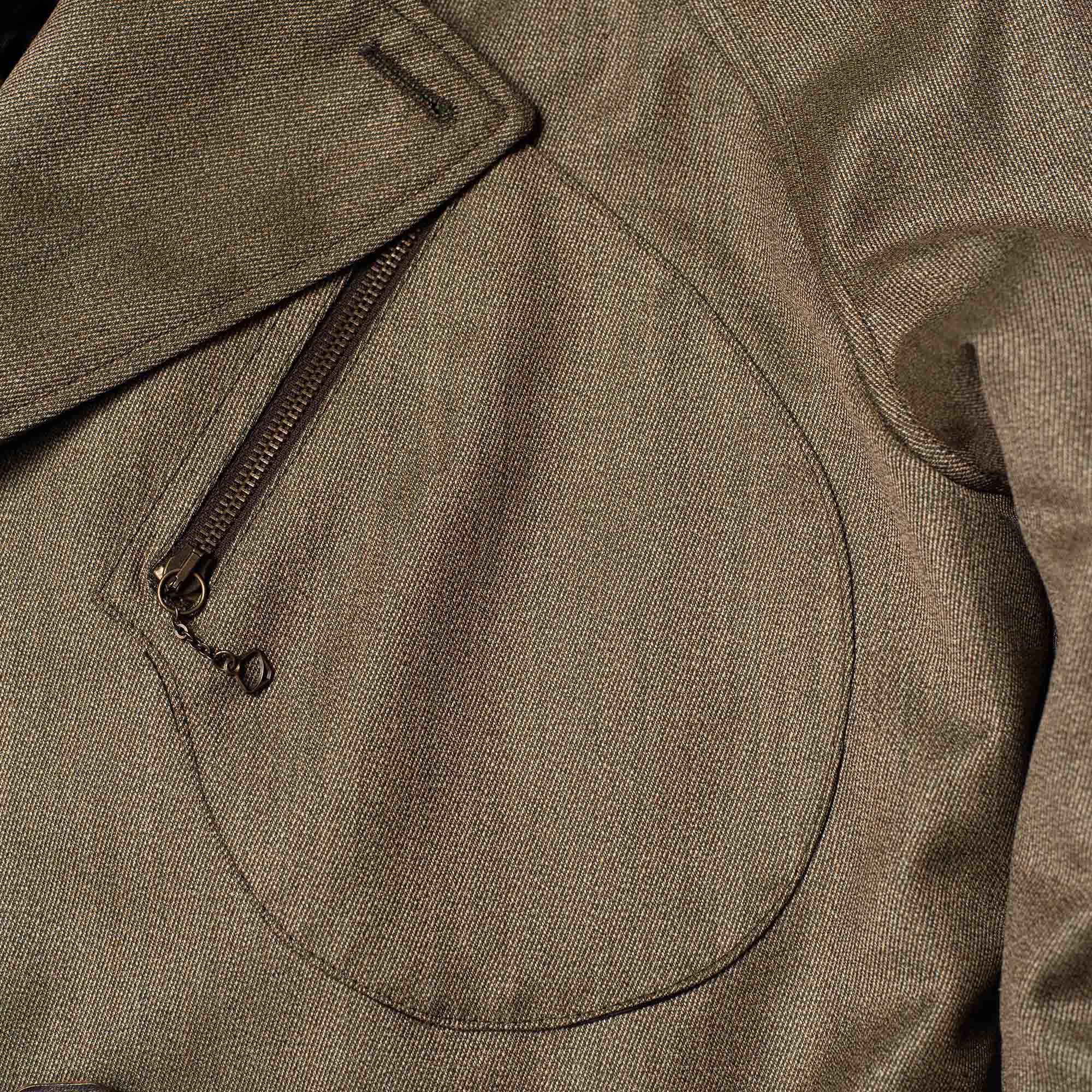 The Covert Wool is a worsted batavia weave, of winter weight, clear-cut and compact. This material was primarily used for apparel worn by hunters and riders, created with the specific purpose of withstanding all kinds of weather, mud, and bush-encounters during any good hunt.