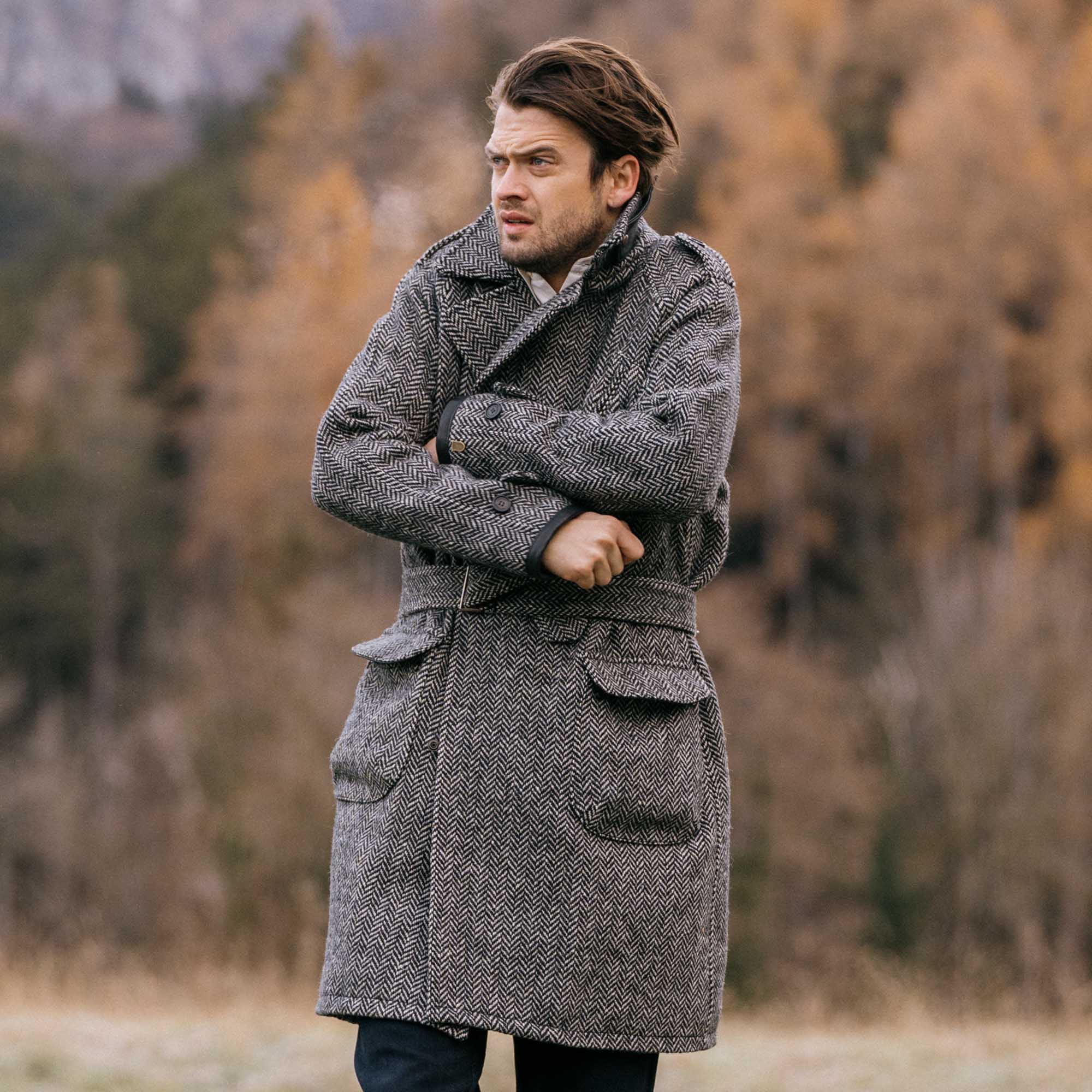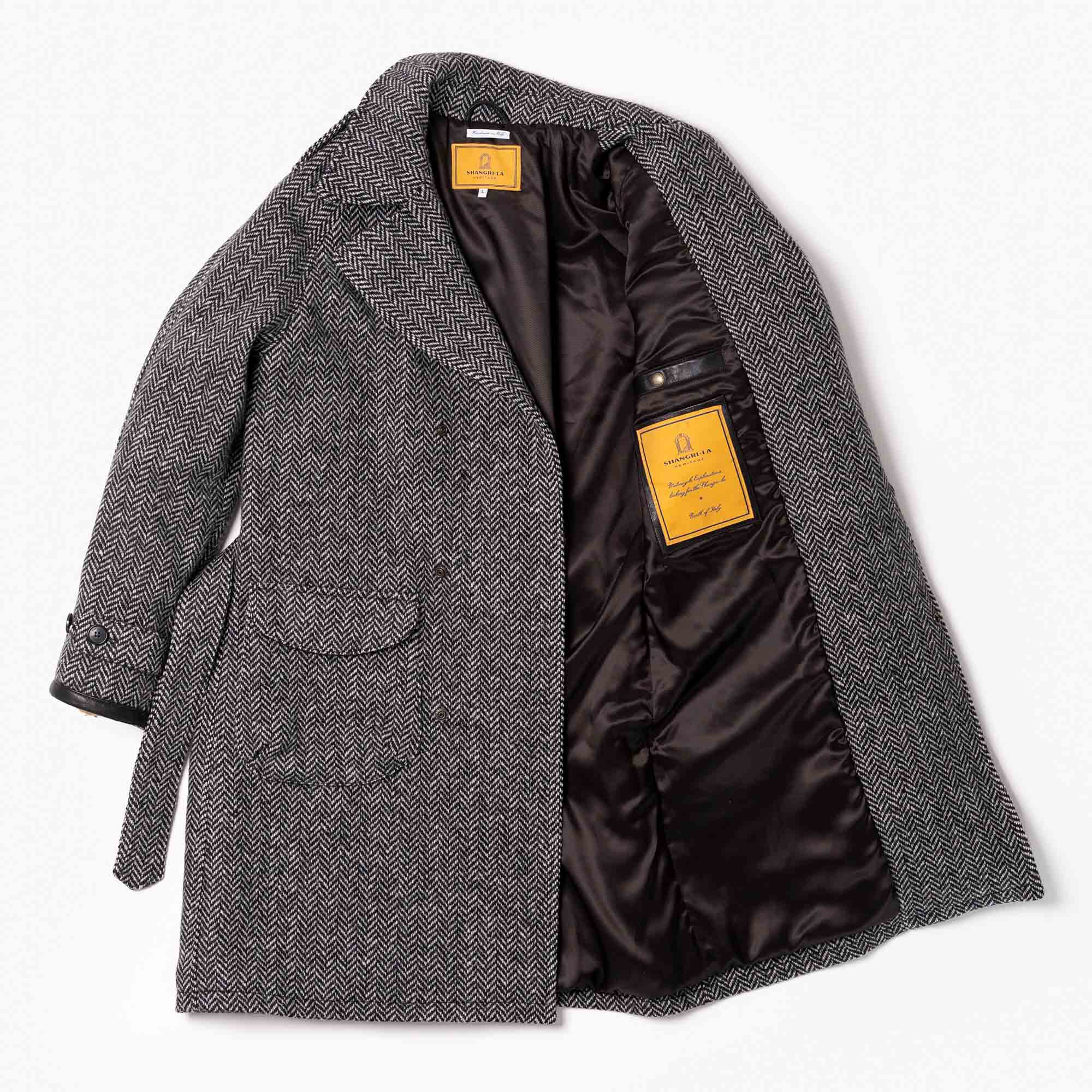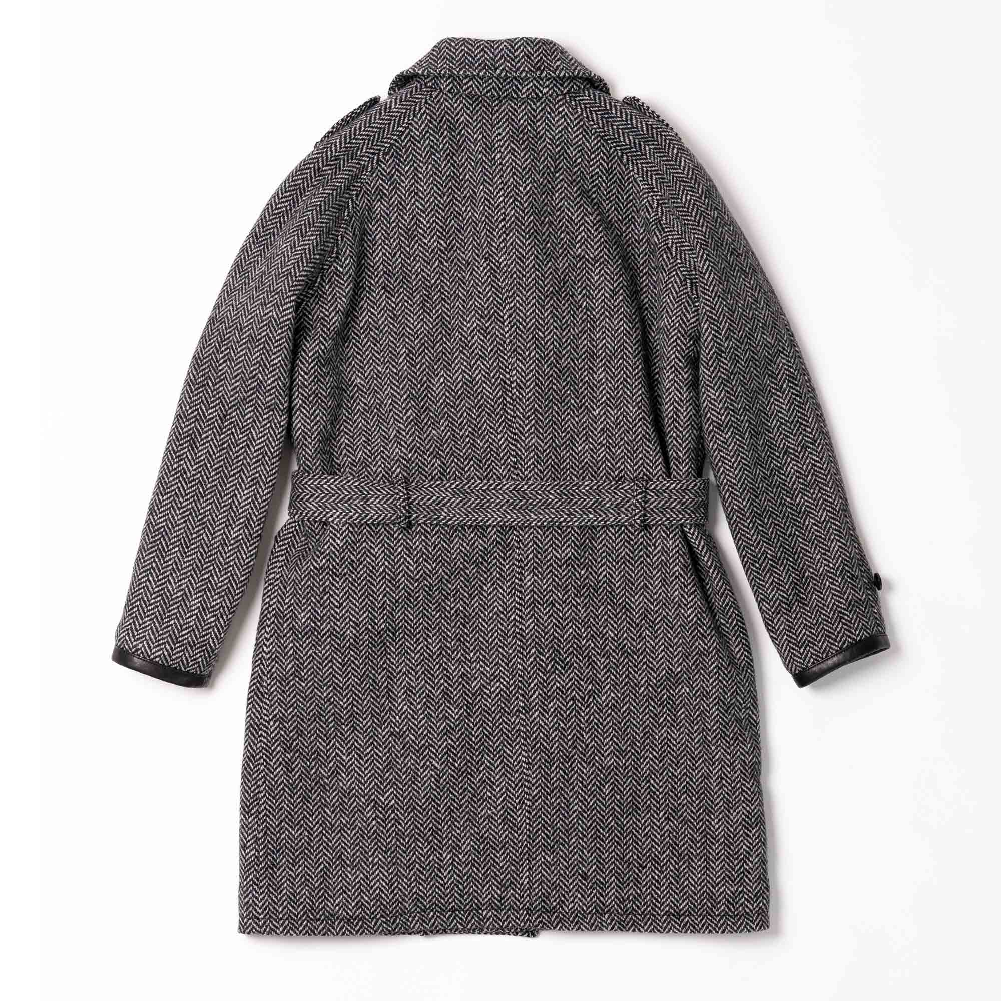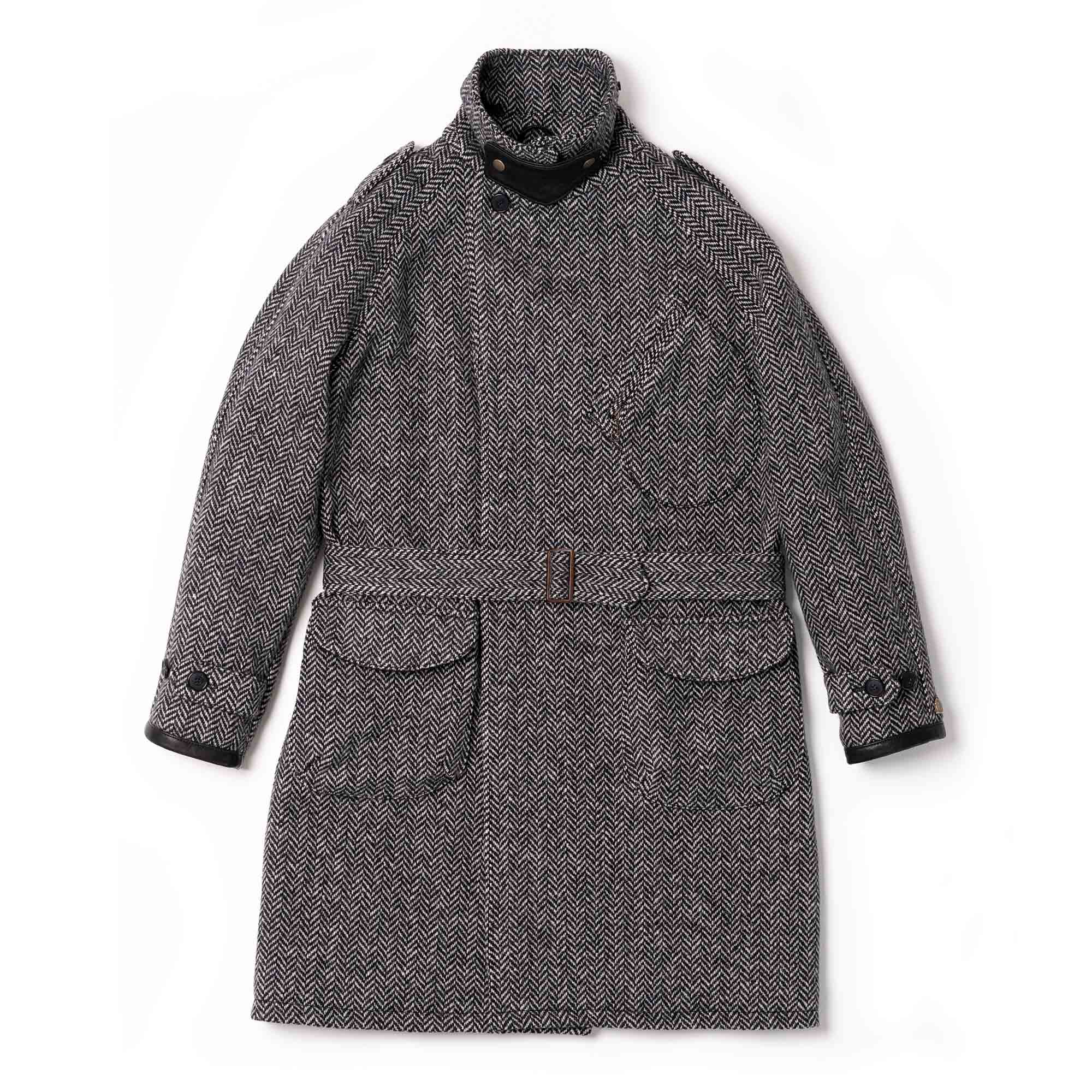 “Stelvio” Grey Herringbone Wool Dispatch Rider Coat