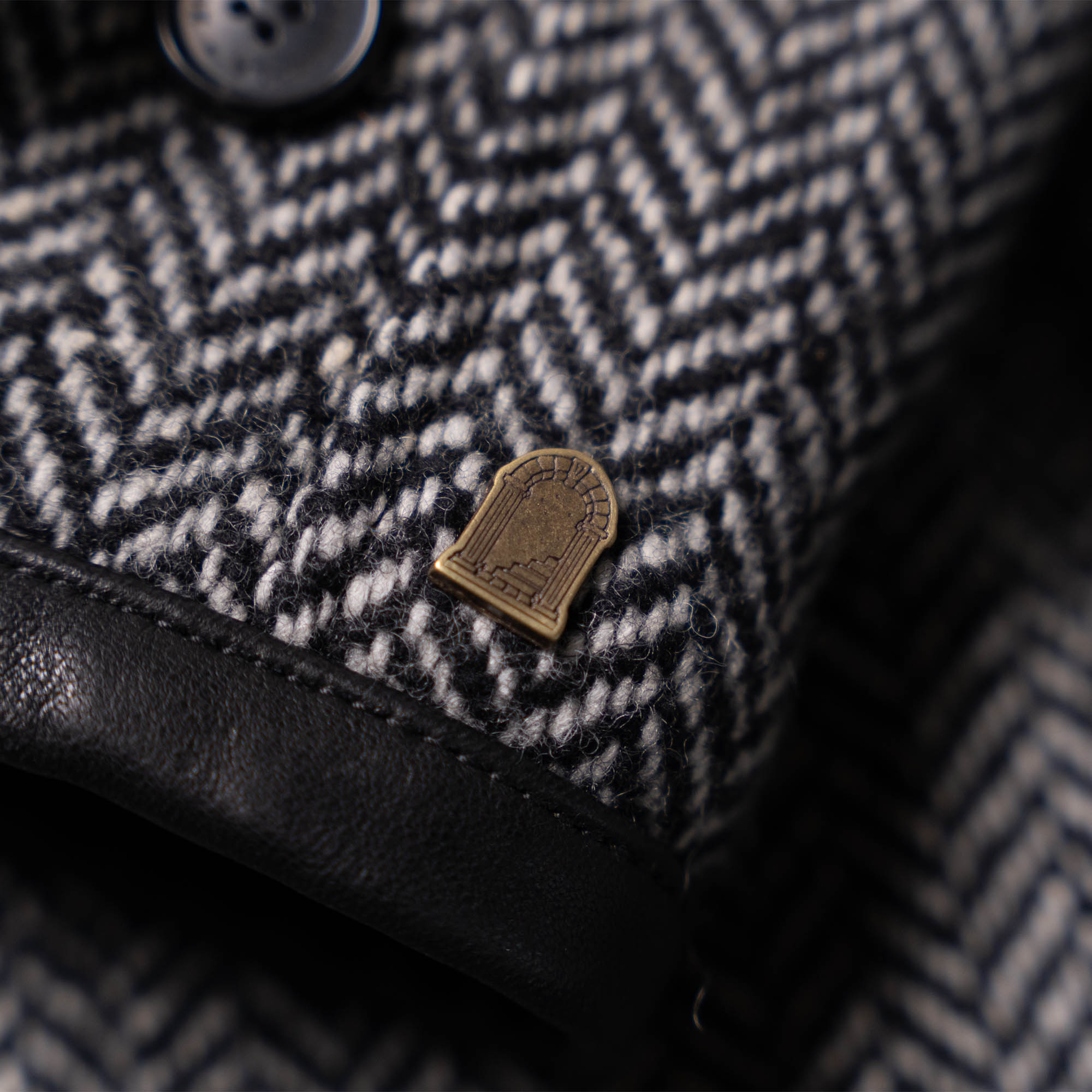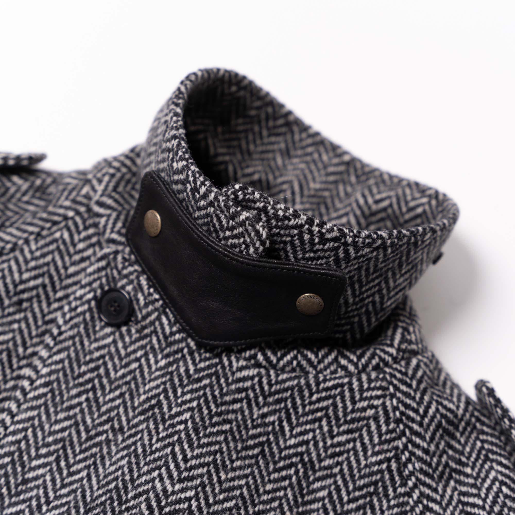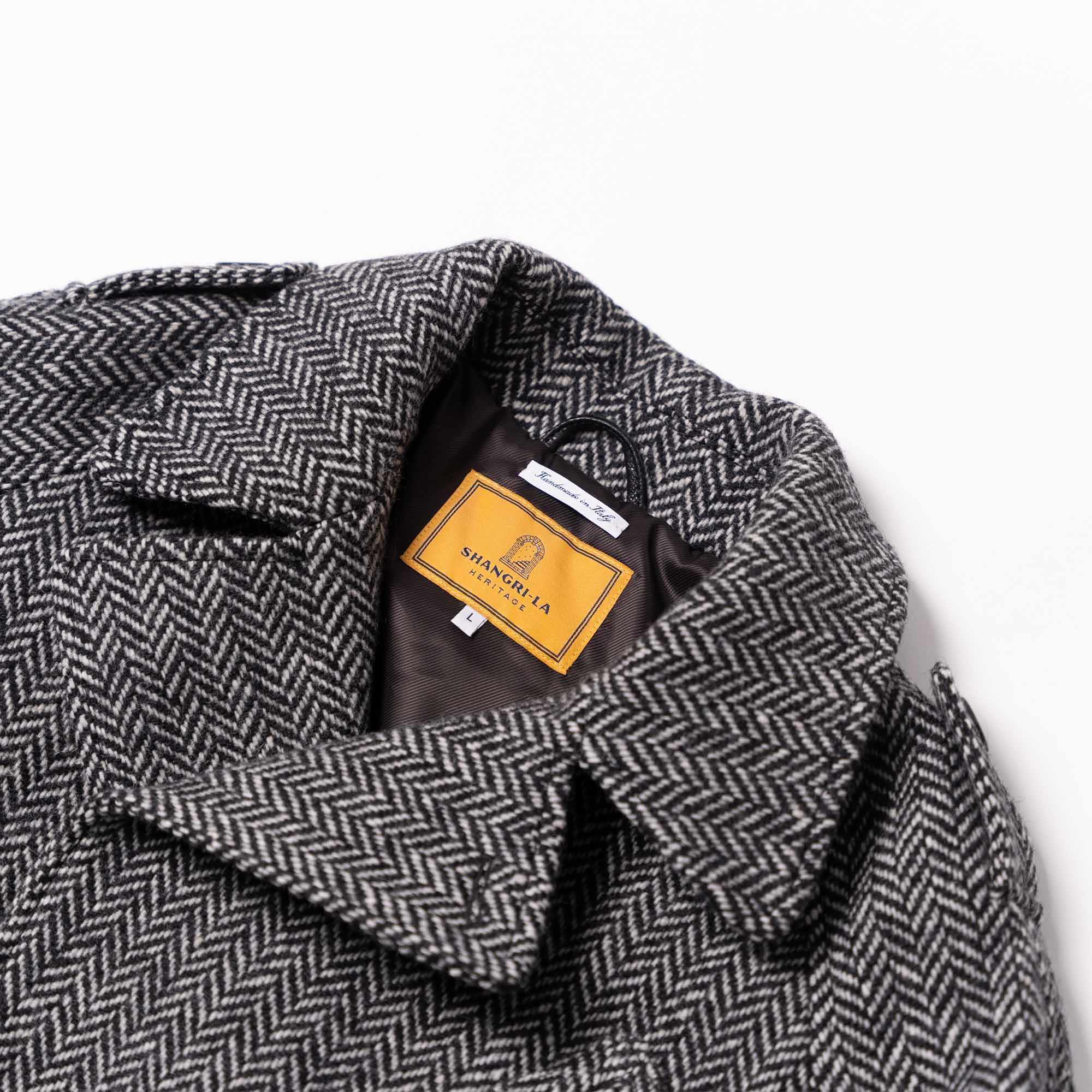 • Removable closing collar-tab in Herringbone Wool 21 Oz from Tuscany (Italy) with snap buttons