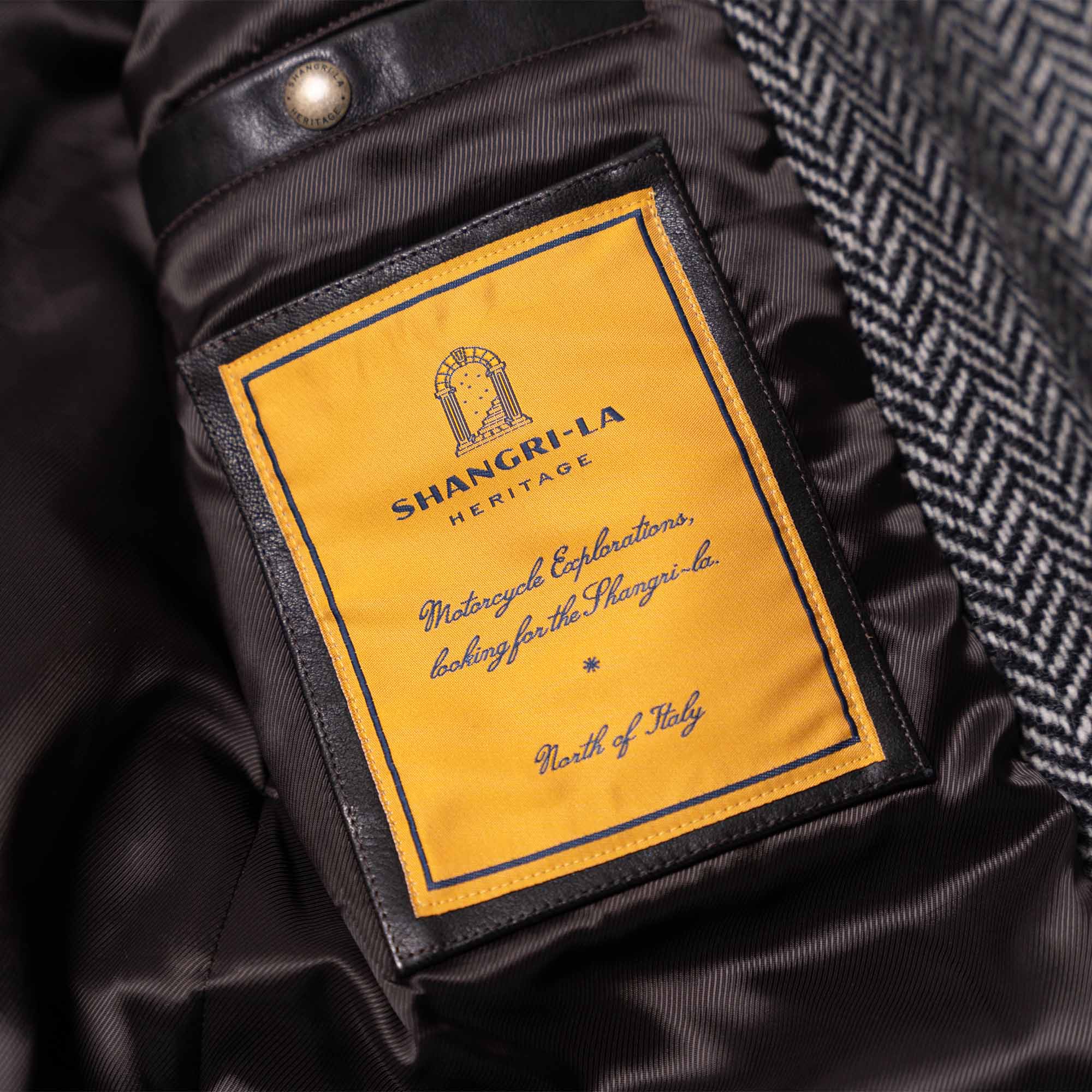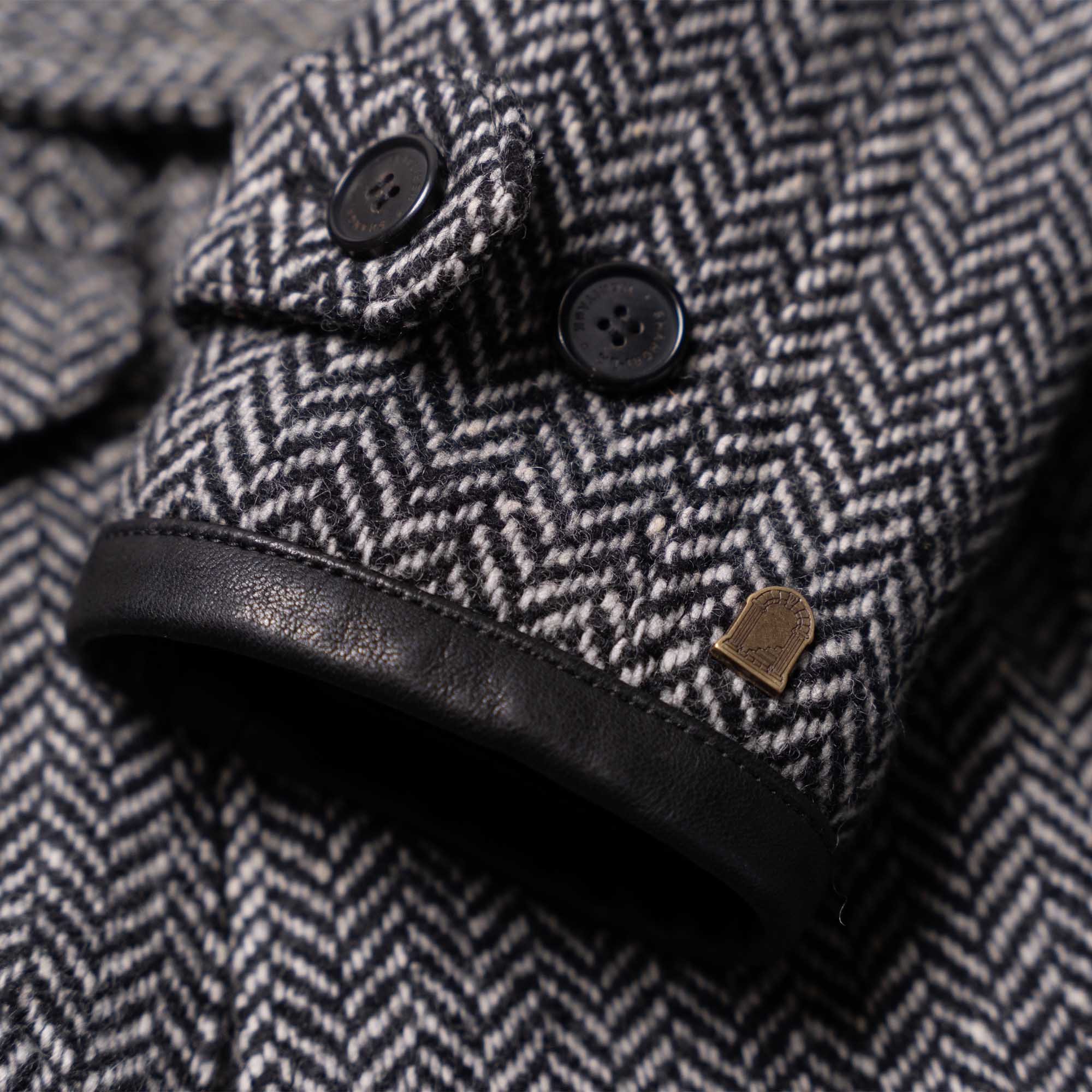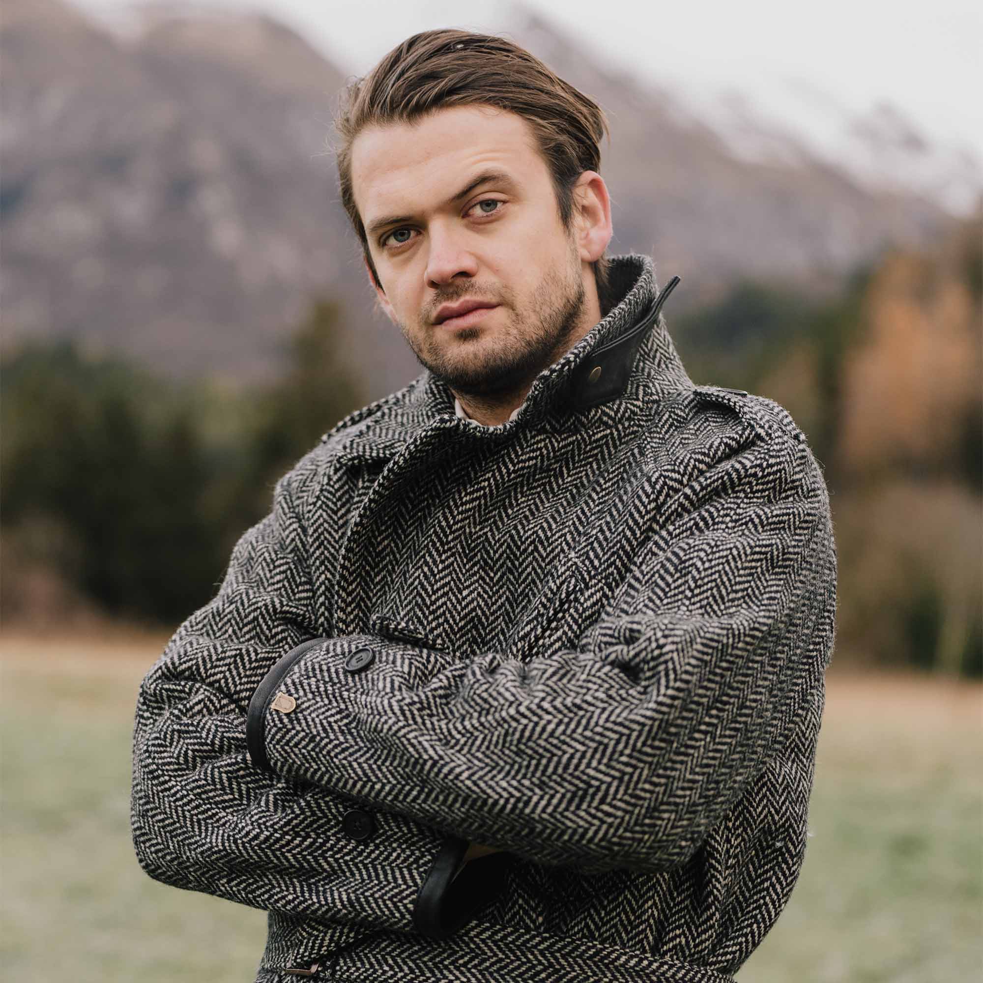 Inspired by late 10s Dispatch Rider coats from the First World War and revisited with a unique Italian touch, the “Stelvio” Dispatch Rider Coat represents an authentic garment made of Premium Herringbone Wool 21 Oz from Tuscany in Grey color, with leather trimmings made with vegetable tanned Lambskin from Tuscany (Italy).