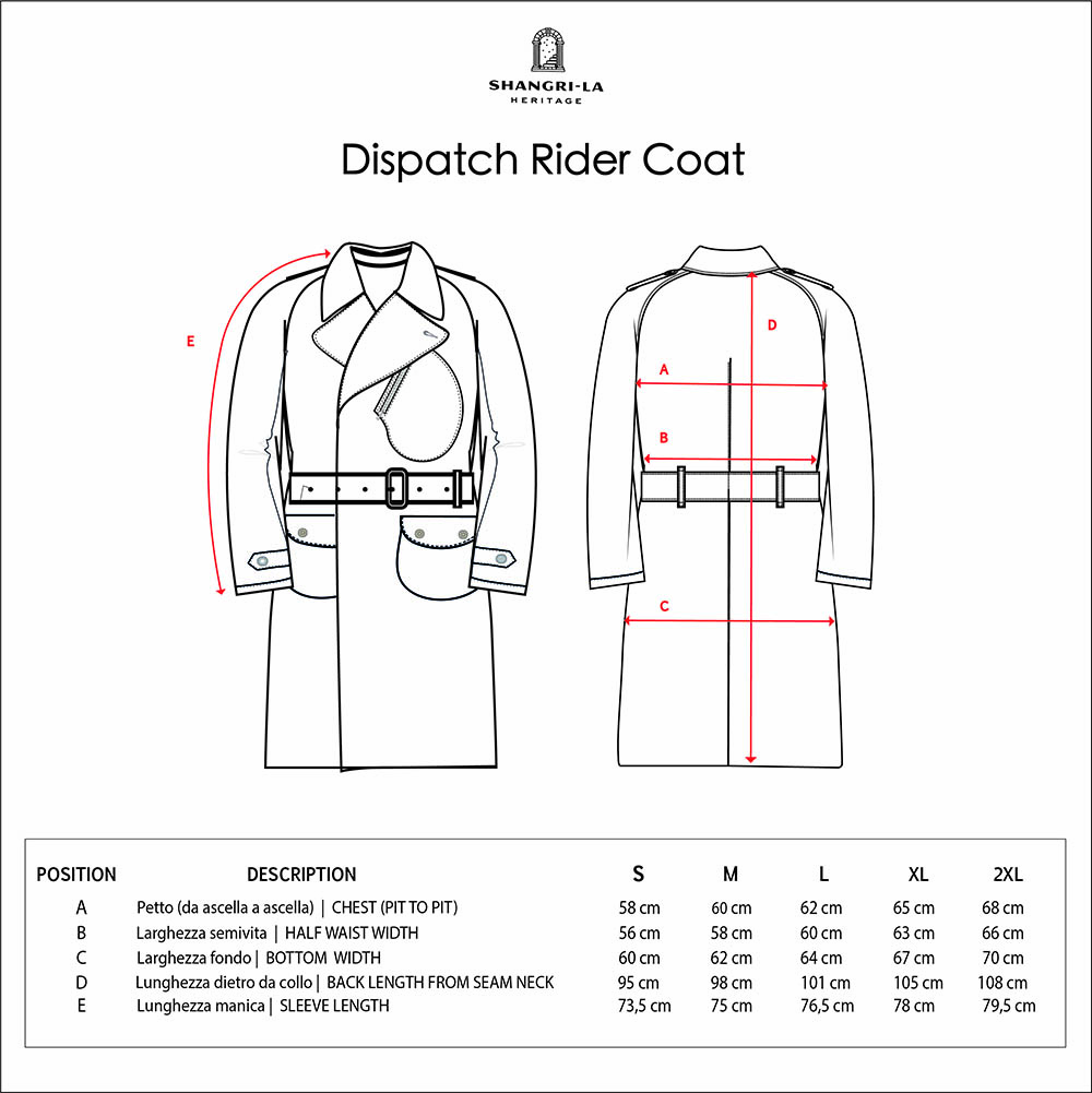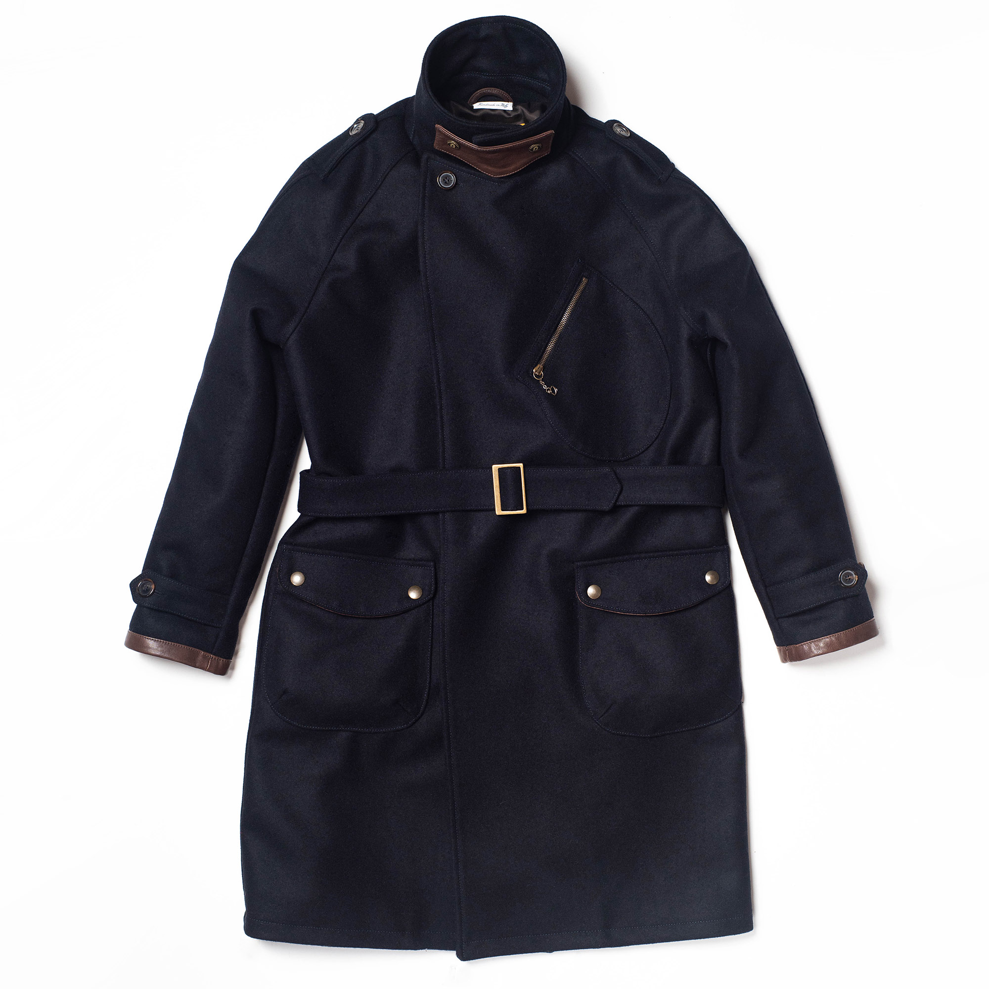 A double-breasted front provided an additional layer of protection to the chest, with a storm flap designed to keep water away from the body. The most distinctive feature of the coat, however, remains the slanted chest “Map” pocket used by the dispatch riders to carry messages.