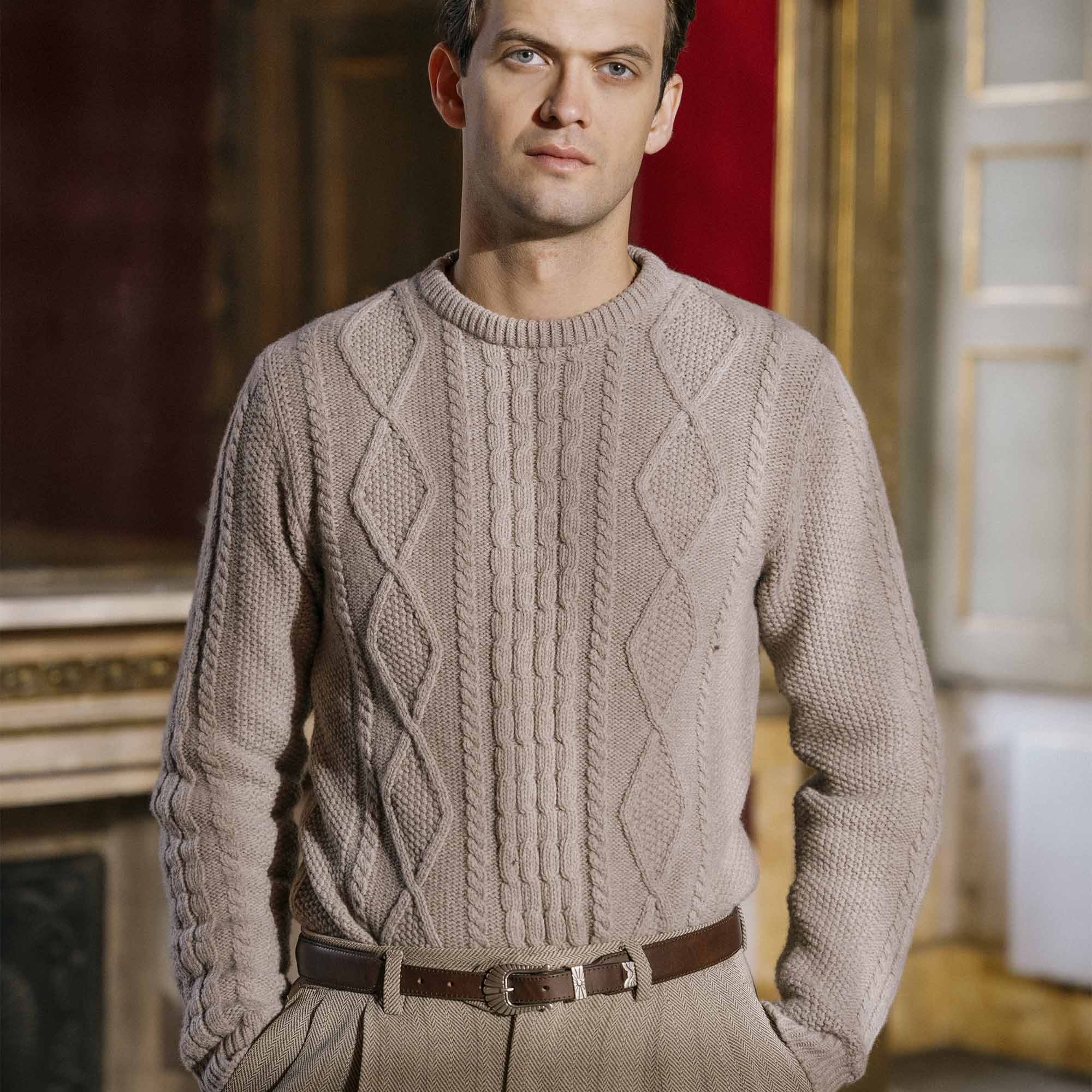 Inspired by the hard-wearing Aran jumpers worn by British Fishermen and by the Icon Steve McQueen, our “Steve” Beige Merino Wool Sweater is extra warm in cold weather and naturally super soft.