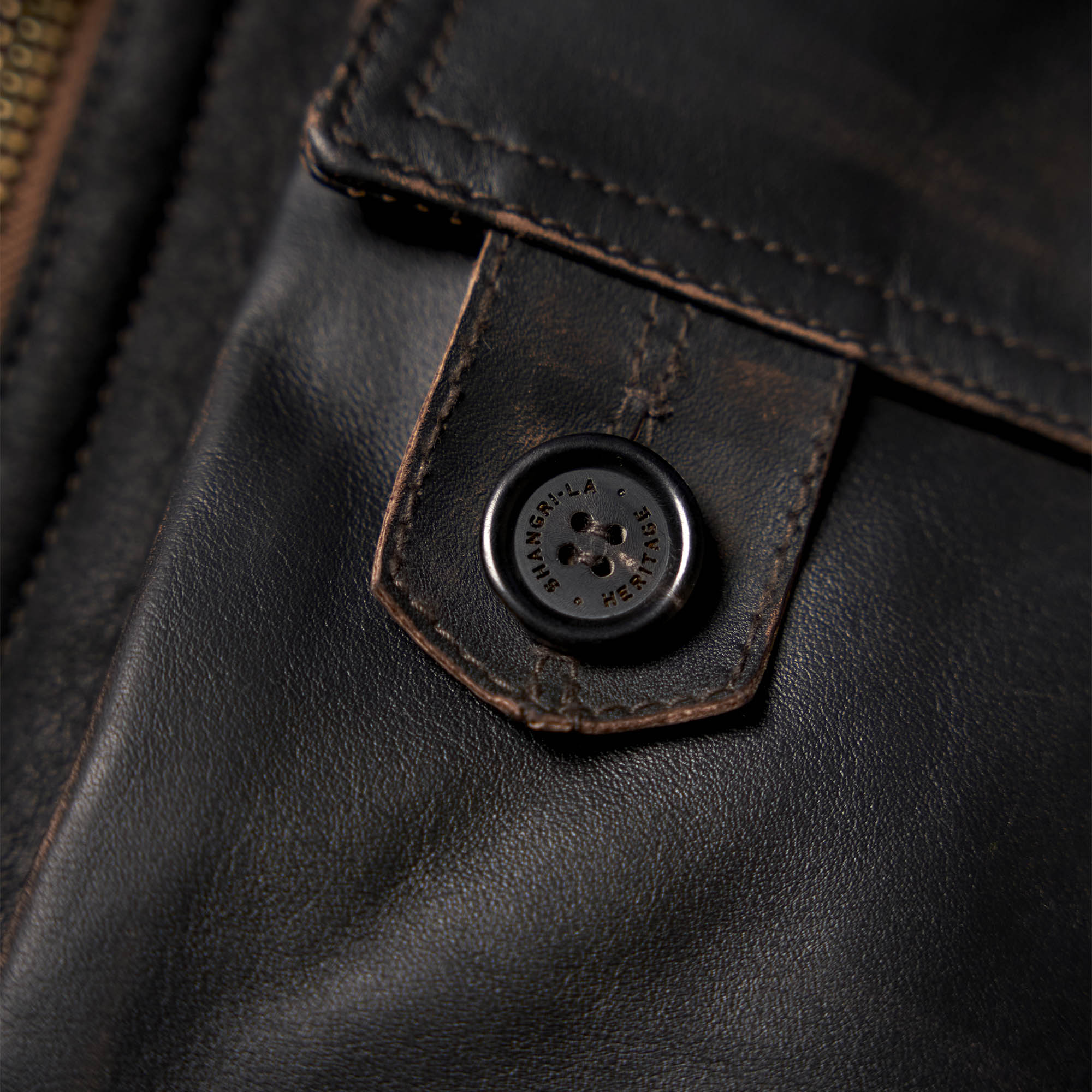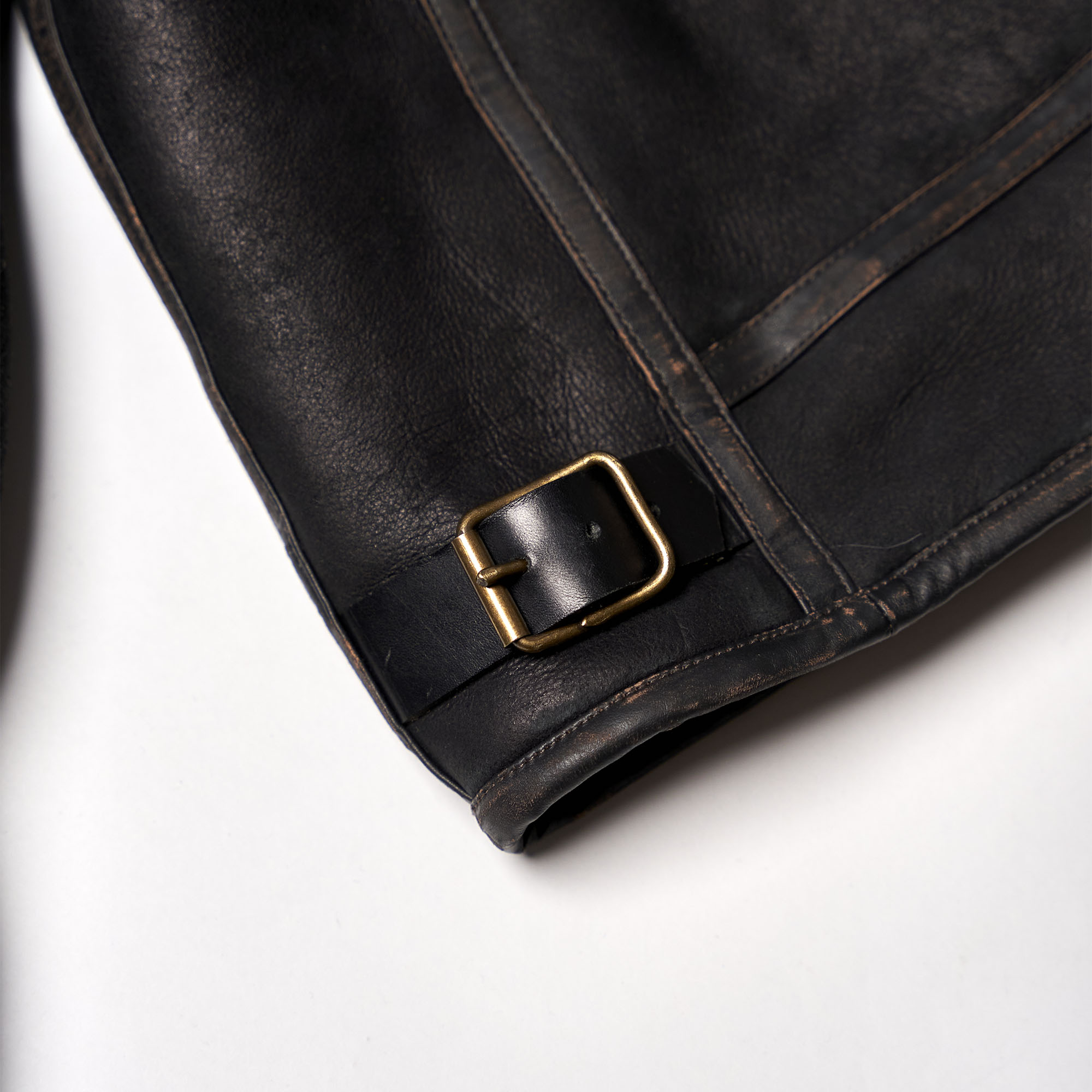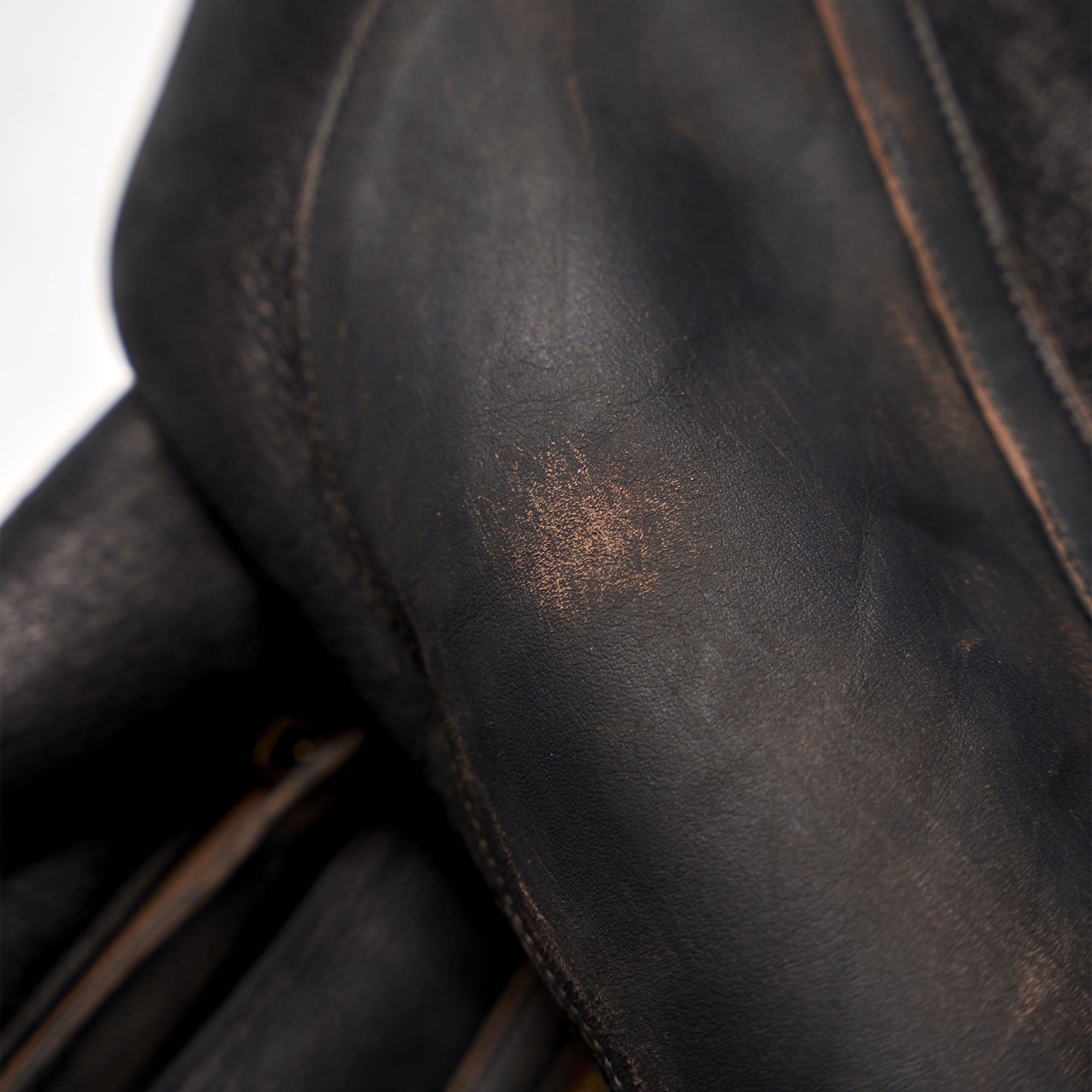 The Full Grain Tea-Core Steerhide has been aged by hand, giving it a real antique look. This Leather will change color with the wear, developing a unique Patina on the jacket, as a personal journey. The Black Tea-core Leather will begin to reveal the natural color under-layer, showing signs of time when it’s exposed to the elements and daily use, showing awesome scratches and fades in a various shades of golden and brown tone.