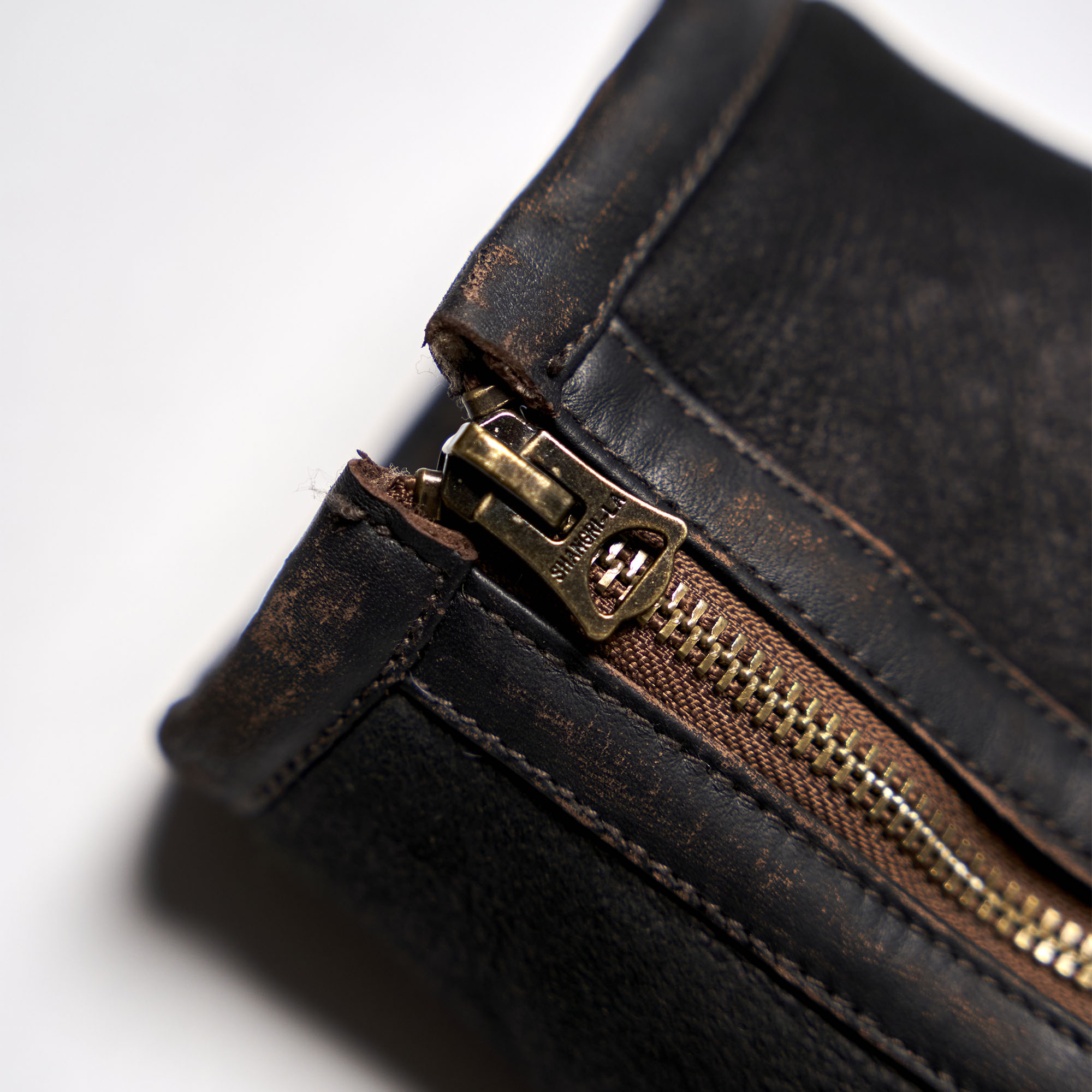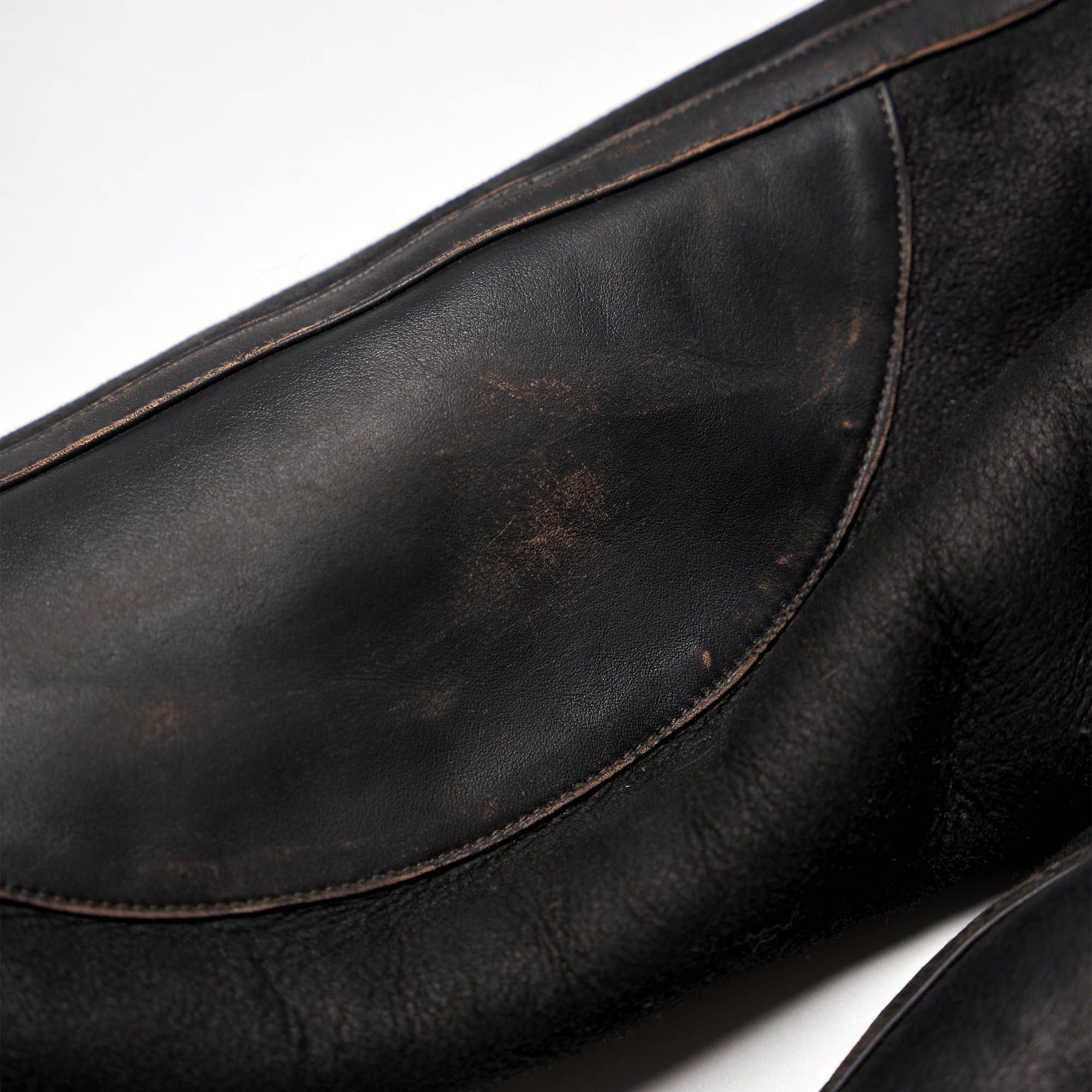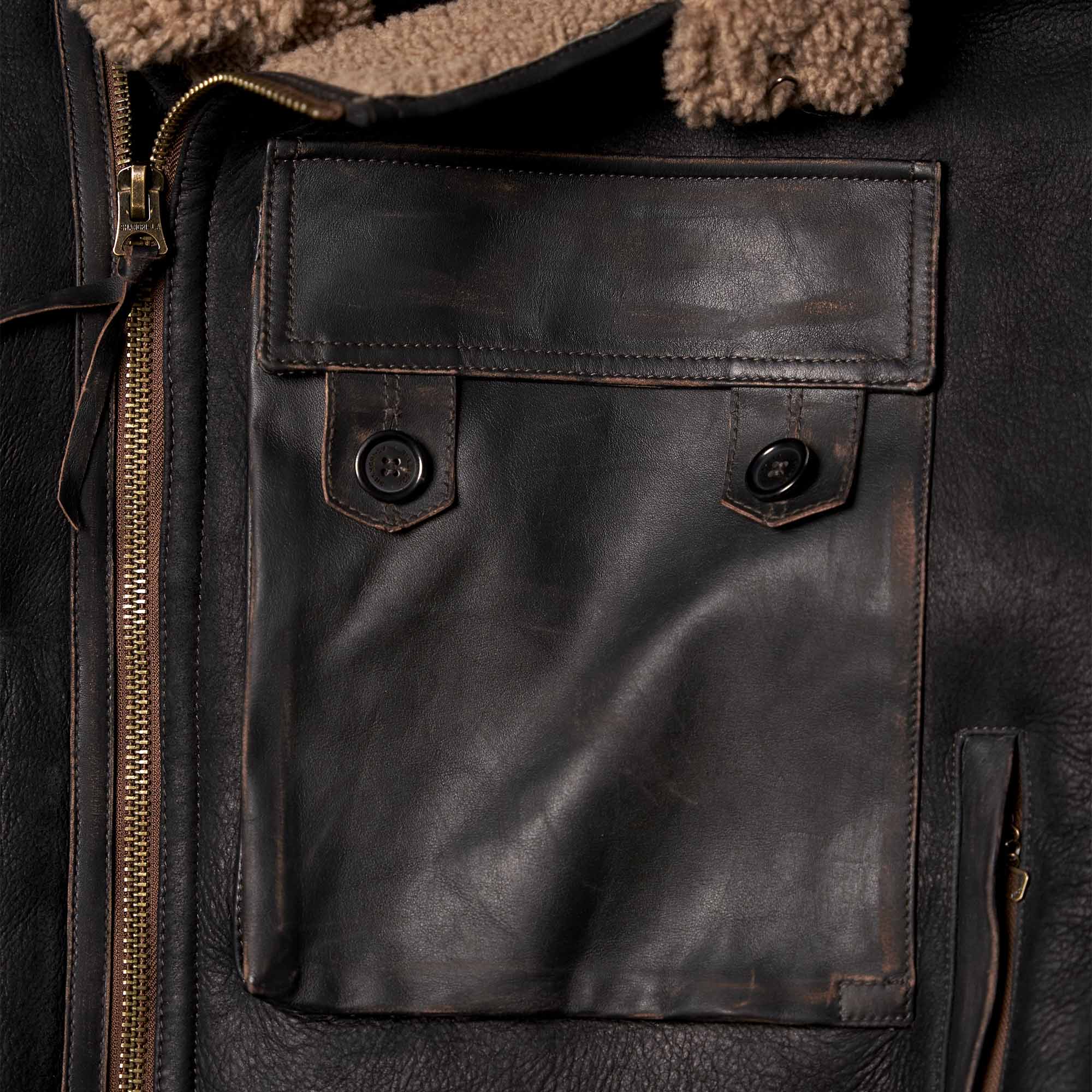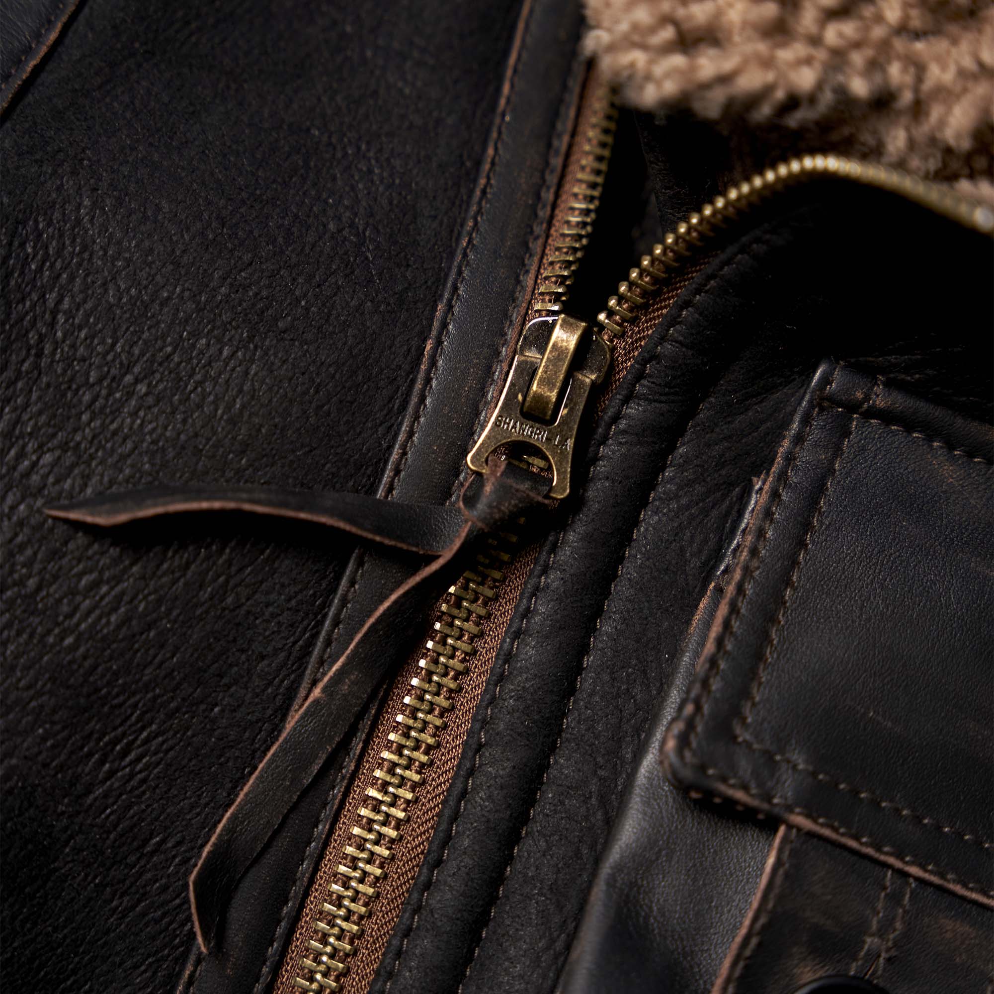The Full Grain Tea-Core Steerhide has been aged by hand, giving it a real antique look. This Leather will change color with the wear, developing a unique Patina on the jacket, as a personal journey. The Black Tea-core Leather will begin to reveal the natural color under-layer, showing signs of time when it’s exposed to the elements and daily use, showing awesome scratches and fades in a various shades of golden and brown tone.
