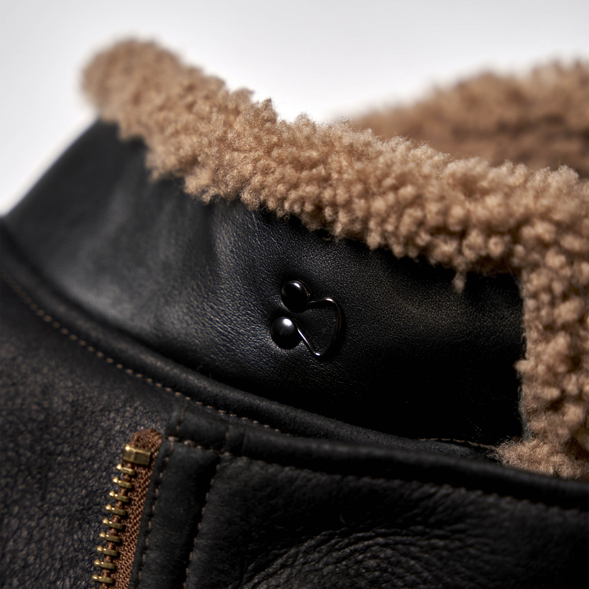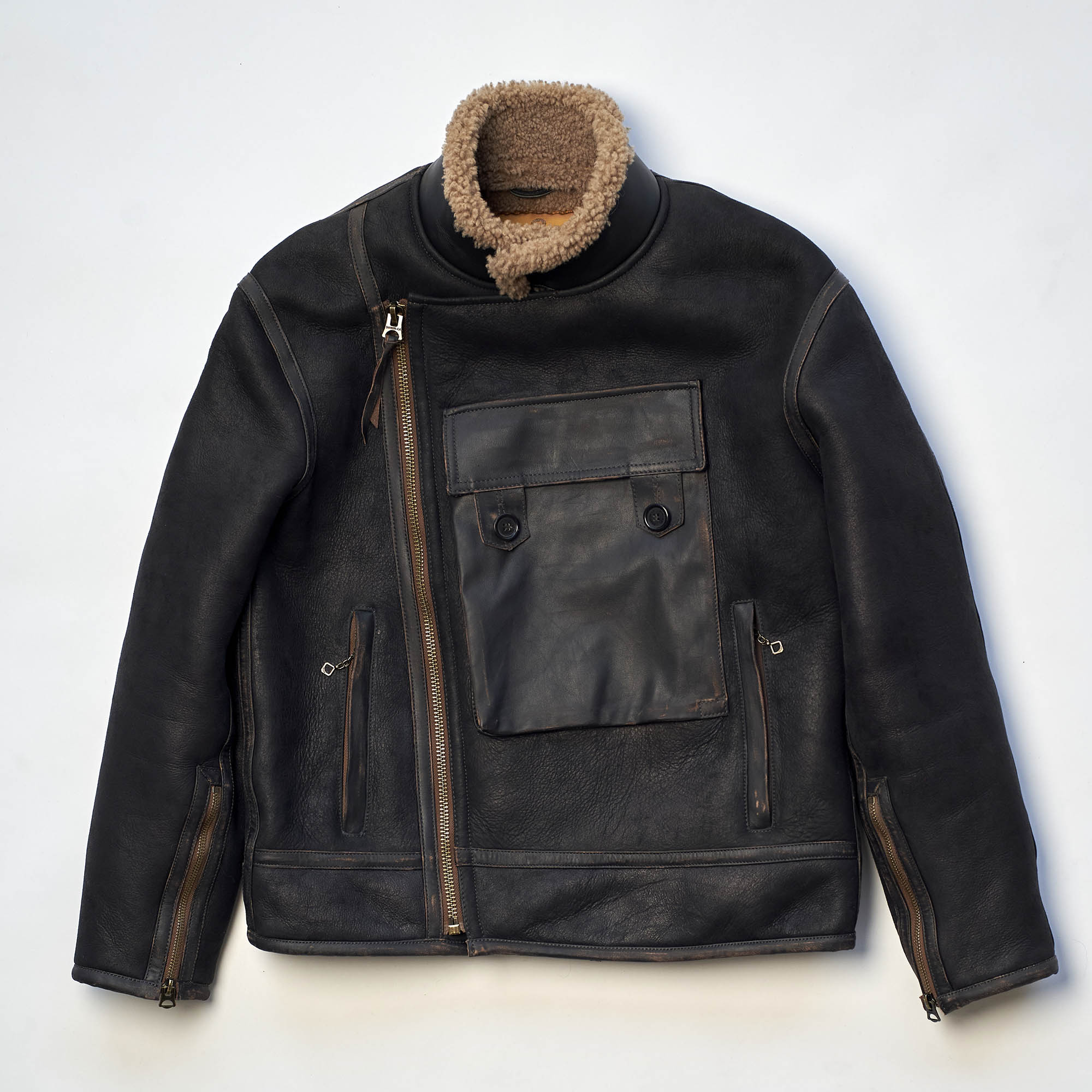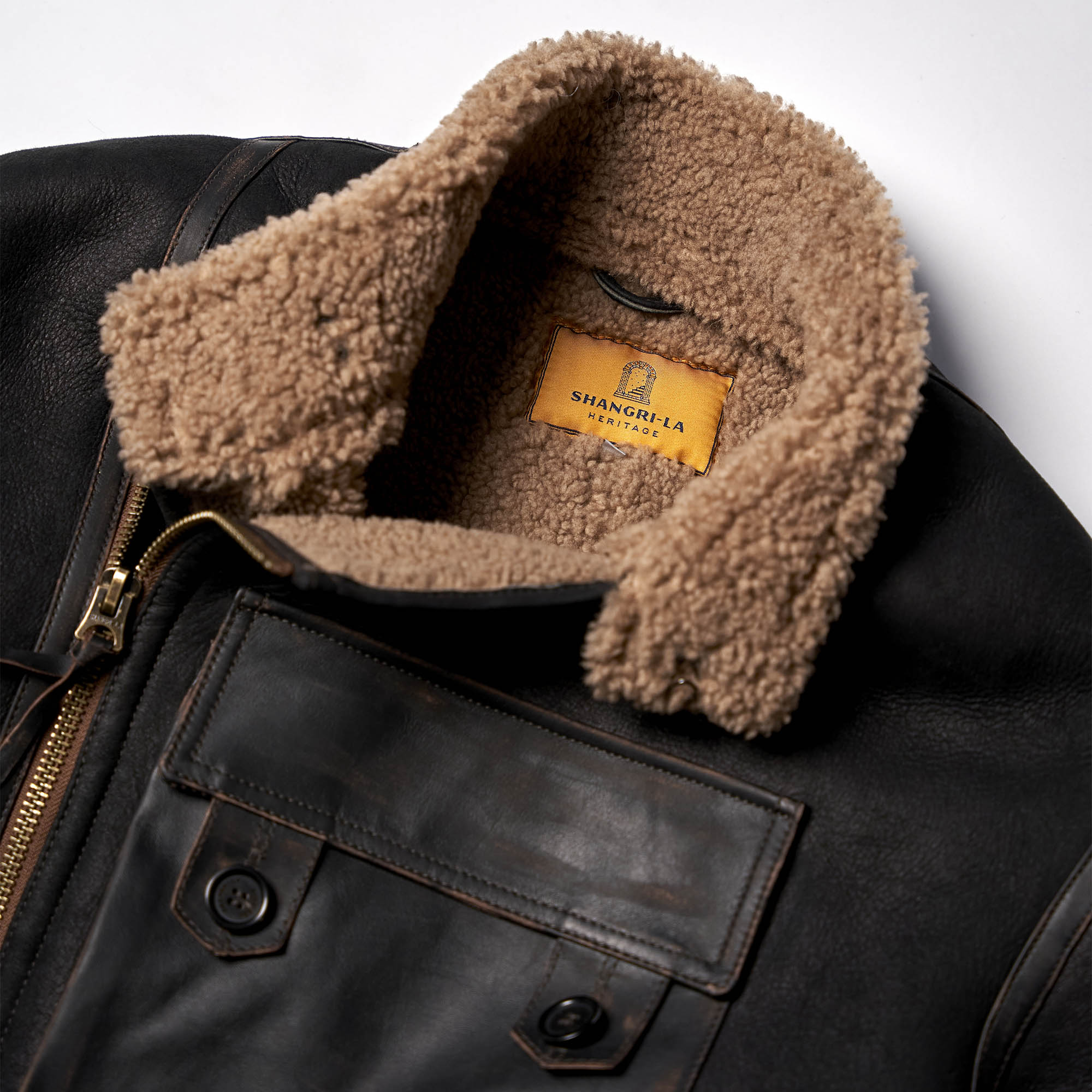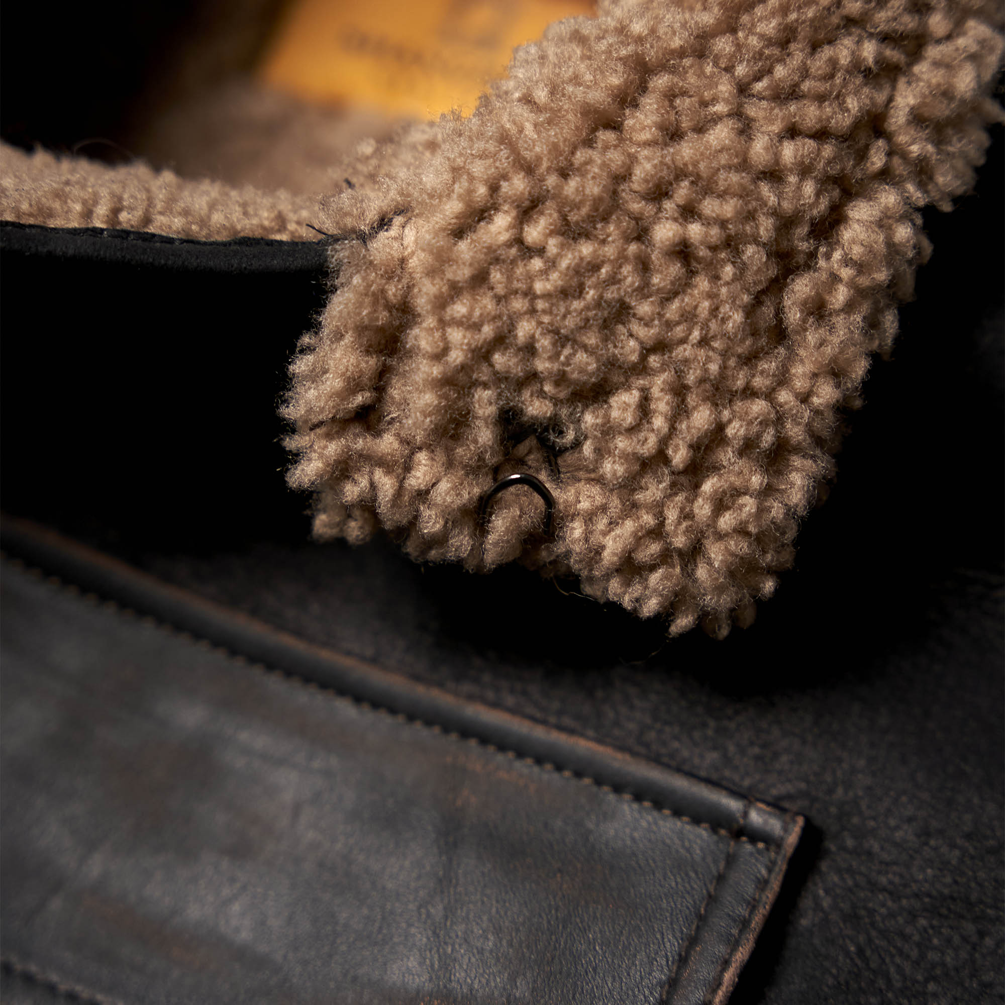 Inspired by early 1950s Swedish Army Motorcycle Jackets and revisited with a unique Italian touch, the “Swedish” Motorcycle Shearling Jacket represents an authentic garment made of Italian Shearling Sheepskin reinforced with leather trimmings in Full Grain Tea-Core Steerhide from Vicenza (Italy).