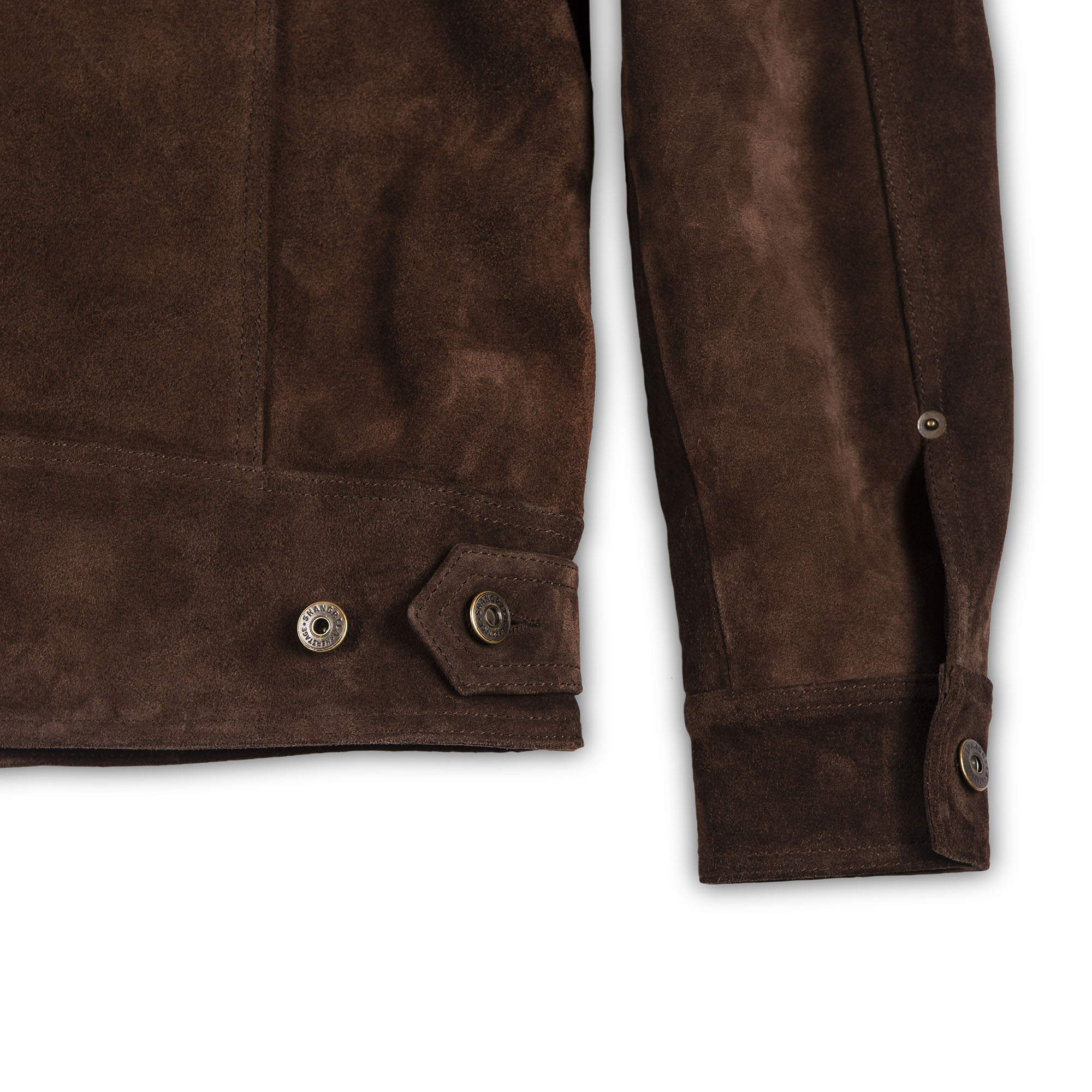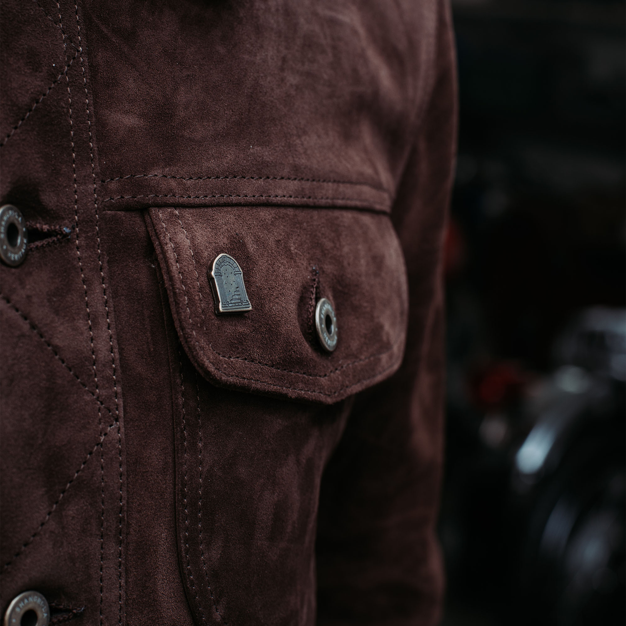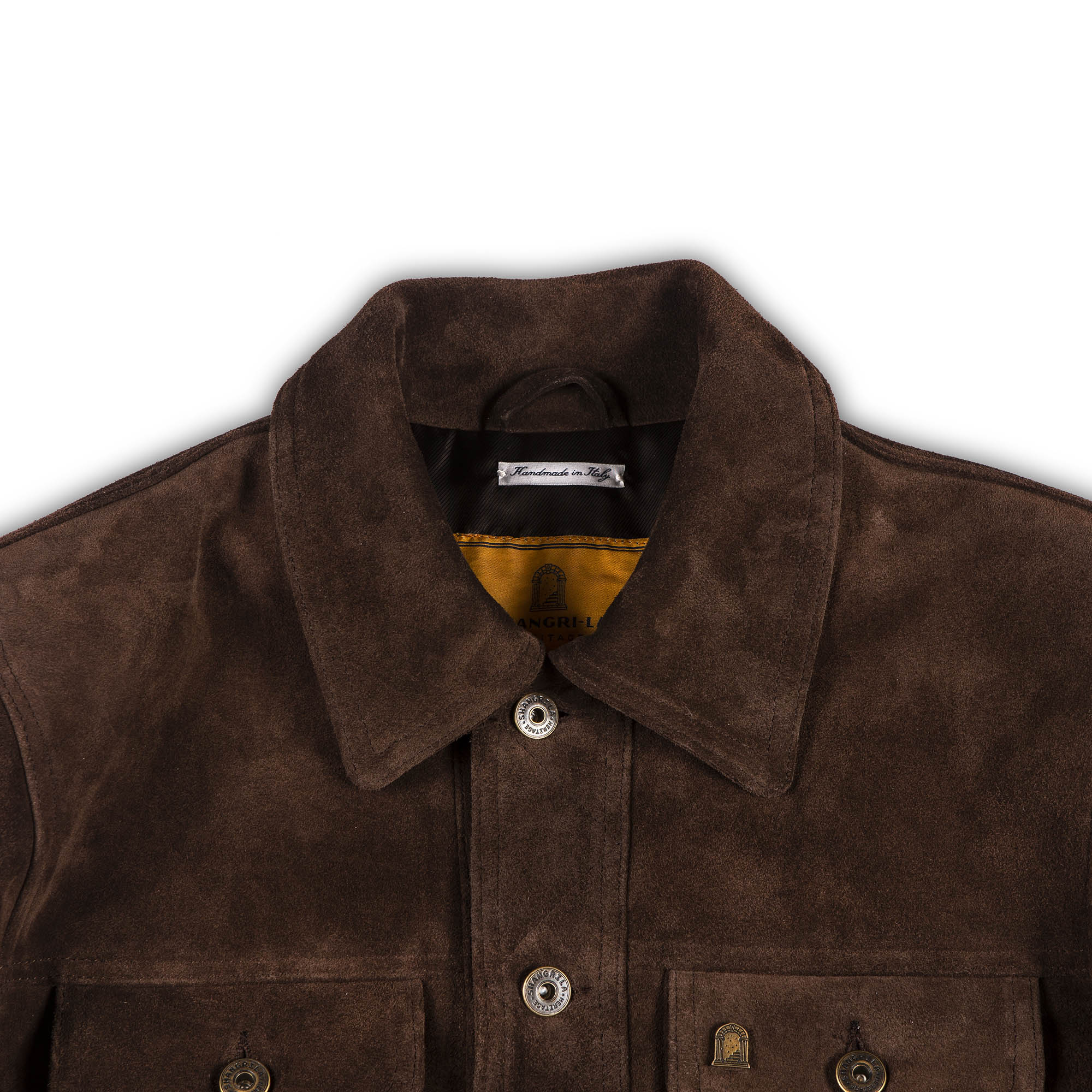 Inspired by late 60s Western jackets and revisited with a unique Italian touch, the “Terracotta” represents an authentic garment made of Calfskin suede from Tuscany (Italy) and “Espresso Coffee” color viscose lining.