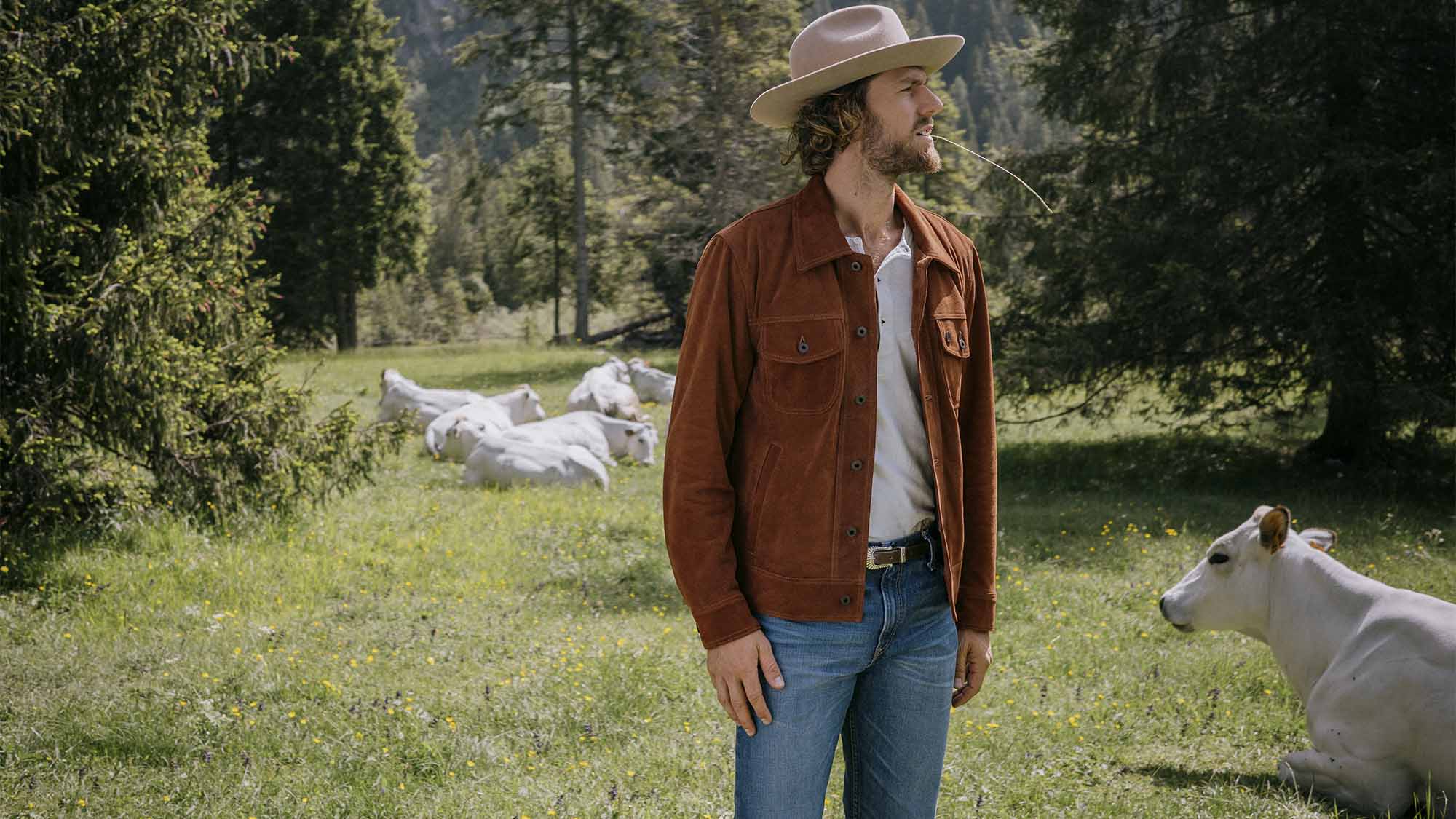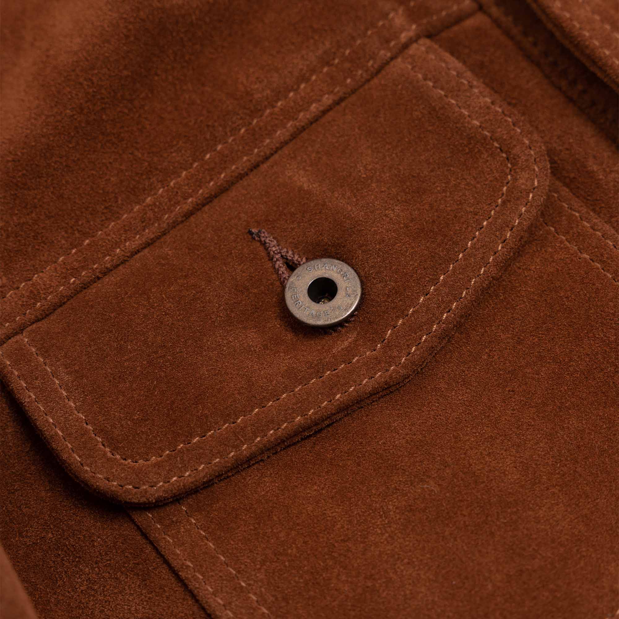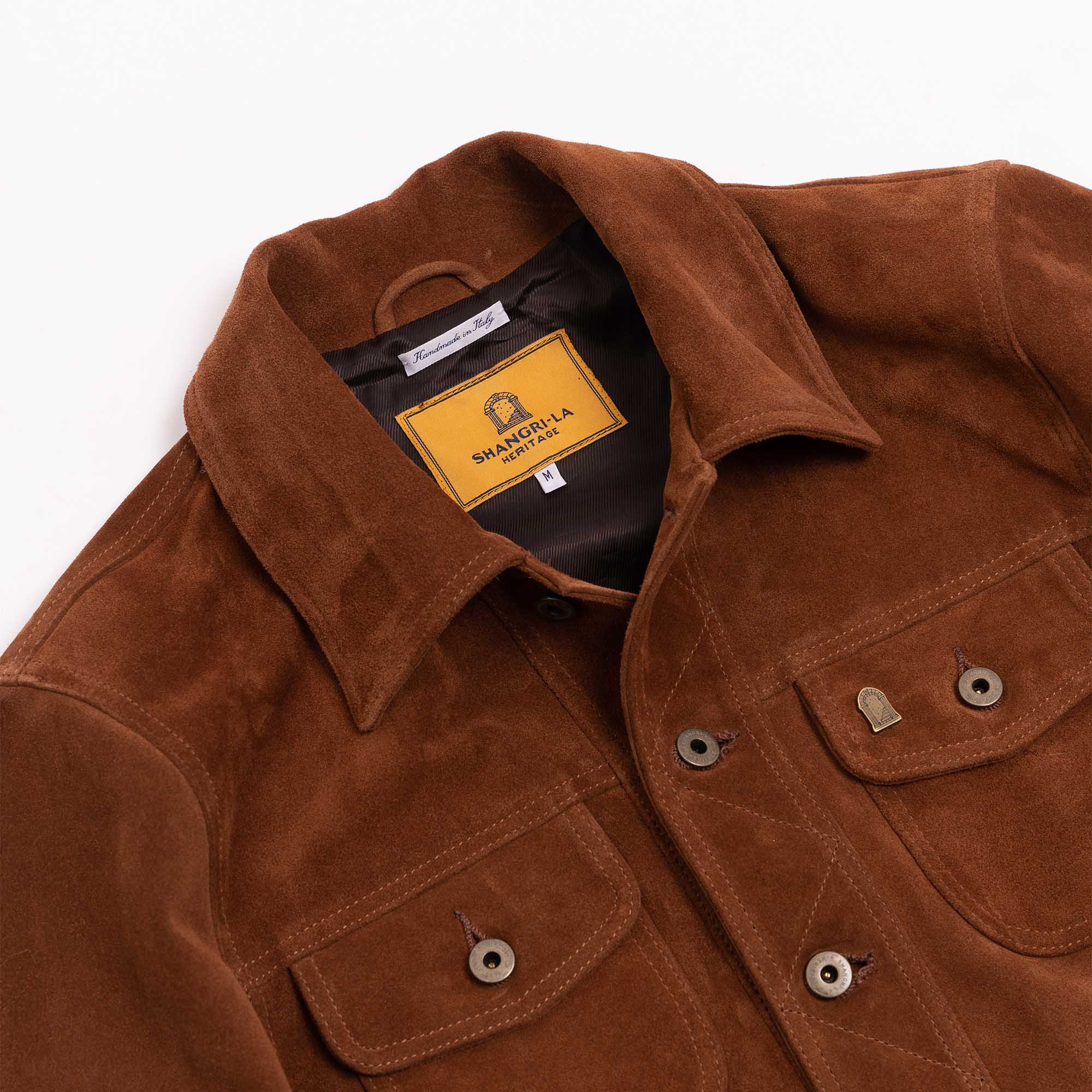 Inspired by late 60s Western jackets and revisited with a unique Italian touch, the “Terracotta” represents an authentic garment made of Calfskin suede from Tuscany (Italy) and “Espresso Coffee” color viscose lining.