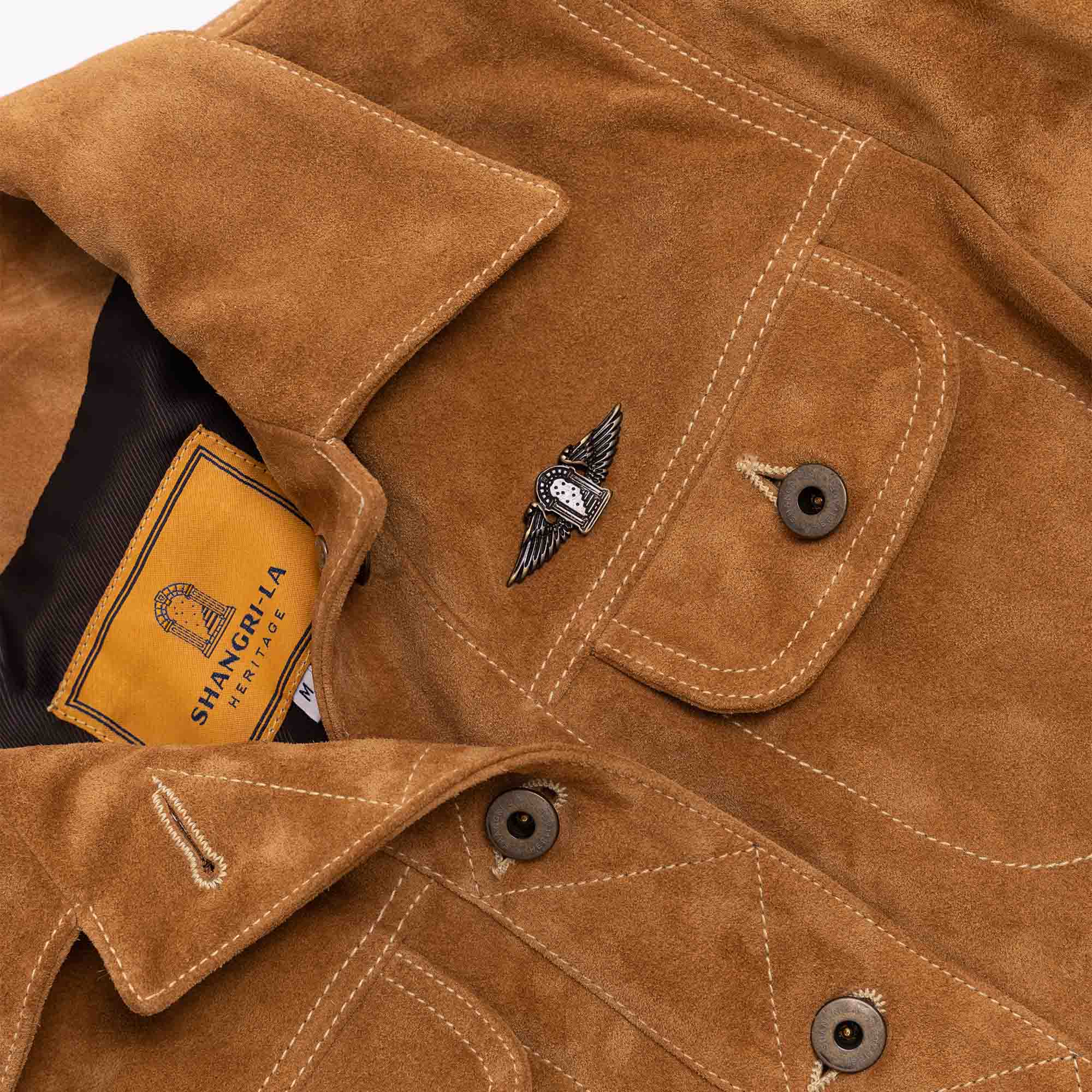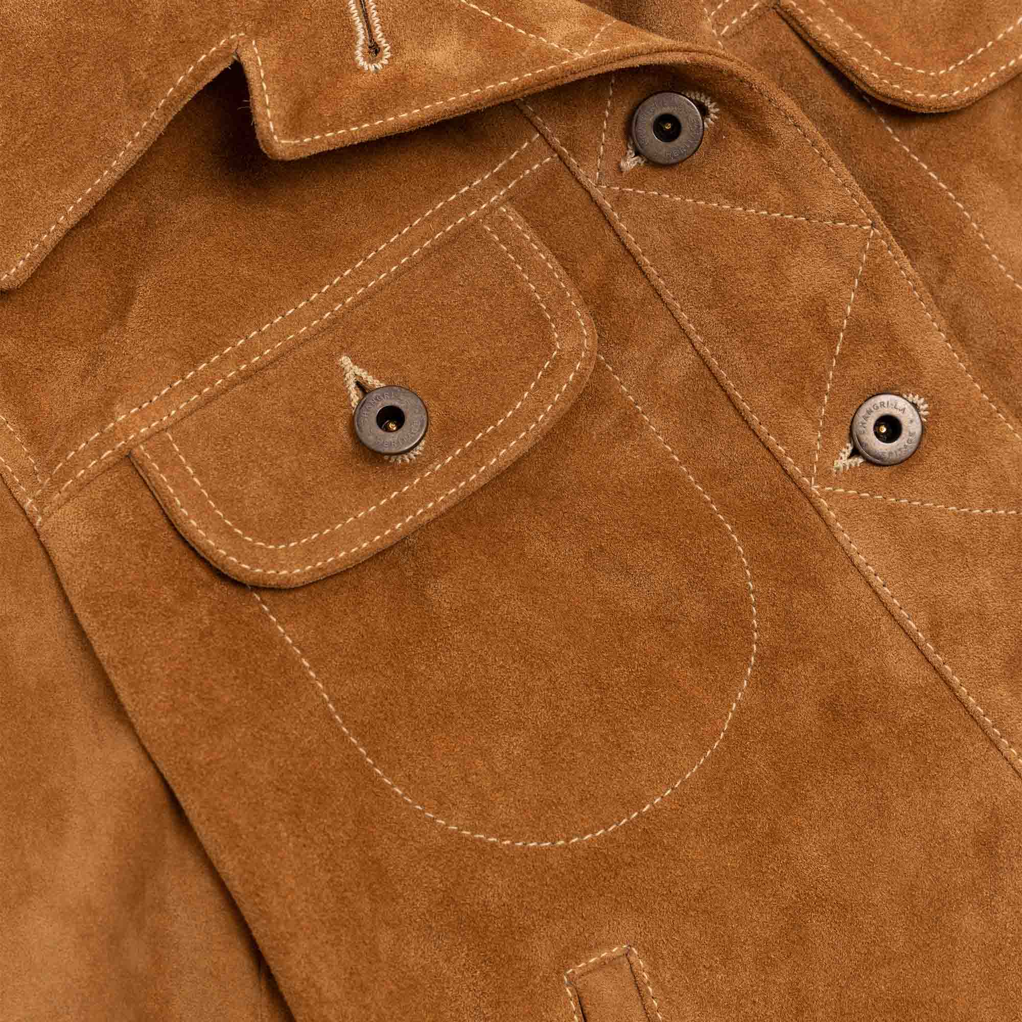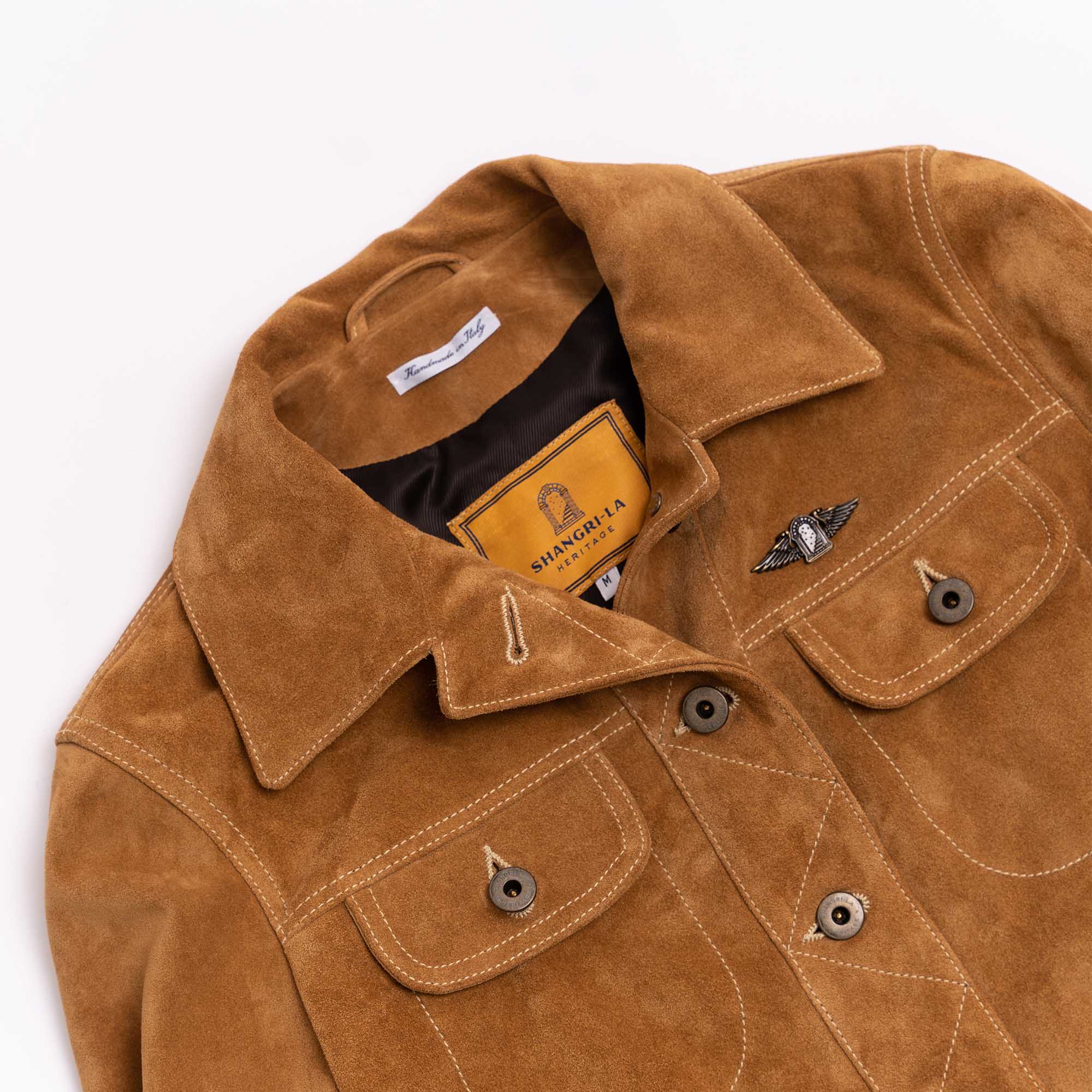 Inspired by late 60s Western jackets and revisited with a unique Italian touch, the “Terracotta” represents an authentic garment made of Calfskin suede from Tuscany (Italy) and “Espresso Coffee” color viscose lining.