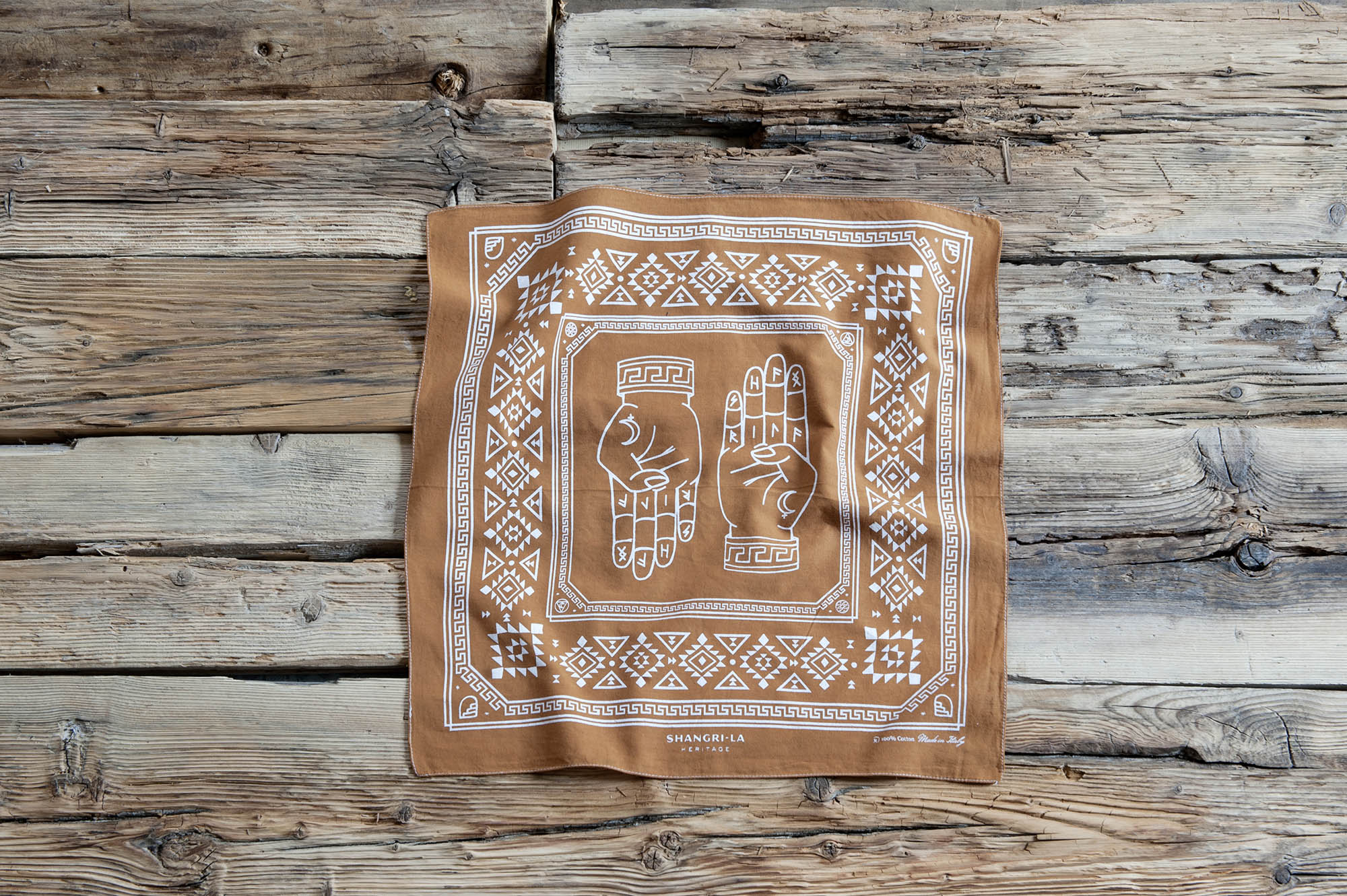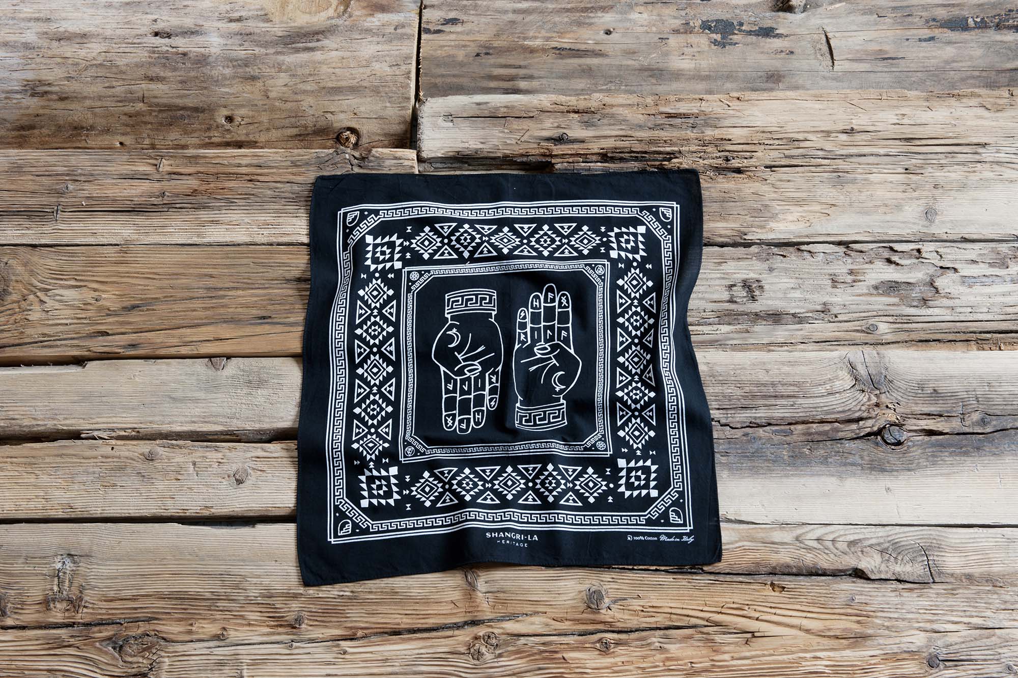 Inspired by the original Navajo designs from American Indians with a Mystic Hand on the center, this authentic Bandana shines bright with a lot of deep meanings.