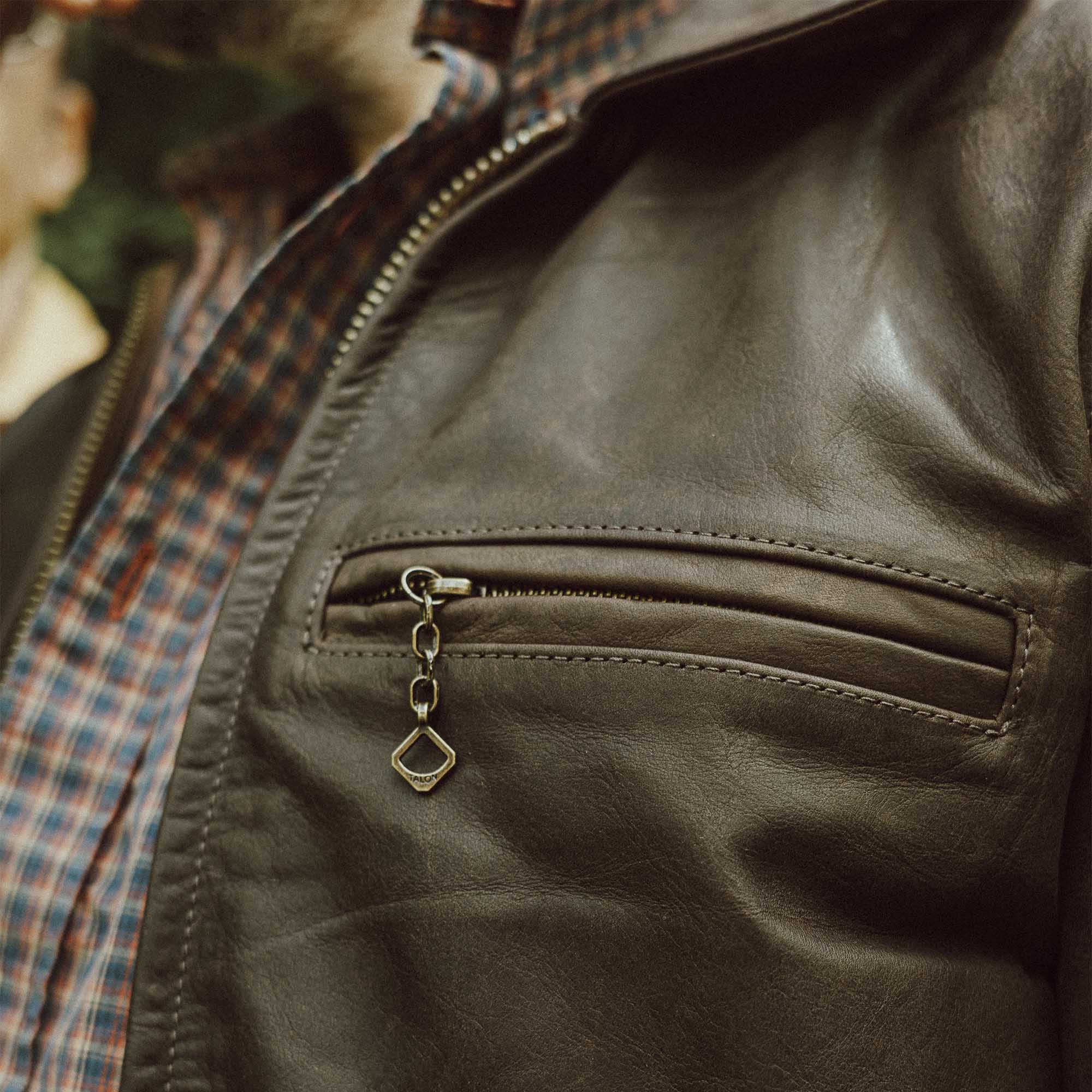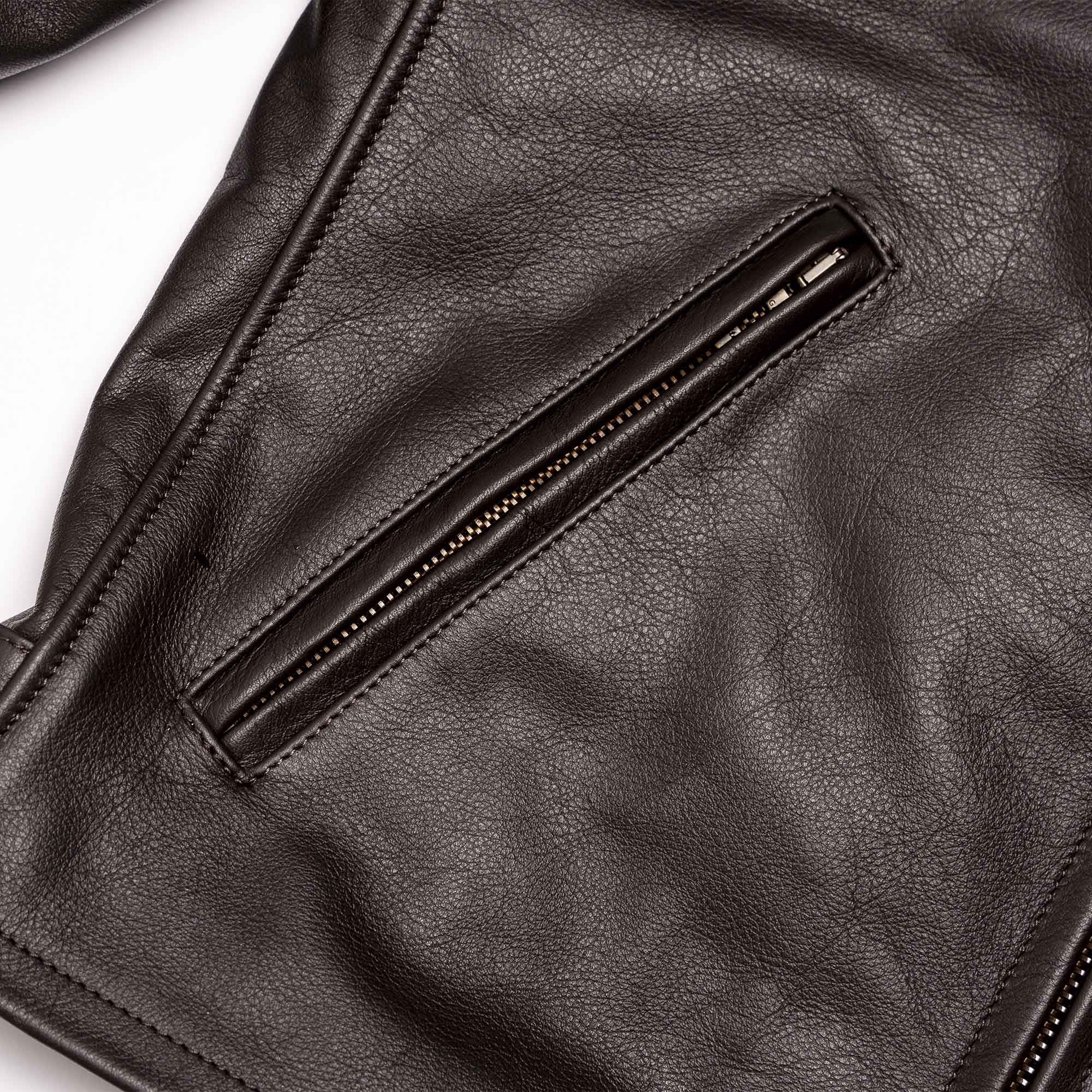 The Full Grain Steerhide from Vicenza (Italy) is a high quality steerhide that ages beautifully, developing fantastic fades that reveal unique undertones. Thickness is around 1,1mm, making the Varenne a durable and high-end premium jacket.