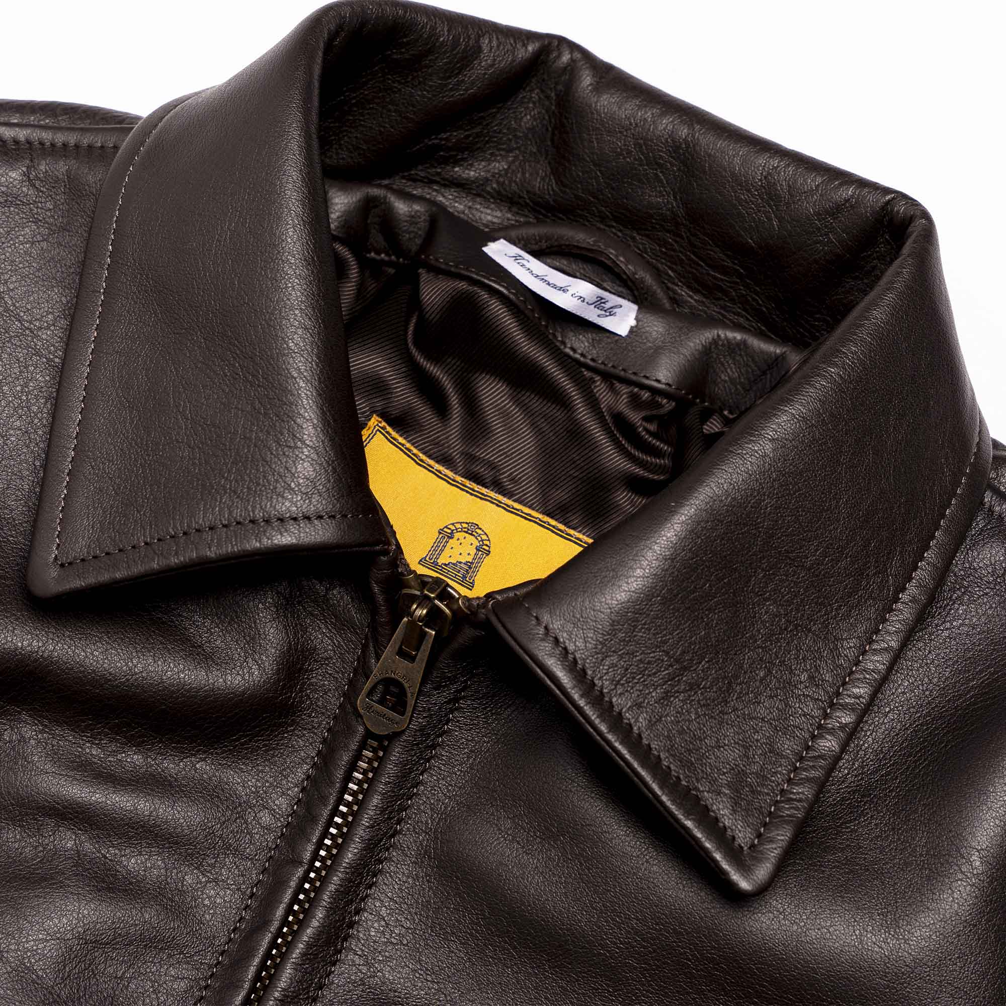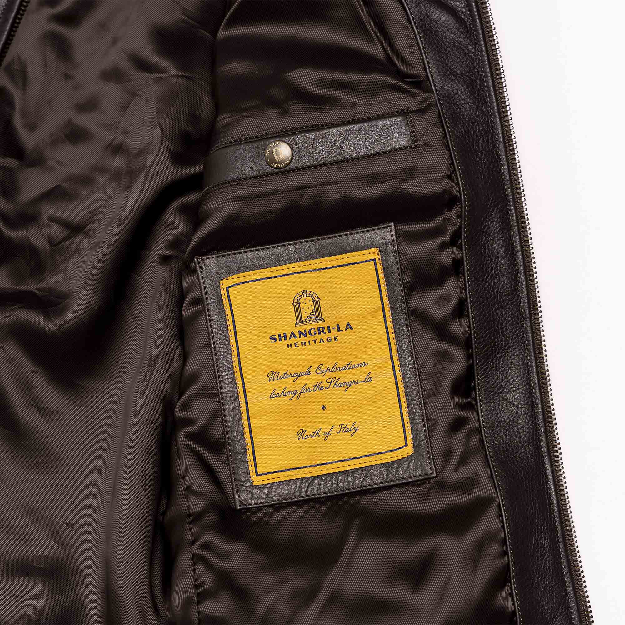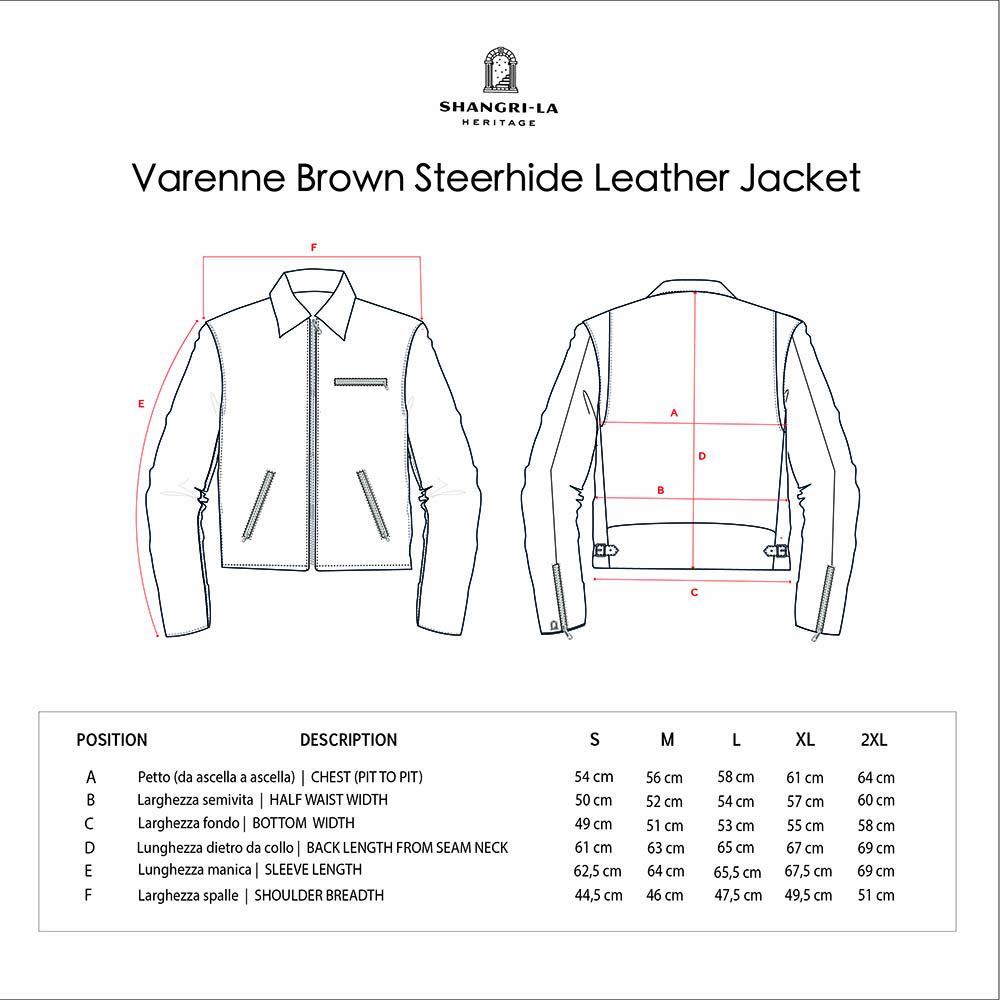 Inspired by late 40s Sport jackets and revisited with a unique Italian touch, the “Varenne” represents an authentic garment made of chrome tanned, drum dyed, full grain Steerhide from Vicenza (Italy) and “Espresso Coffee” color viscose lining.