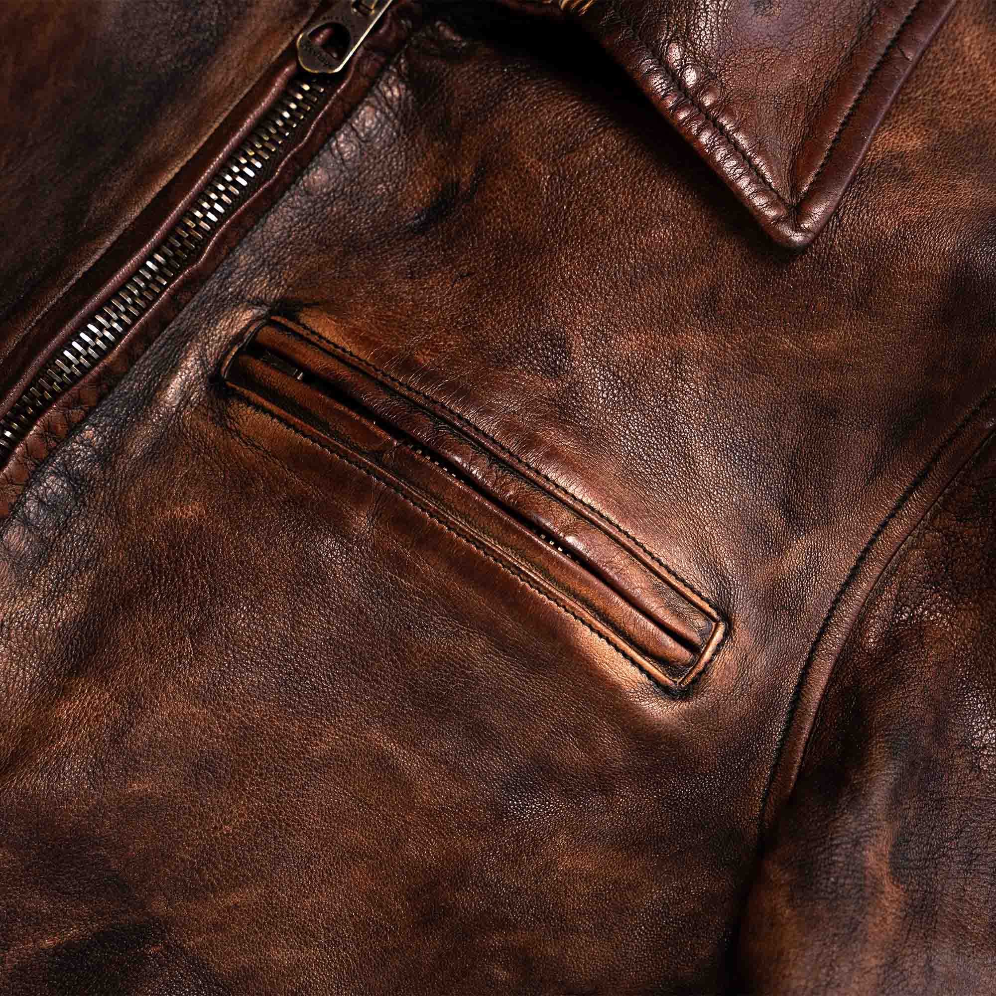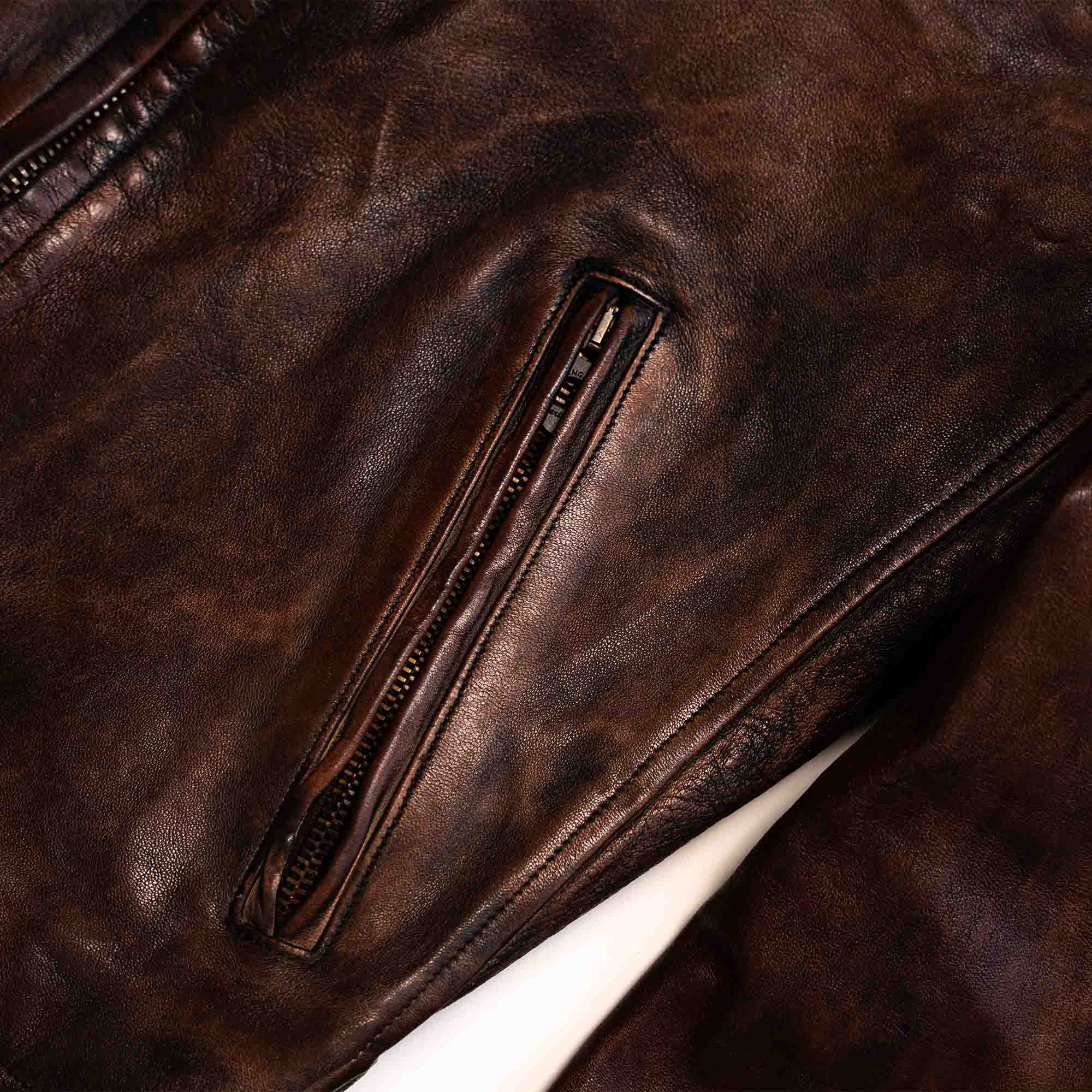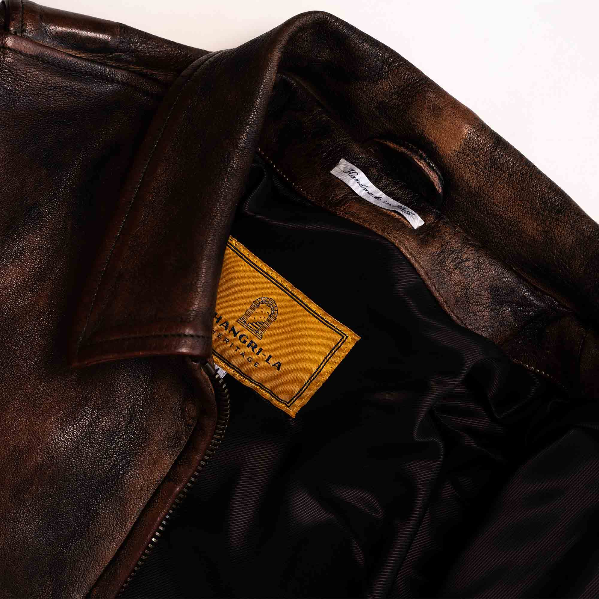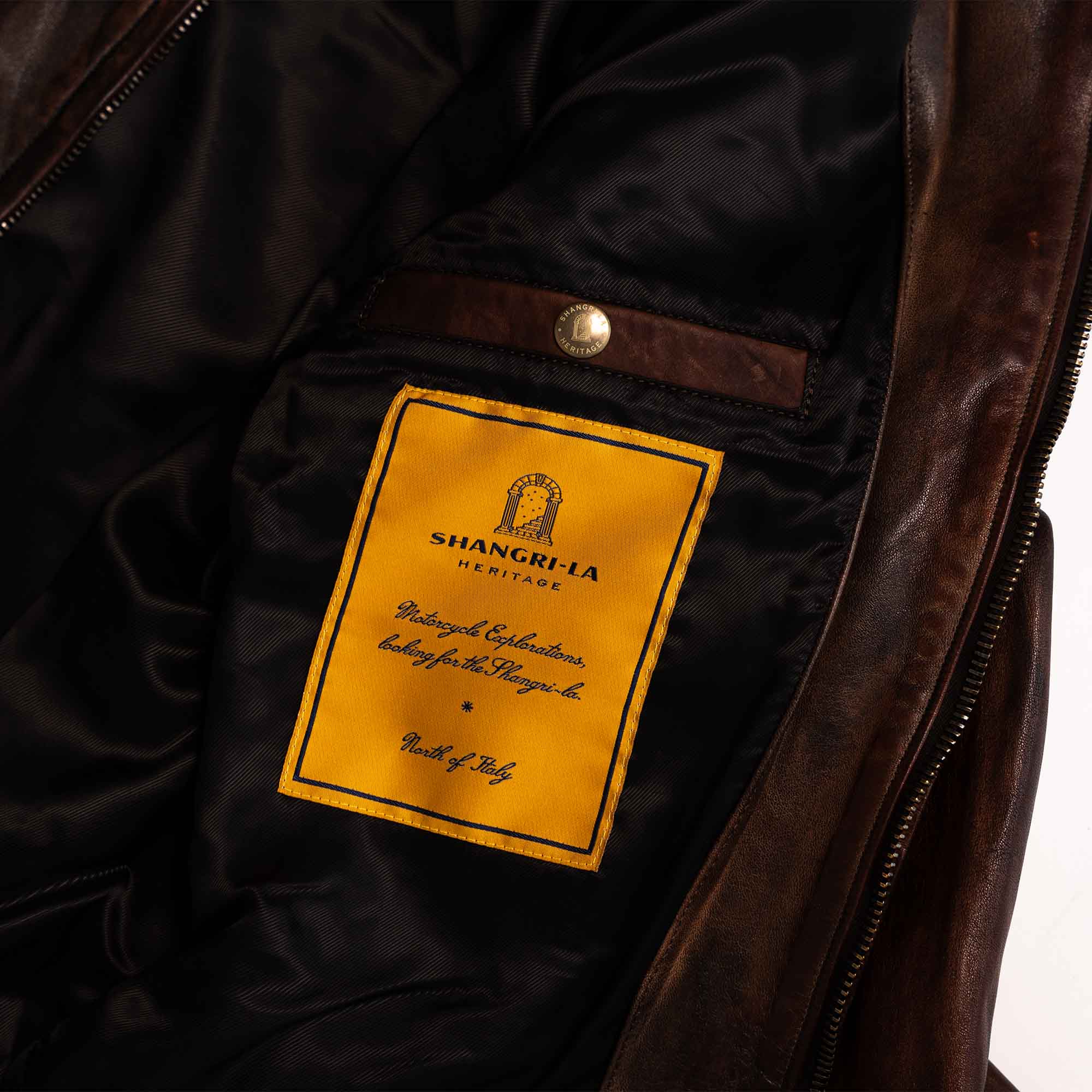Inspired by late 40s Sport jackets and revisited with a unique Italian touch, the “Varenne” Bruciato Leather Jacket represents an authentic garment made of vegetable tanned full grain Lambskin from Tuscany (Italy) with “Bruciato” Treatment, and “Espresso Coffee” color viscose lining.