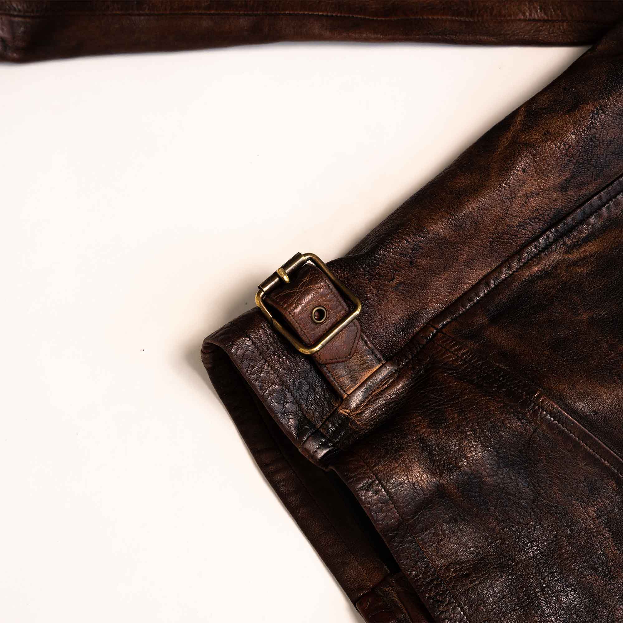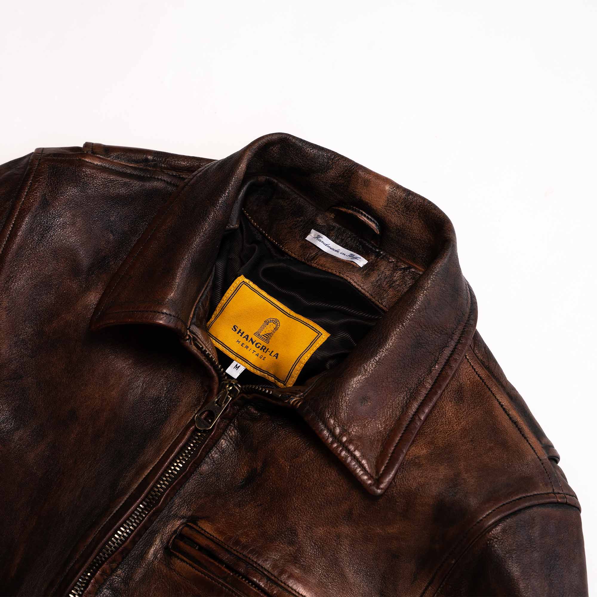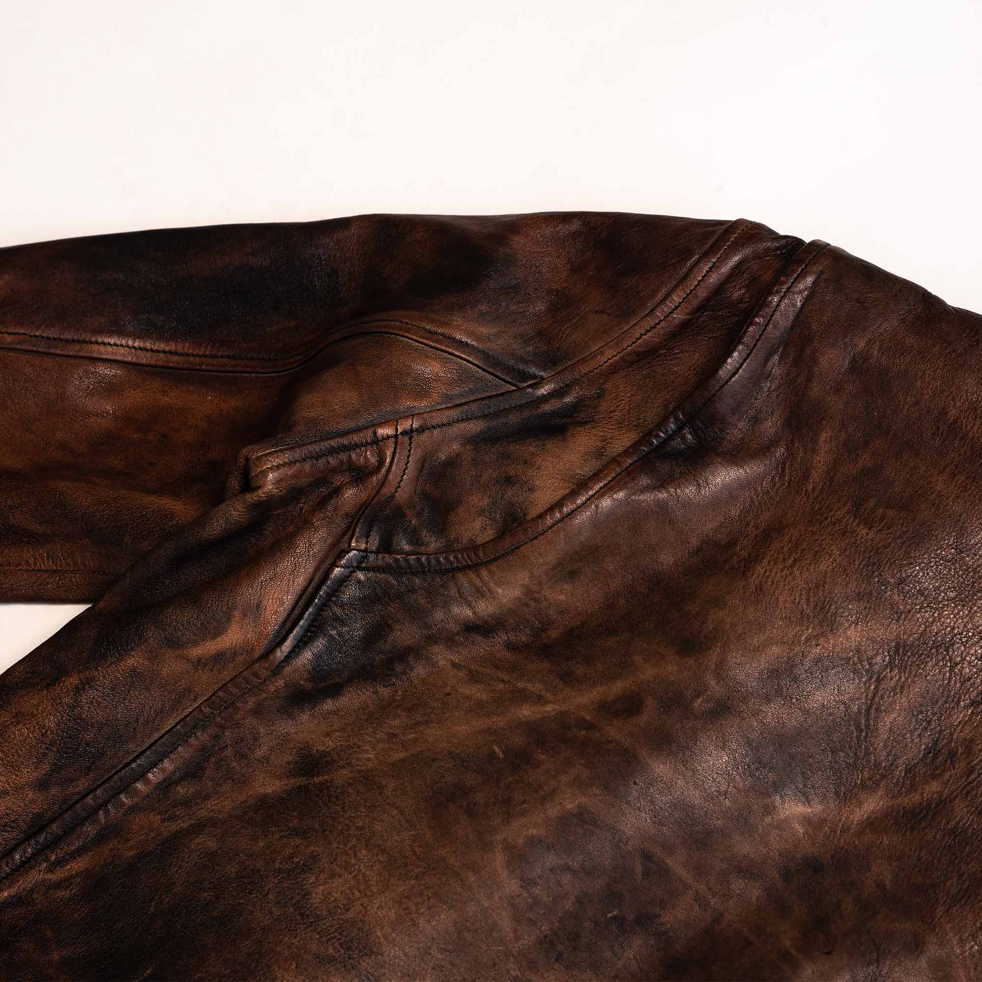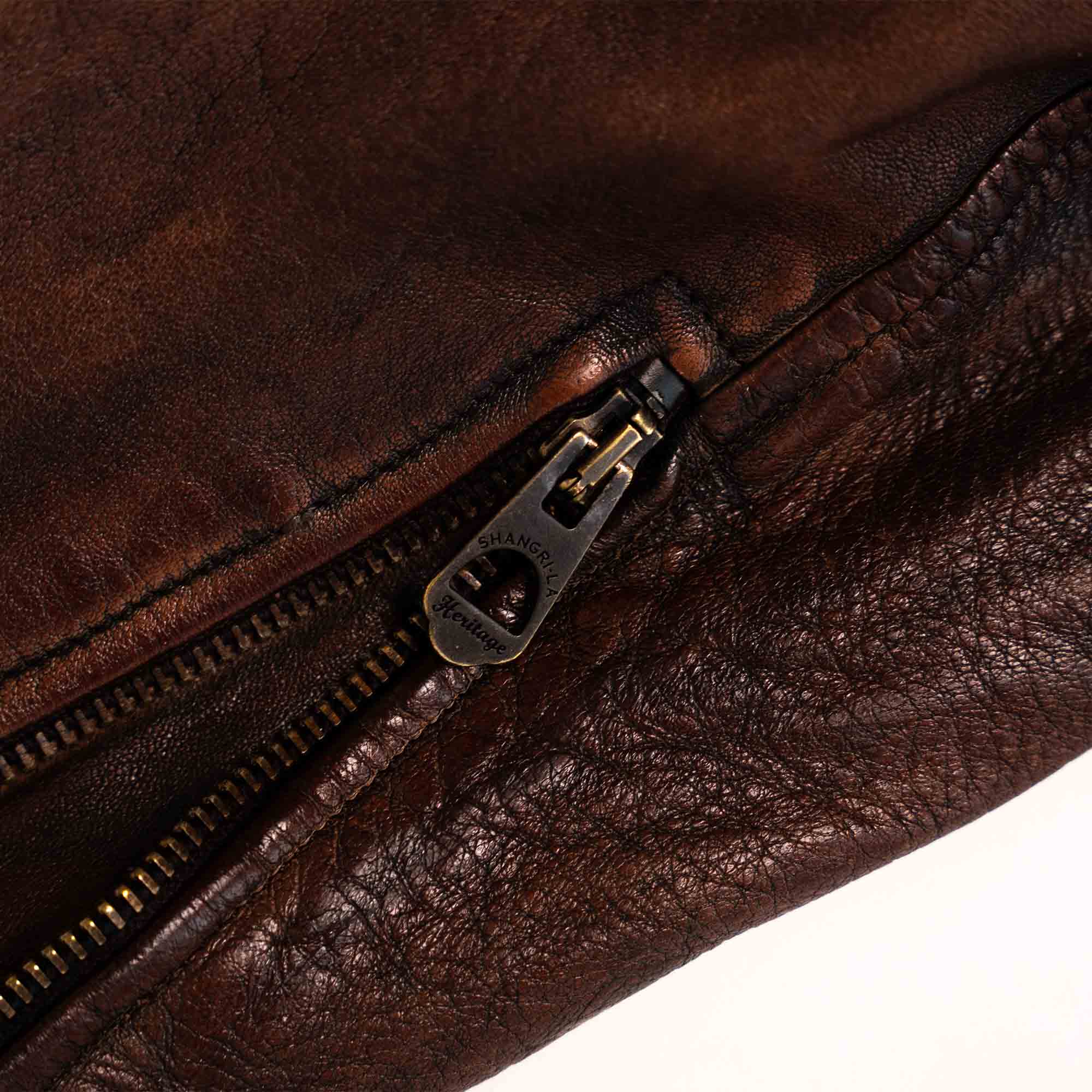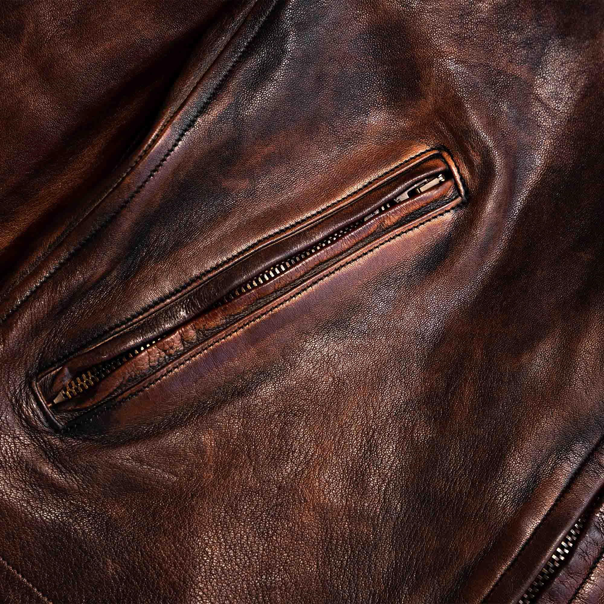 Inspired by late 40s Sport jackets and revisited with a unique Italian touch, the “Varenne” Bruciato Leather Jacket represents an authentic garment made of vegetable tanned full grain Lambskin from Tuscany (Italy) with “Bruciato” Treatment, and “Espresso Coffee” color viscose lining.