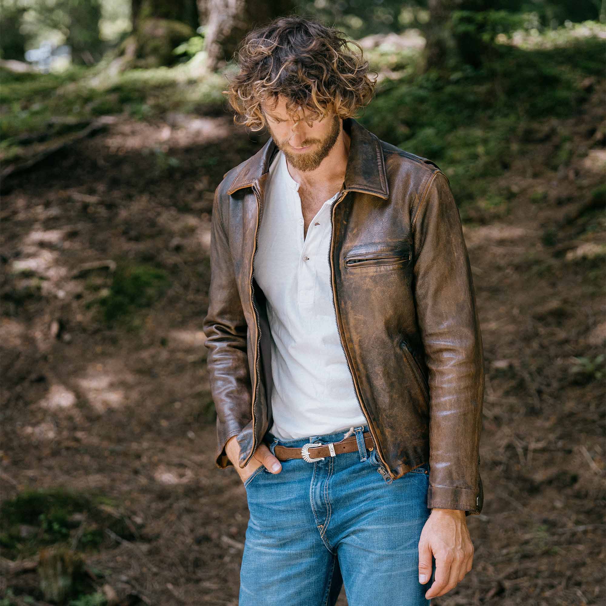 Inspired by late 40s Sport jackets and revisited with a unique Italian touch, the “Varenne” Deserto Leather Jacket represents an authentic garment made of vegetable tanned full grain Lambskin from Tuscany (Italy) with “Deserto” Treatment, and “Espresso Coffee” color viscose lining.