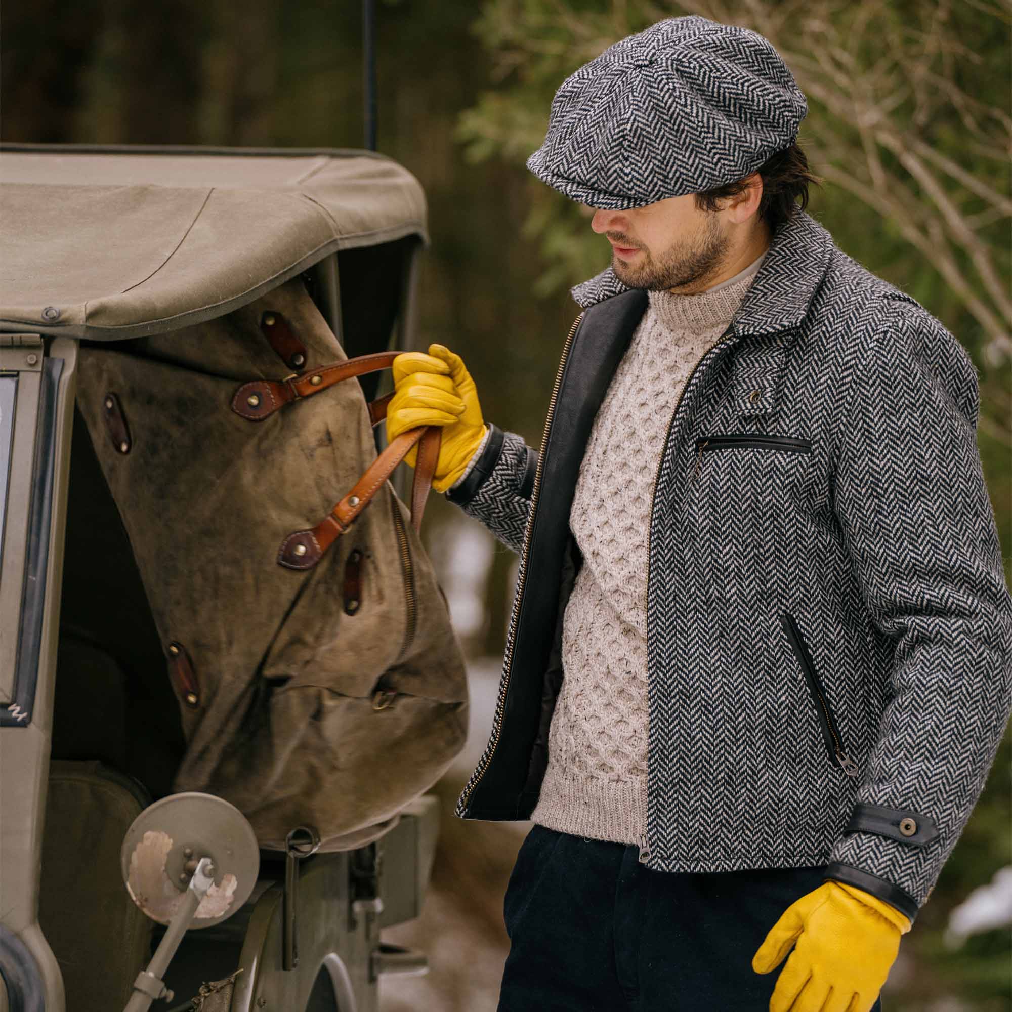 Inspired by late 40s Sport jackets and revisited with a unique Italian touch, the “Varenne” Herringbone Wool Jacket represents an authentic garment made of Premium Herringbone Wool 21 Oz from Tuscany in Grey color, with leather trimmings made with vegetable tanned Lambskin from Tuscany (Italy).