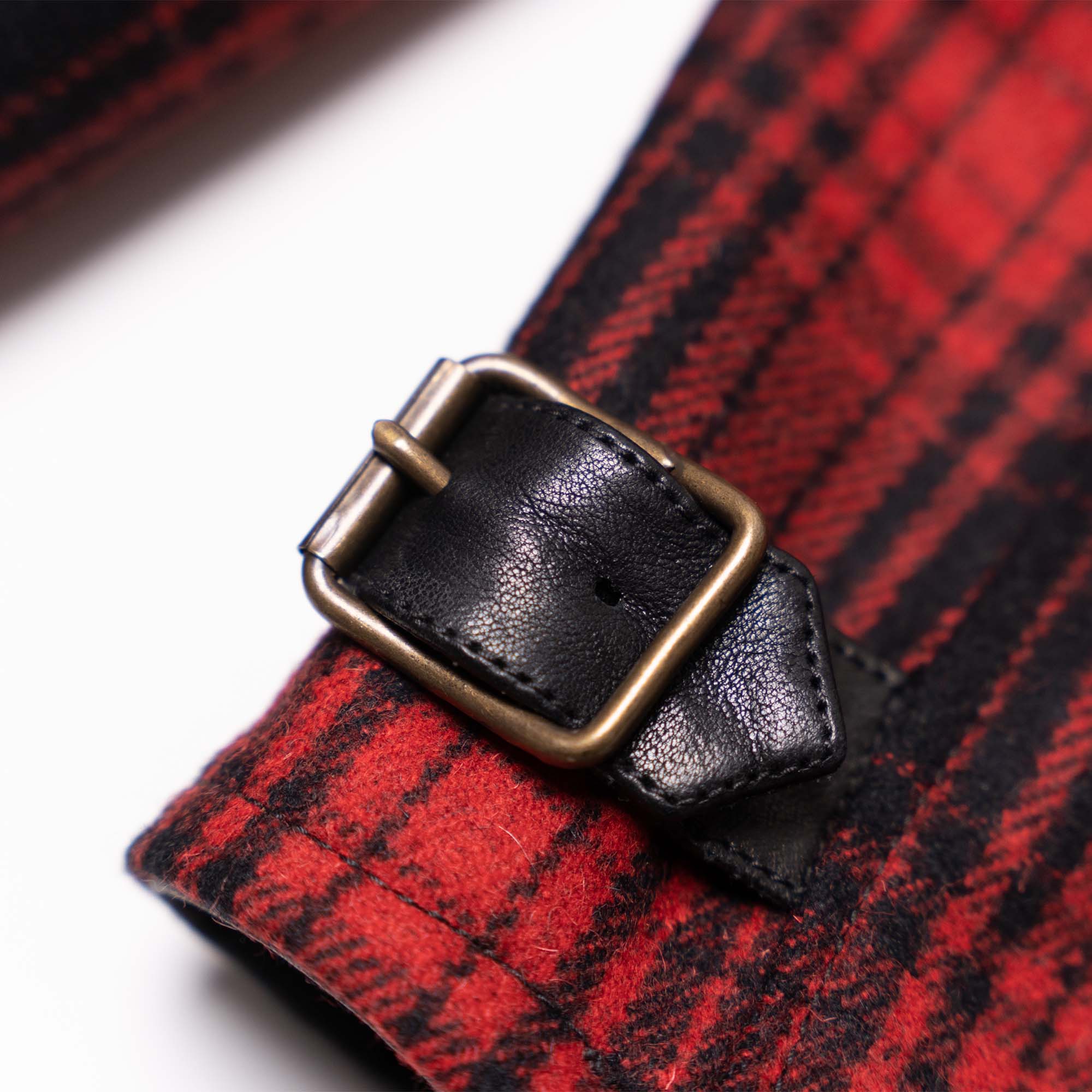 Inspired by late 40s Sport jackets and revisited with a unique Italian touch, the “Varenne” Tartan Wool Jacket represents an authentic garment made of Premium Tartan Wool 29 Oz from Tuscany in Red color, with leather trimmings made with vegetable tanned Lambskin from Tuscany (Italy).
