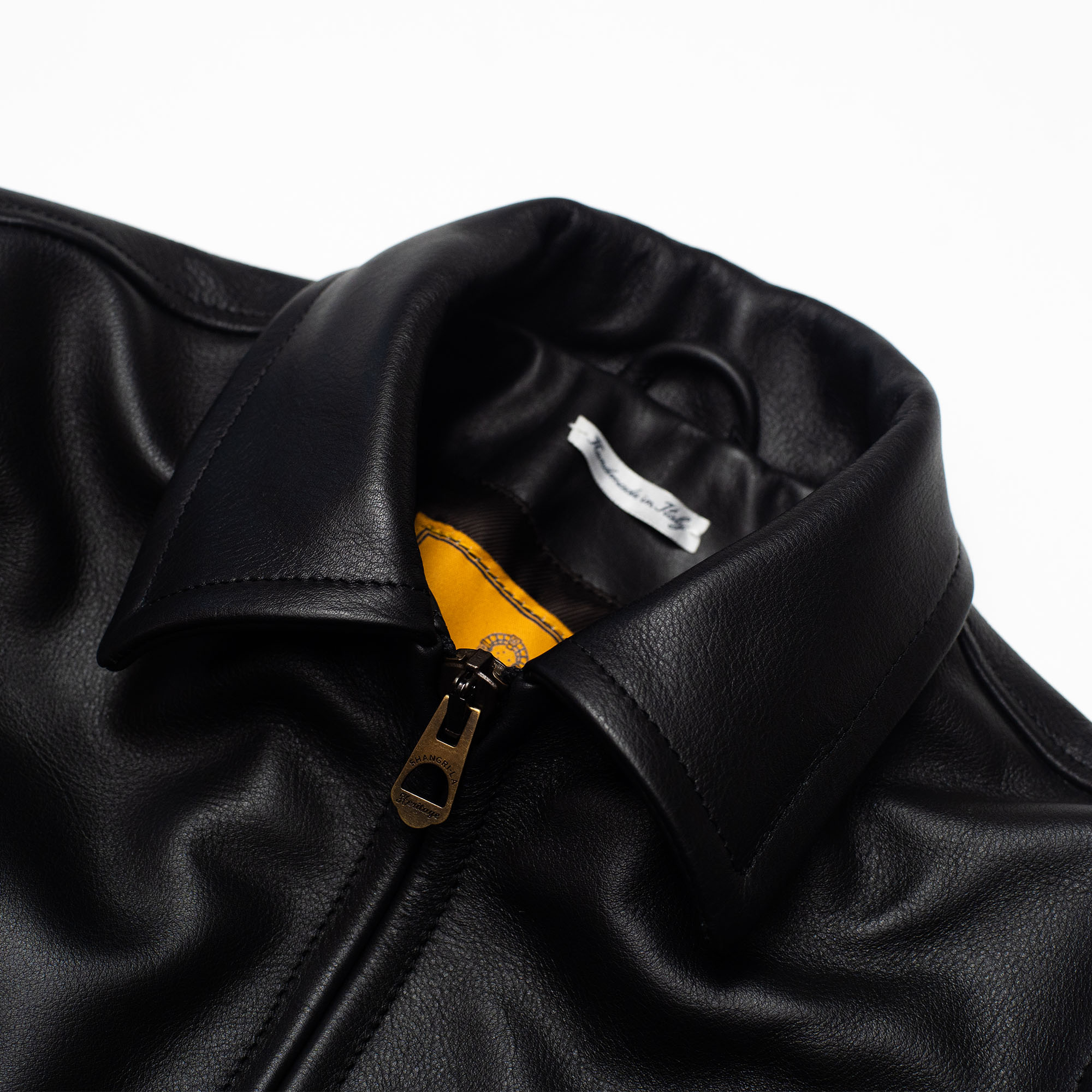 Inspired by late 40s Sport jackets and revisited with a unique Italian touch, the “Varenne” represents an authentic garment made of chrome tanned, drum dyed, full grain Steerhide from Vicenza (Italy) and “Espresso Coffee” color viscose lining.