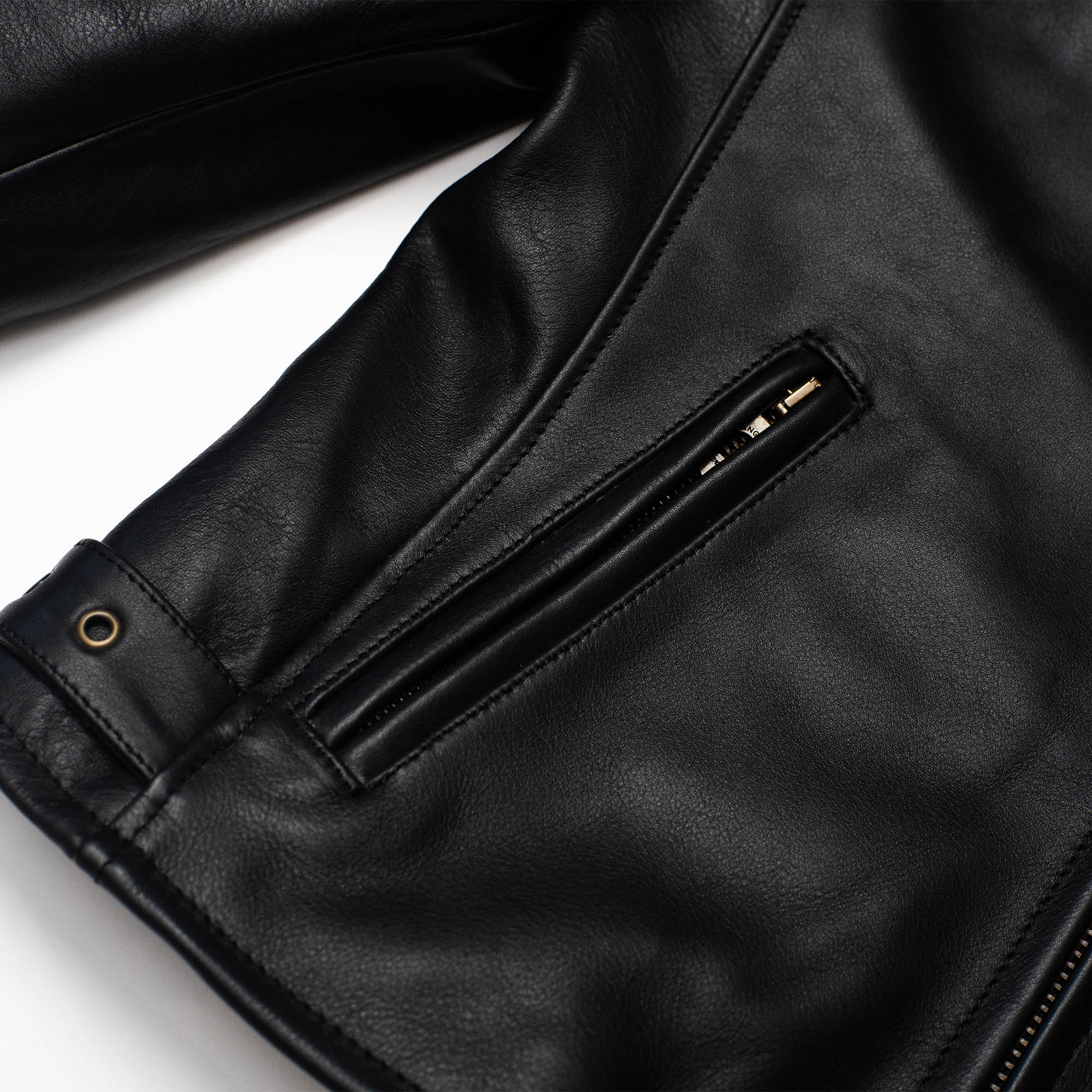 The Full Grain Steerhide from Vicenza (Italy) is a high quality steerhide that ages beautifully, developing fantastic fades that reveal unique undertones. Thickness is around 1,1mm, making the Varenne a durable and high-end premium jacket.