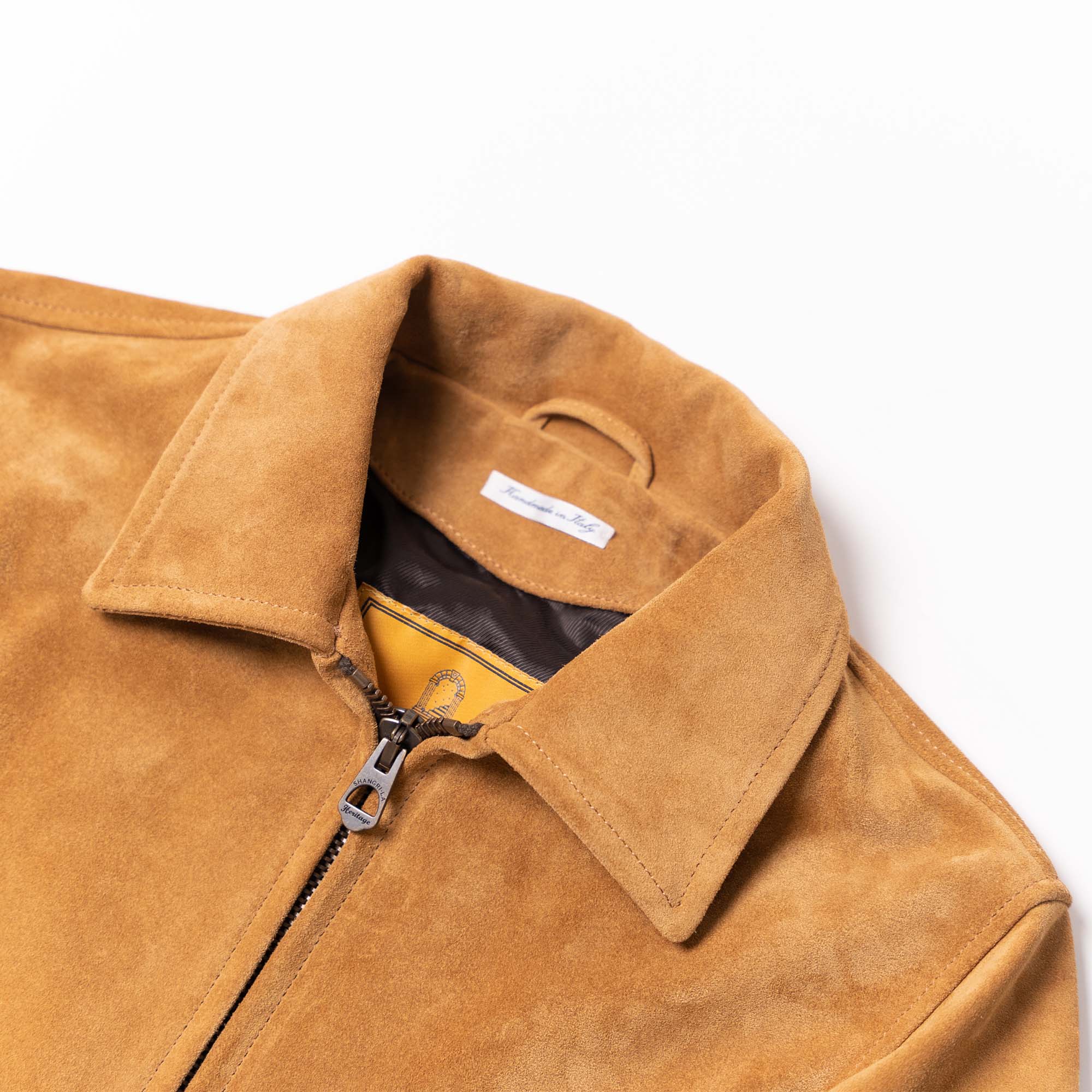 Inspired by late 40s Sport jackets and revisited with a unique Italian touch, the “Varenne” represents an authentic garment made of Calfskin suede from Tuscany (Italy) and “Espresso Coffee” color viscose lining.
