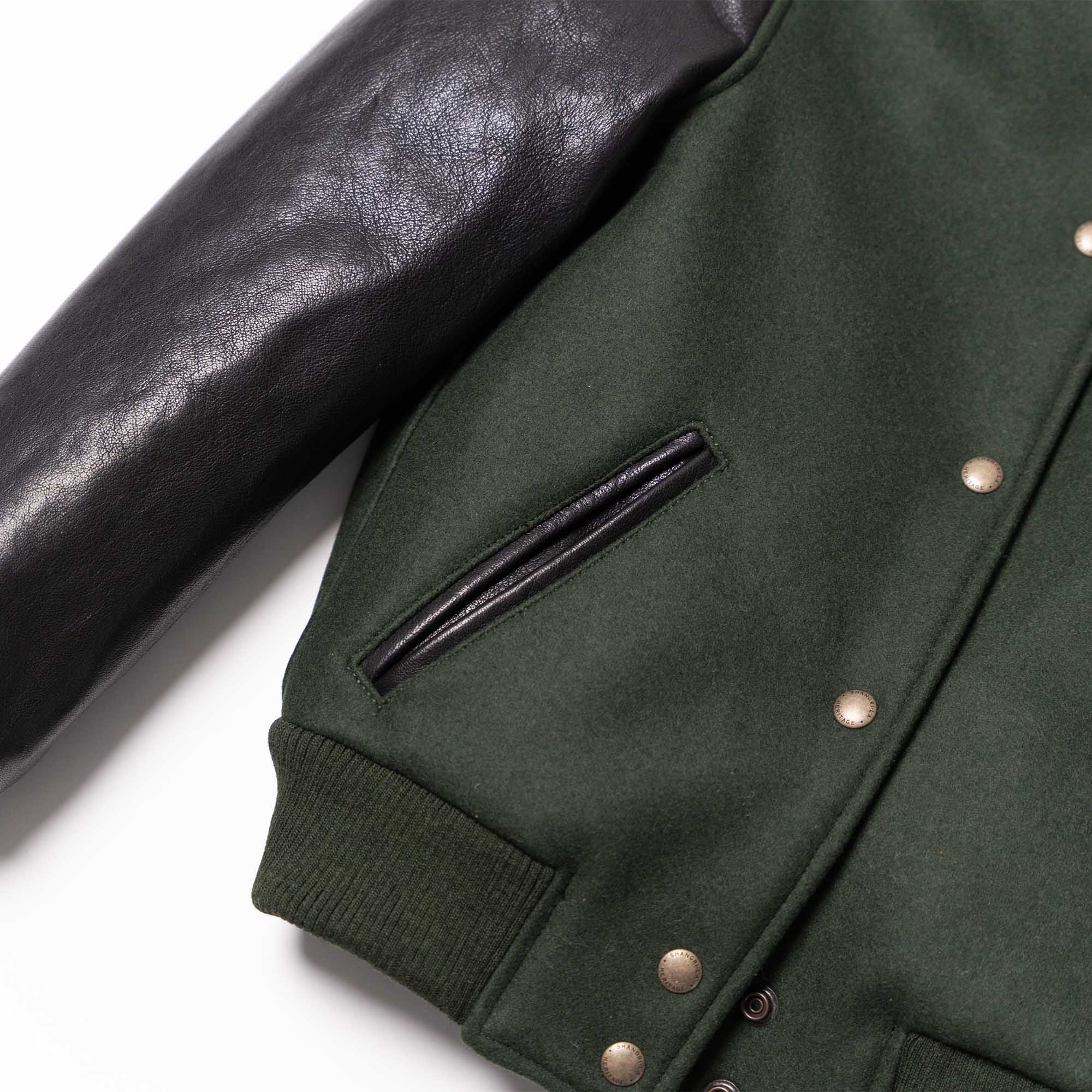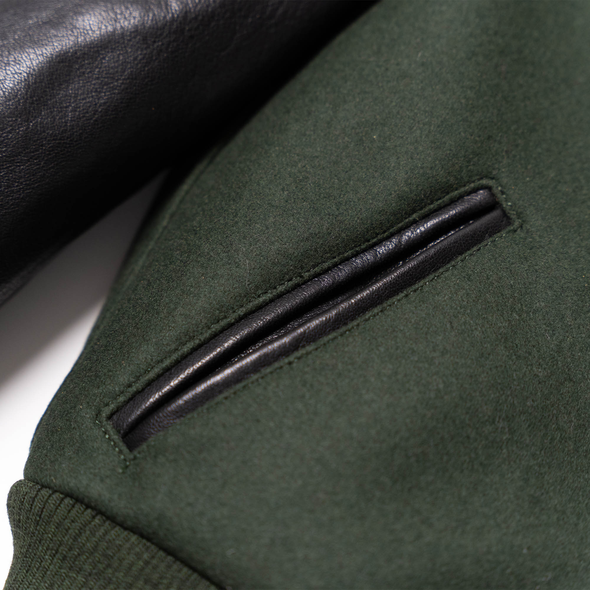 Inspired by early 1930s Varsity jackets from Ivy League schools and Car Clubs and revisited with a unique Italian touch, the “Varsity” Wool Jacket represents an authentic garment made of Italian 24 oz Melton Wool with leather sleeves in vegetable tanned Lambskin from Tuscany (Italy).