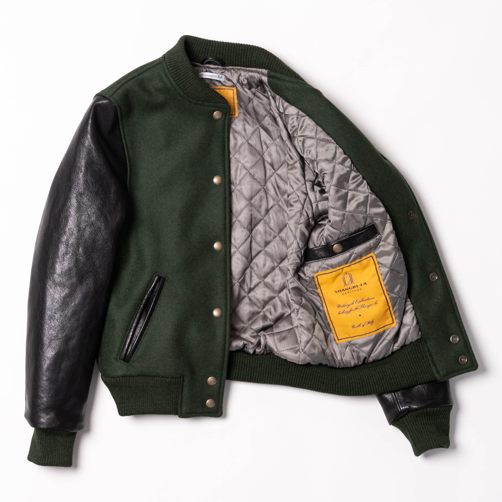 Our “Varsity” Wool Jacket is made using a Premium Melton Wool 24 Oz from Tuscany, 90% Wool and 10% Cachemire.